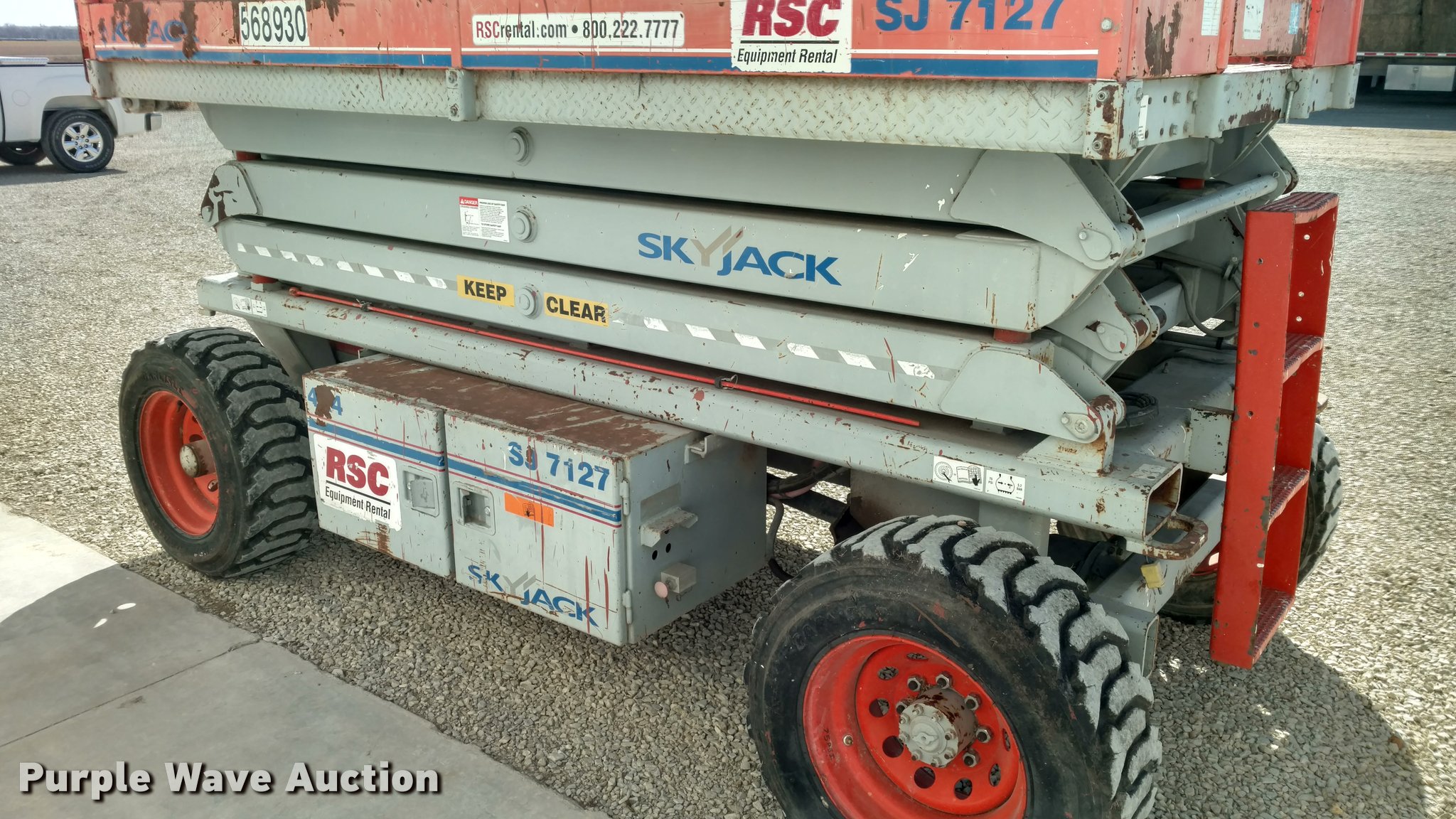 Purple Wave is selling a used Scissor or Vertical Lift in Kansas. This item is a 2005 Sky Jack SJ7127 scissor lift with the following: 3,041 hours on meter, Nissan four cylinder dual fuel engine, Gas or propane capable, 1,500 lbs maximum lift capacity, 27' platform height, 10-16 NHS tires, Serial 341326