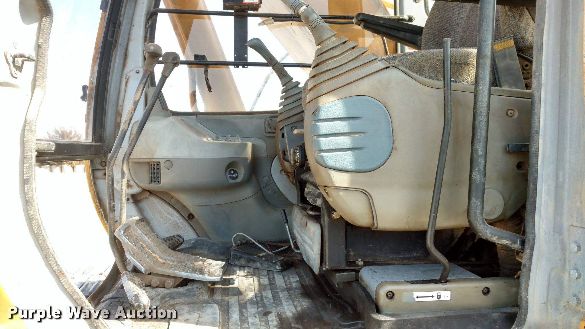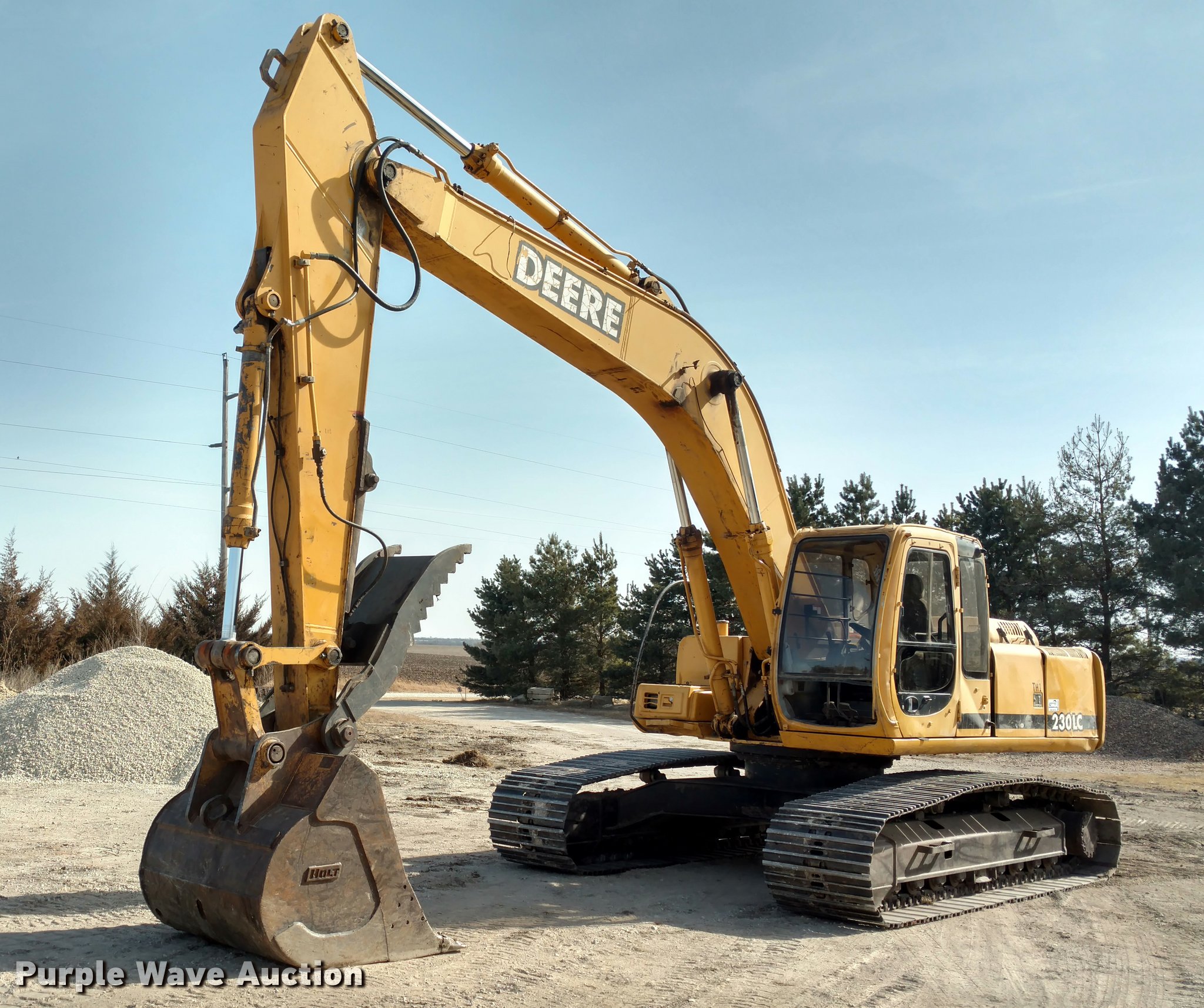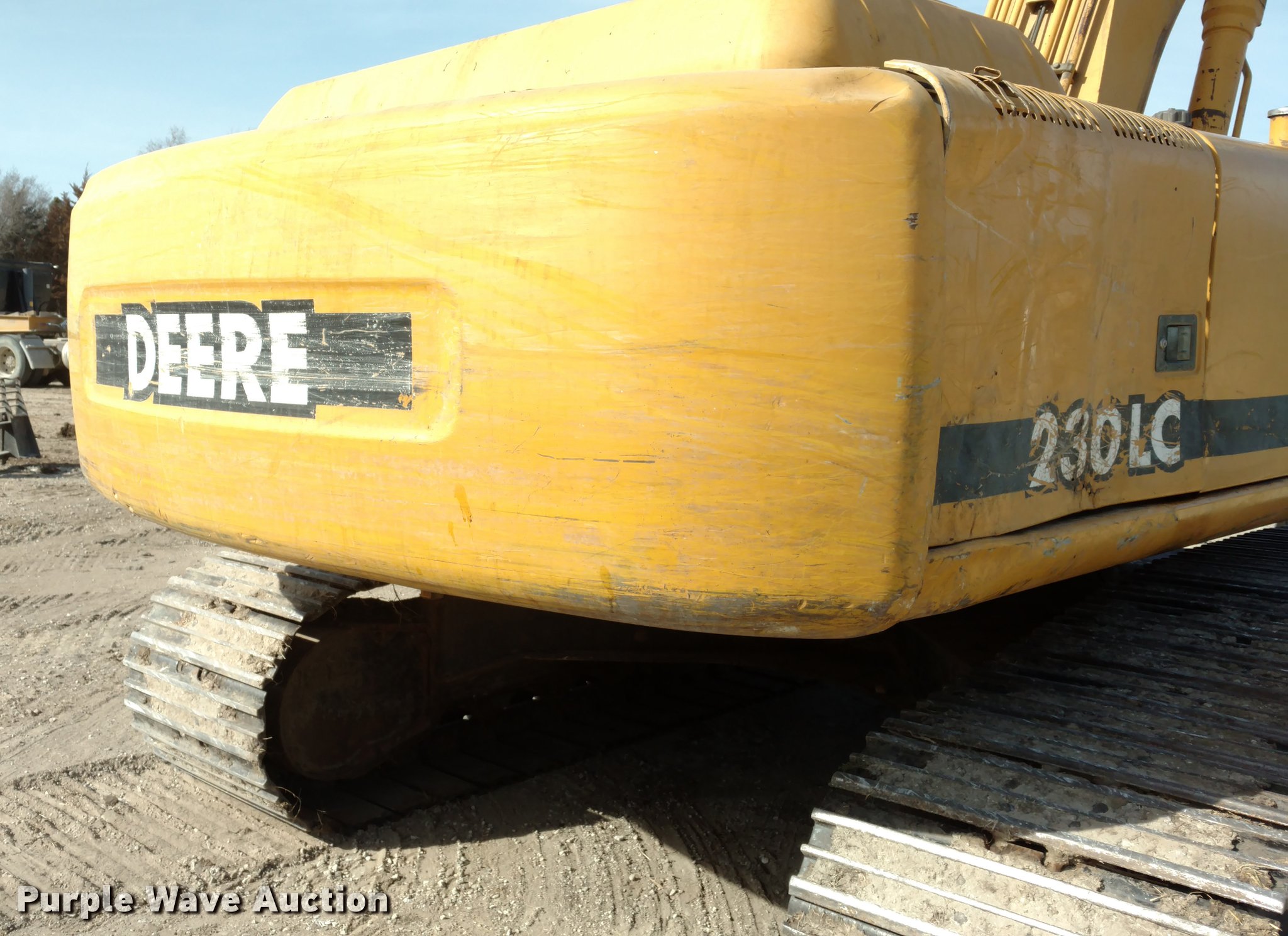 Purple Wave is selling a used Hydraulic Excavator in Kansas. This item is a 1999 John Deere 230LC excavator with the following: 7,959 hours on meter, Six cylinder turbo diesel engine, Hydrostatic transmission, EROPS, AC and heat, AM/FM, Suspension seat, Front and rear work lights, Standard boom, Hydraulic thumb, Foot controls, Two way auxiliary hydraulics, 31.5"W steel triple grouser track pads, Left joystick has a hydraulic leak, Serial FF0230X600384