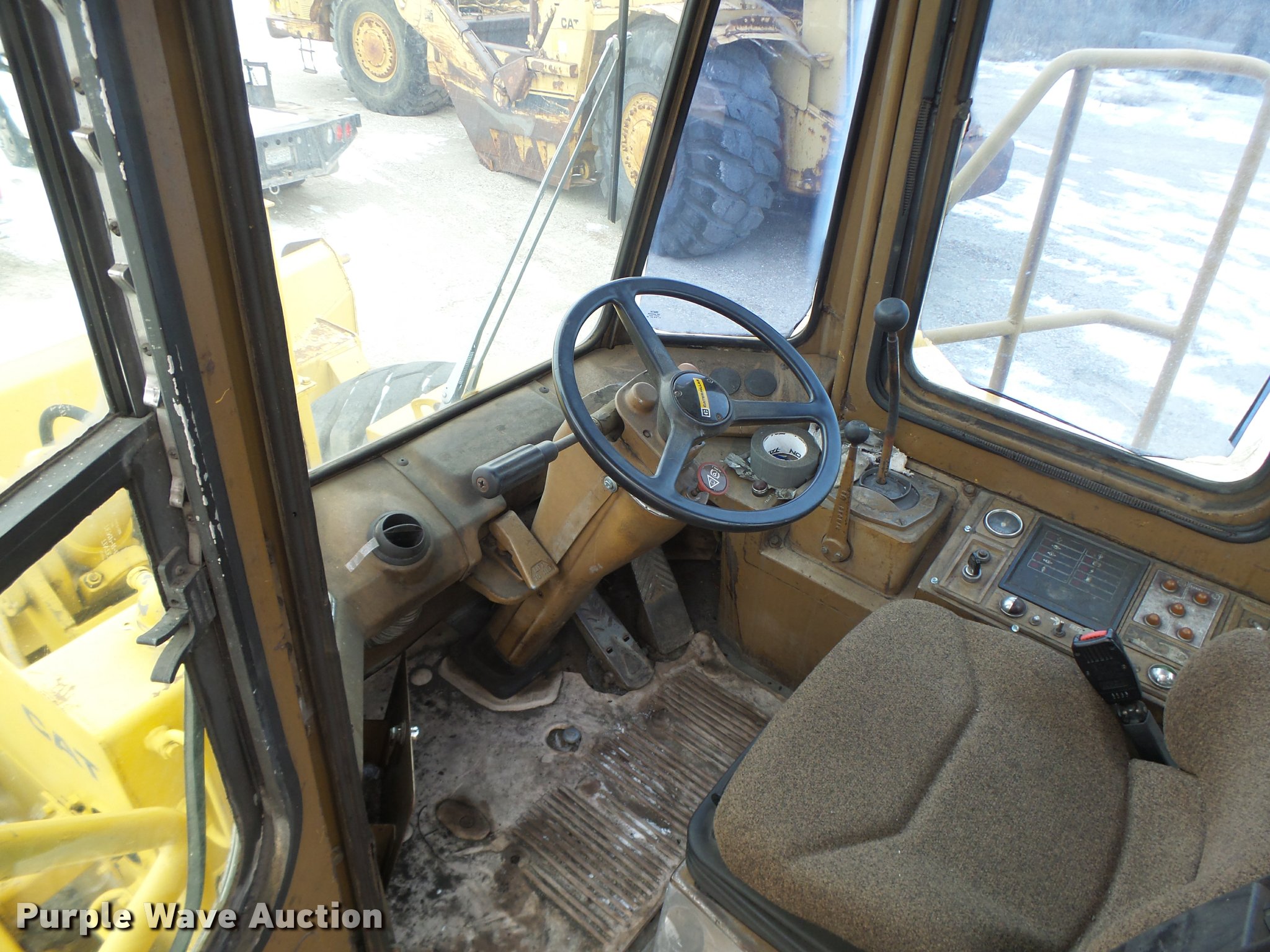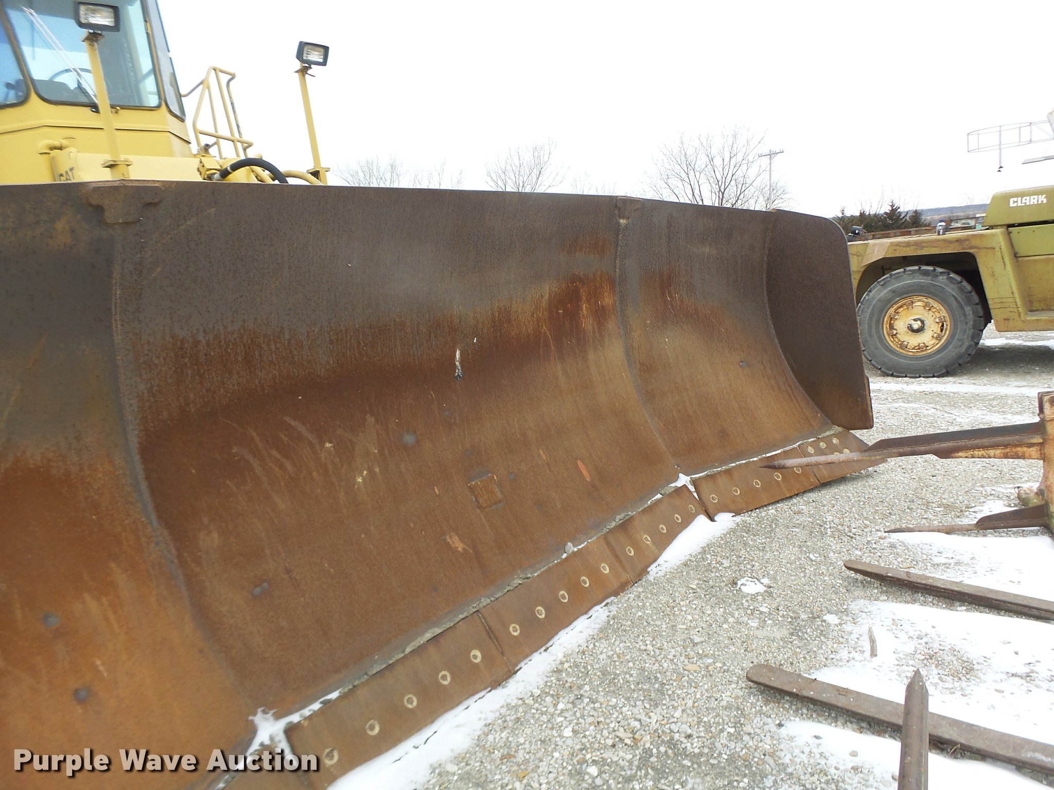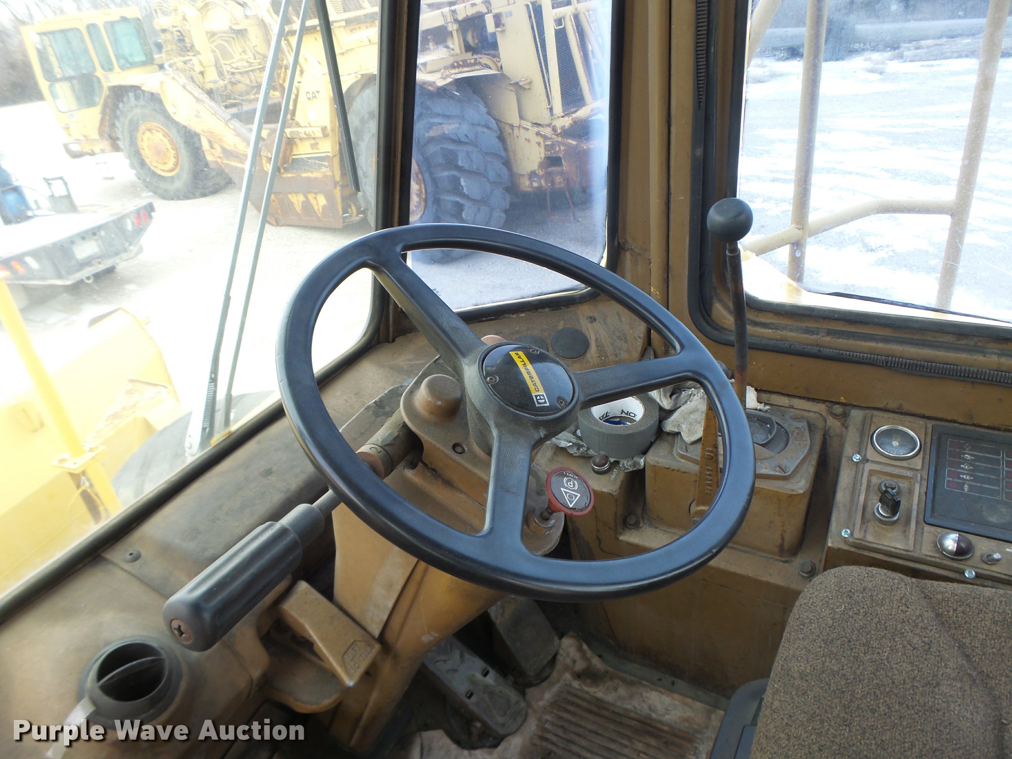 Purple Wave is selling a used Wheel Dozer in Missouri. This item is a 1980 Caterpillar 824C wheel dozer with the following: 16,286 hours on meter, Caterpillar 3406 six cylinder diesel engine, Powershift transmission, 4F-4R gears, Enclosed cab, Suspension seat, Joystick bucket controls, Wipers, Front and rear work lights, 15'W blade, Bolt-on cutting edge, 29.5-25 tires, Serial 85X00518