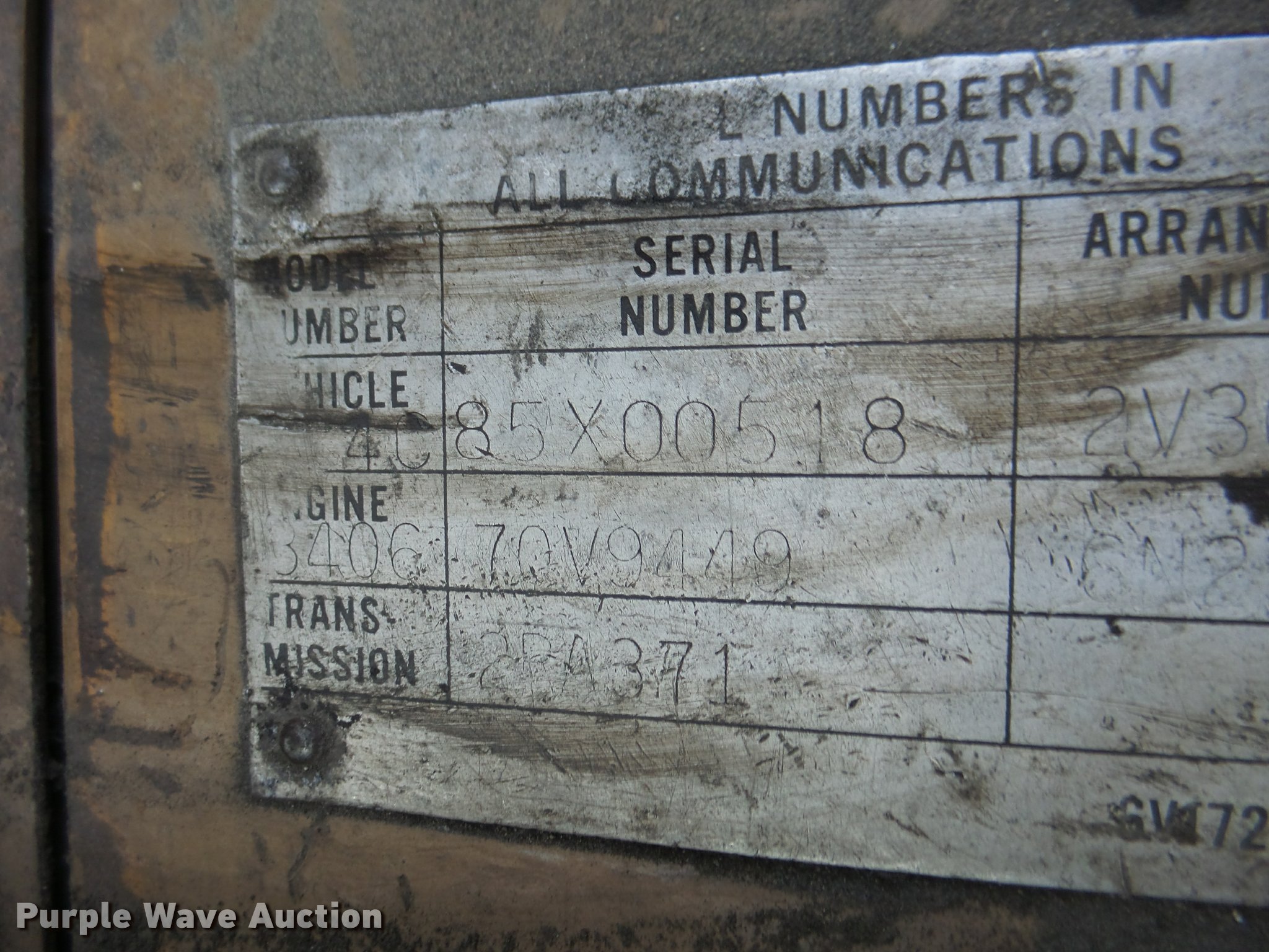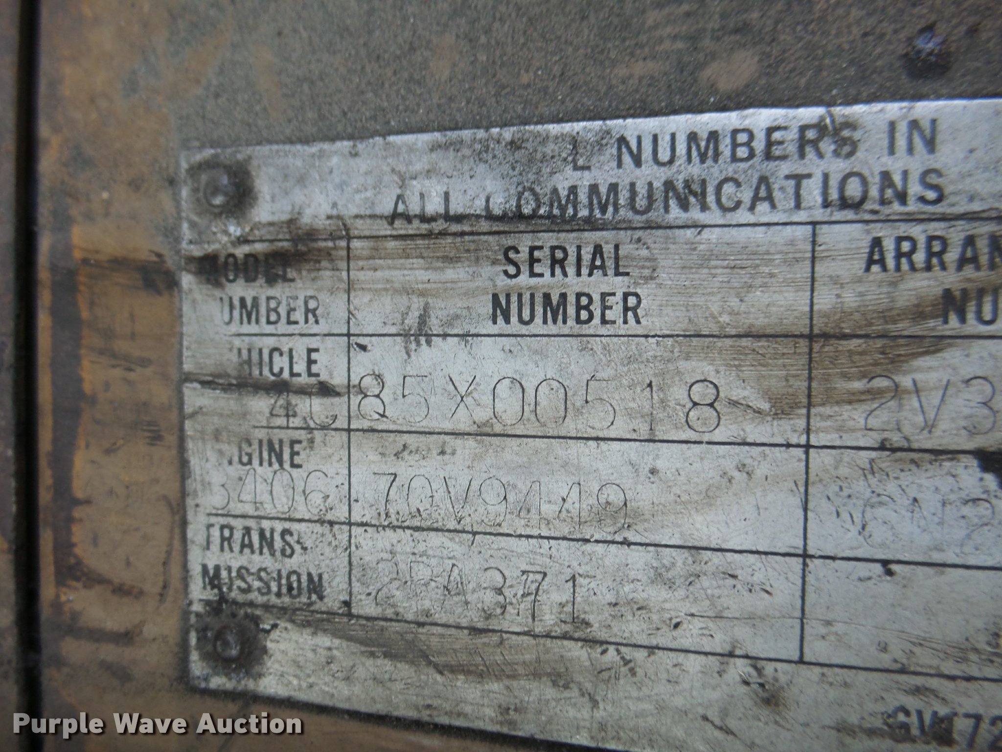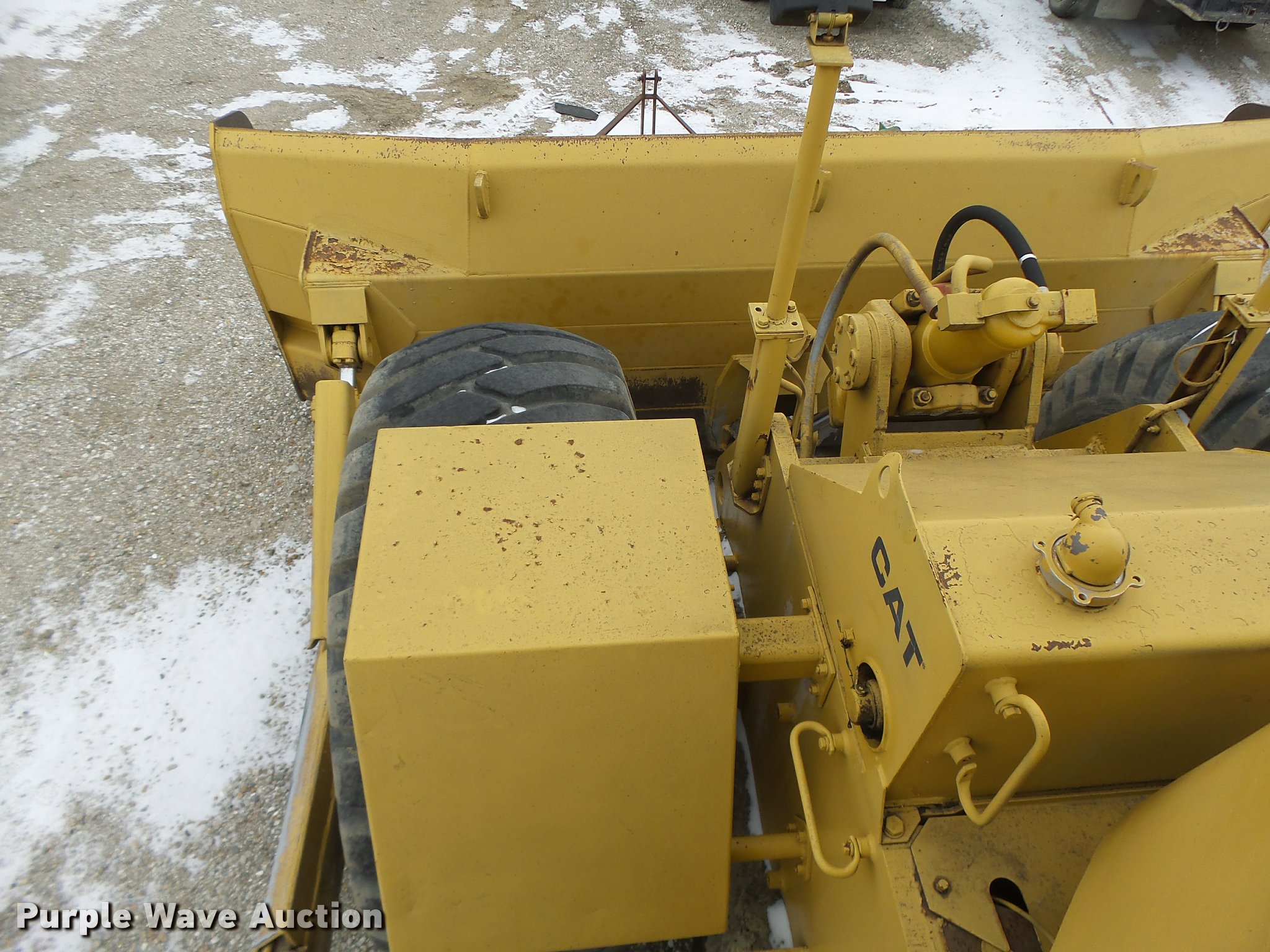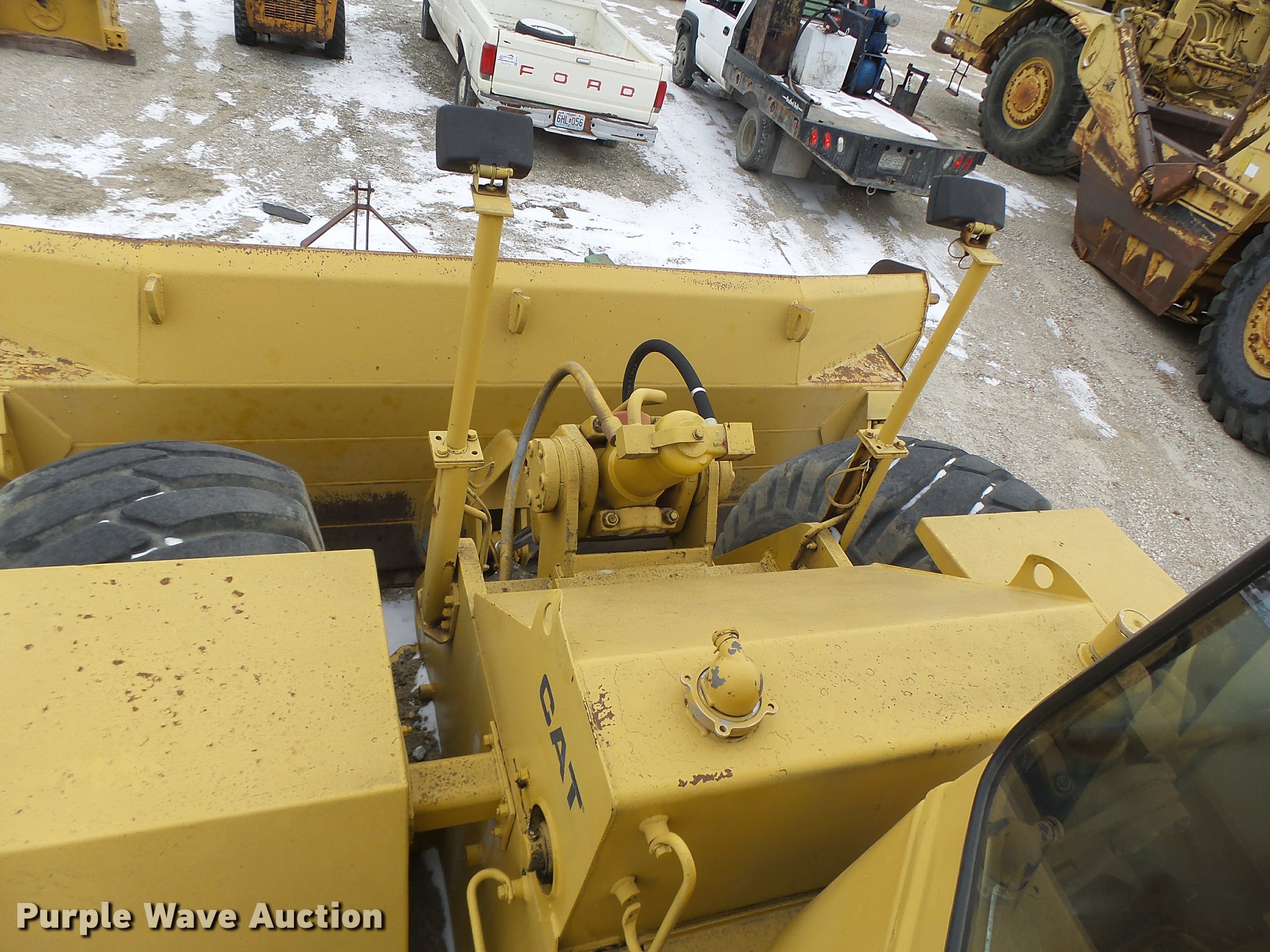 Purple Wave is selling a used Wheel Dozer in Missouri. This item is a 1980 Caterpillar 824C wheel dozer with the following: 16,286 hours on meter, Caterpillar 3406 six cylinder diesel engine, Powershift transmission, 4F-4R gears, Enclosed cab, Suspension seat, Joystick bucket controls, Wipers, Front and rear work lights, 15'W blade, Bolt-on cutting edge, 29.5-25 tires, Serial 85X00518