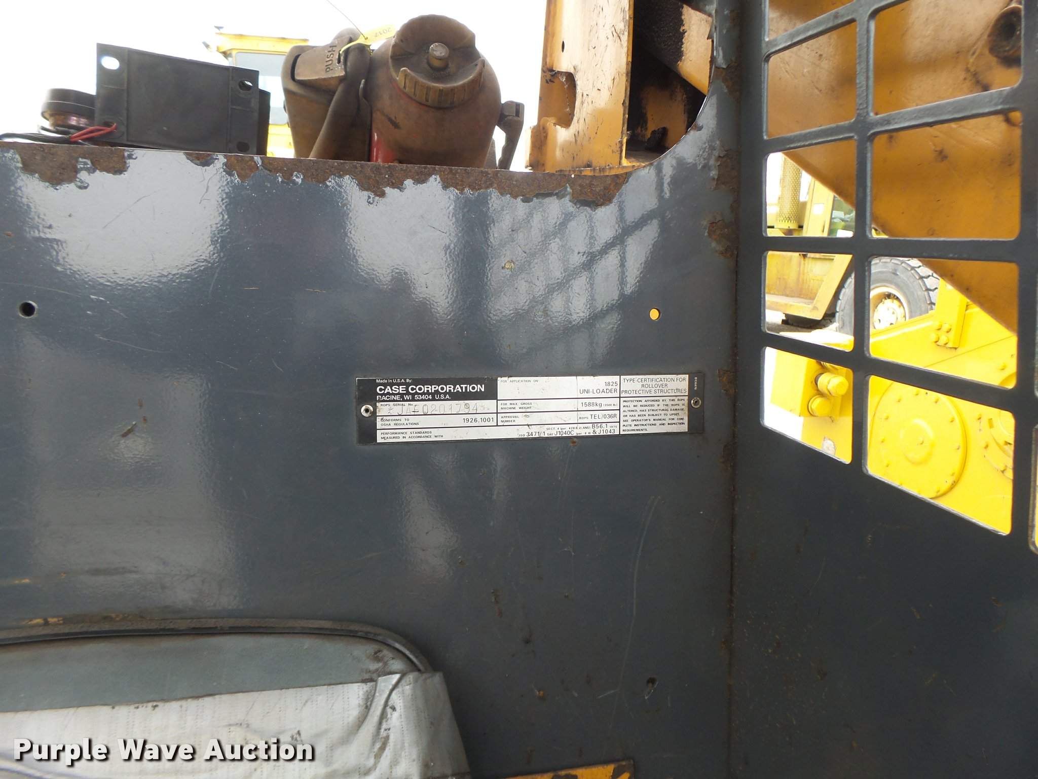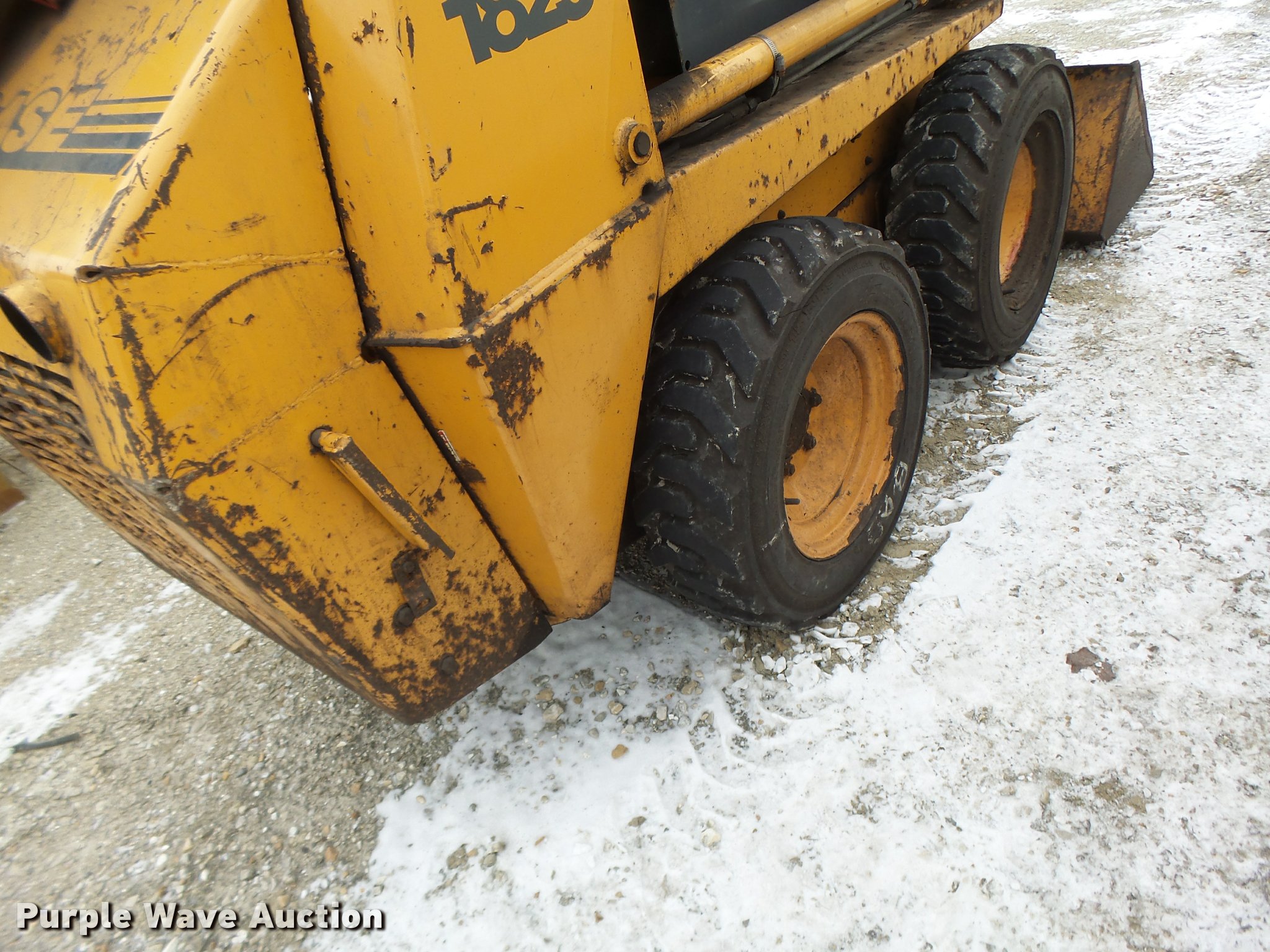 Purple Wave is selling a used Skid Steer Loader in Missouri. This item is a Case 1825 skid steer with the following: 910 hours on meter, Four cylinder diesel engine, Hydrostatic transmission, Hand and foot controls, Suspension seat, Front and rear work lights, 48"W bucket, Weld-on cutting edge, 27x8.50-15 tires, Serial JAF0201794