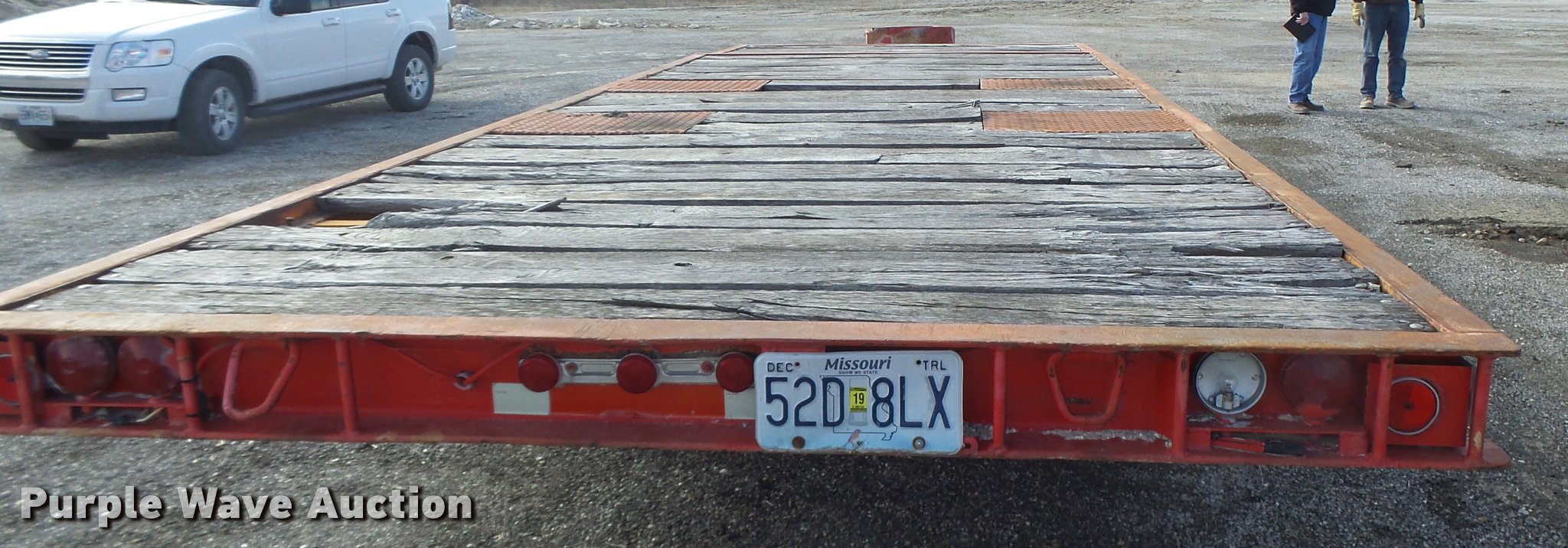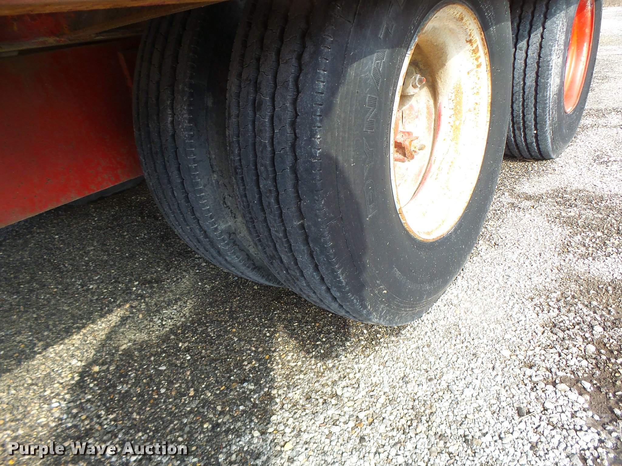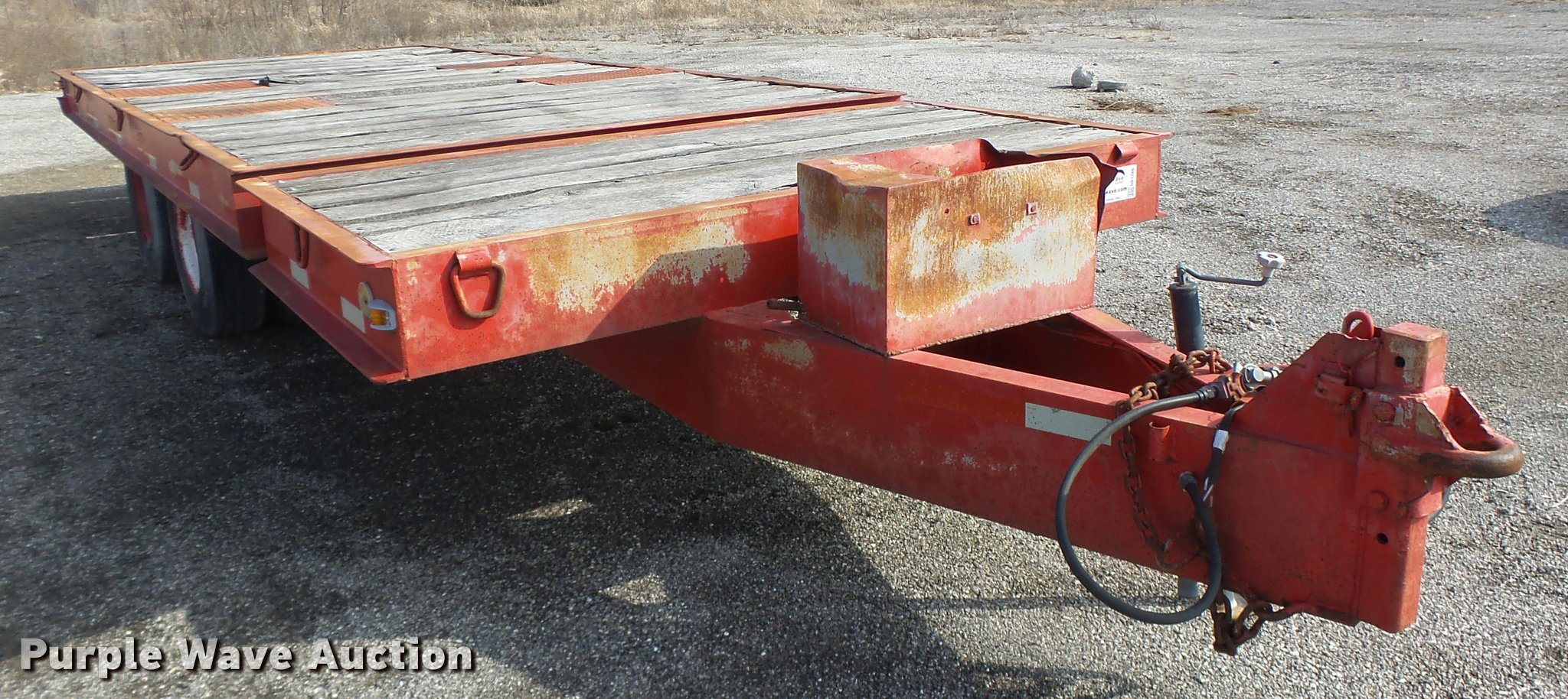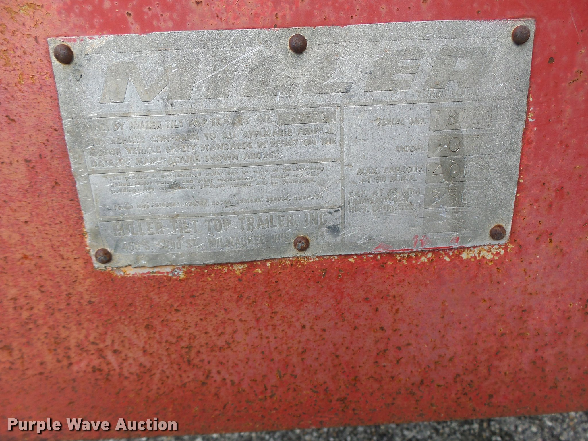 Purple Wave is selling a used Equip. Trailer in Missouri. This item is a 1975 Miller tilt deck equipment trailer with the following: 22'L x 8'W overall, 18'L wood tilt deck, 4'L fixed deck, D-ring tie downs, Pintle hitch, Single leg landing gear, Spring suspension, Air brakes, Steel wheels, 10R17.5 tires, GVWR 40,000 lbs