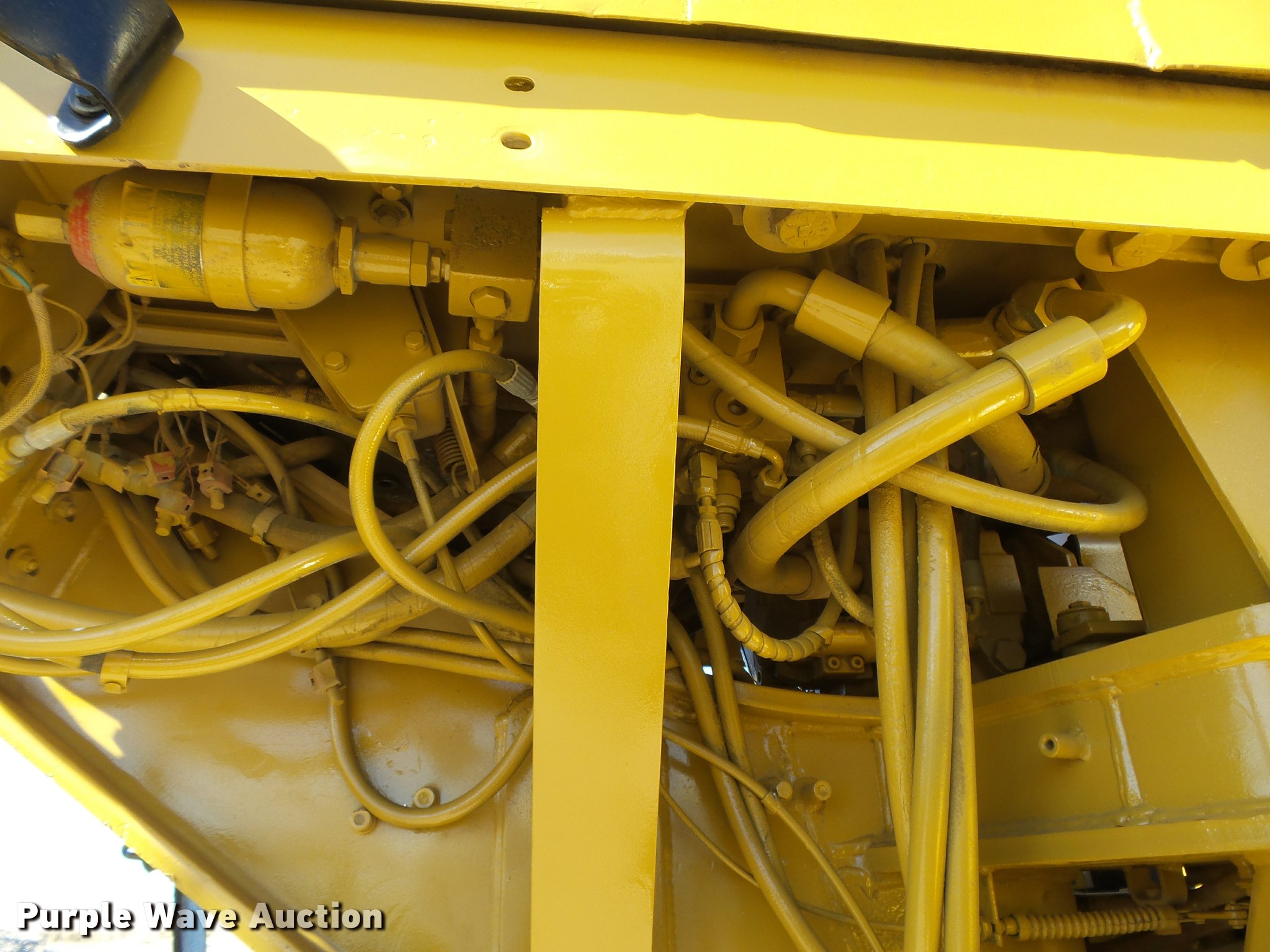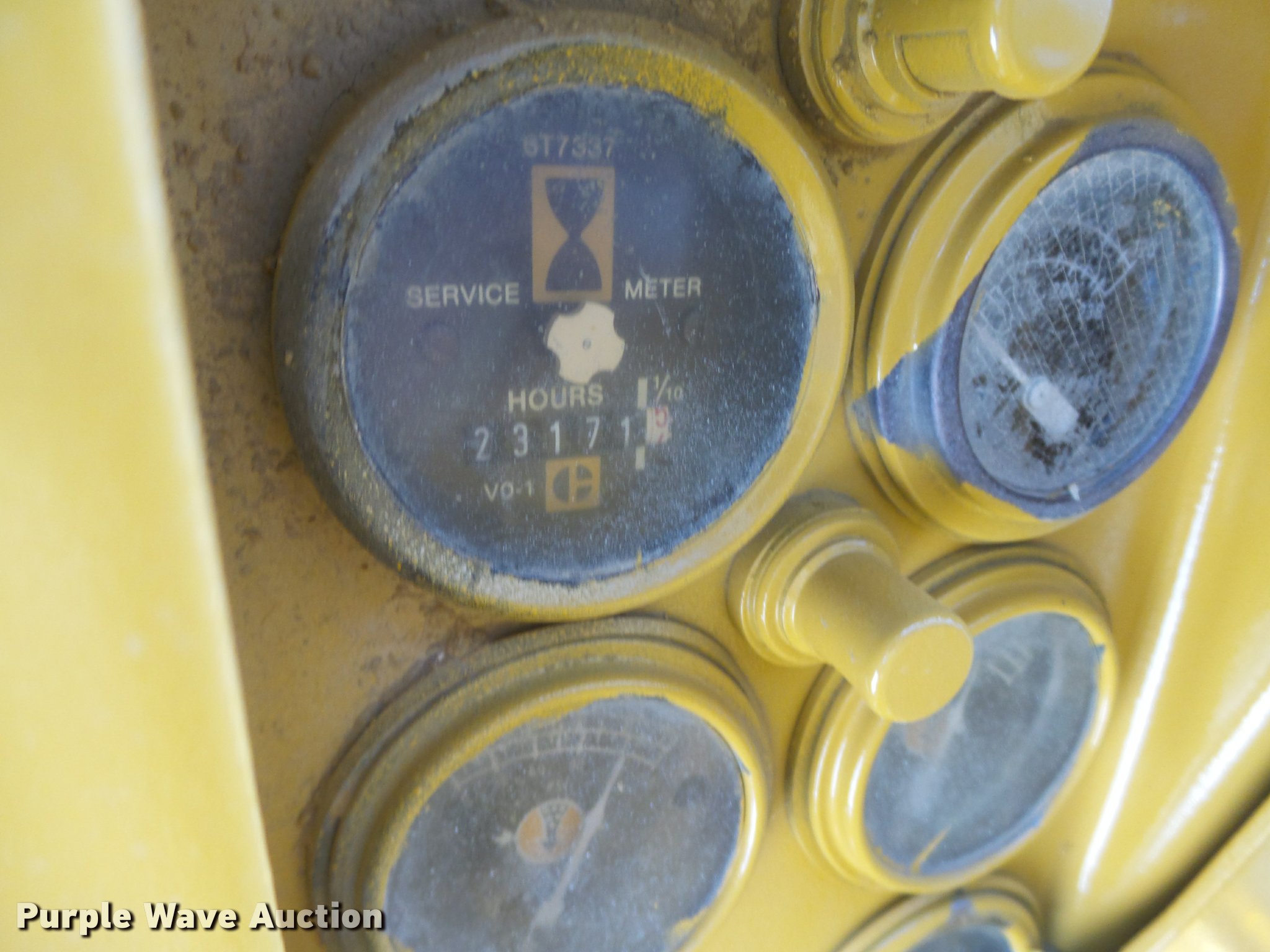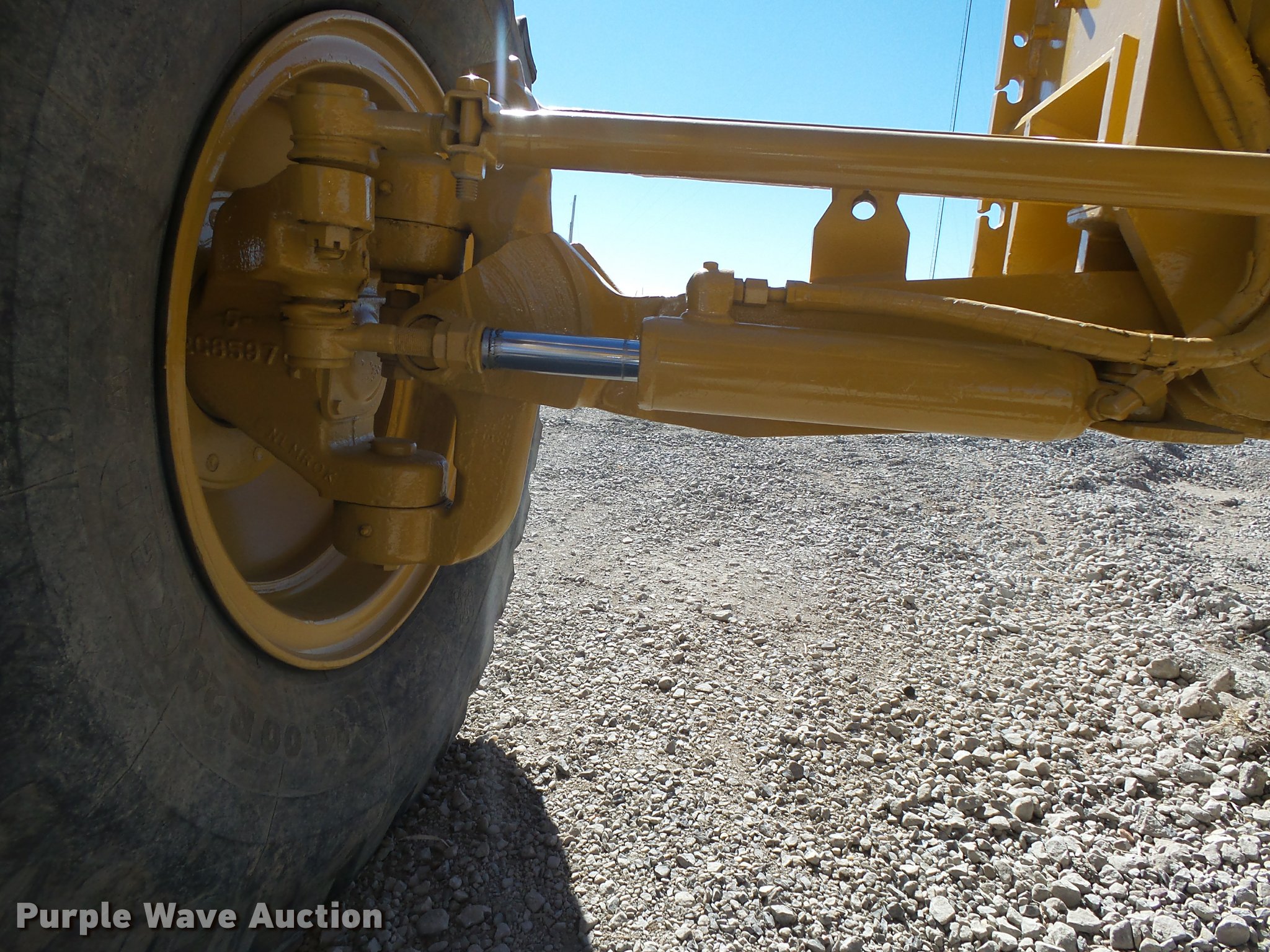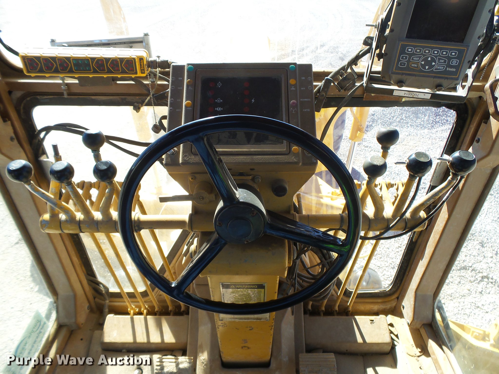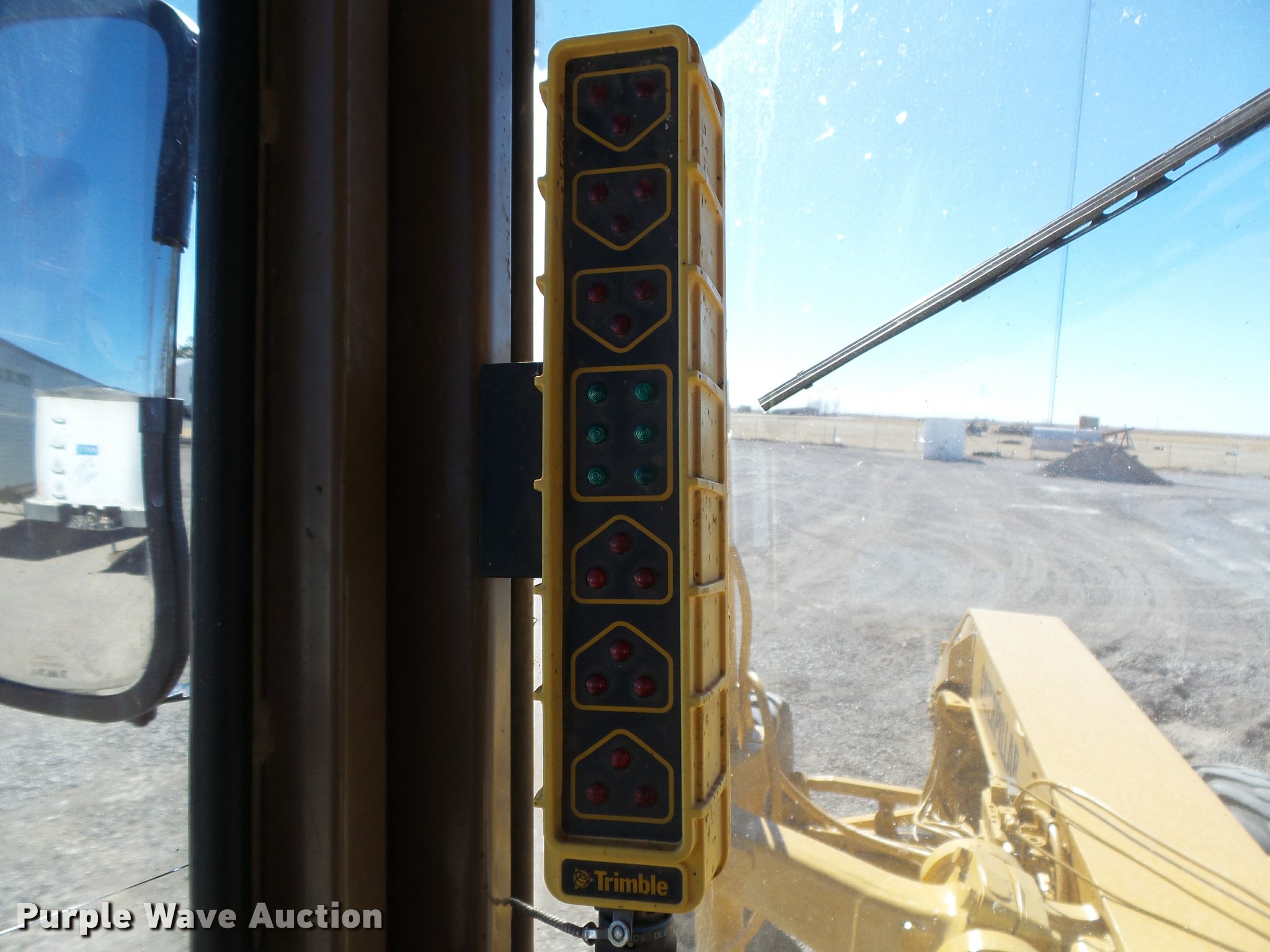 Purple Wave is selling a used Motor Grader in Kansas. This item is a 1987 Caterpillar 140G motor grader with the following: 23,171 hours on meter, Caterpillar 3306 six cylinder turbo diesel engine, Serial 08Z41576, Powershift transmission, 6F-6R gears, EROPS, AC and heat, AM/FM, Suspension seat, Nine control valves, Trimble Sight Vision GPS grade control, Indicate only system, Front and rear work lights, 16'W moldboard, Left blade extension, Tip control, Side shift, Circle slip clutch, 14.00R24 tires, Service records available upon request, Door window cracked, Serial 72V10905, Unit# MG1