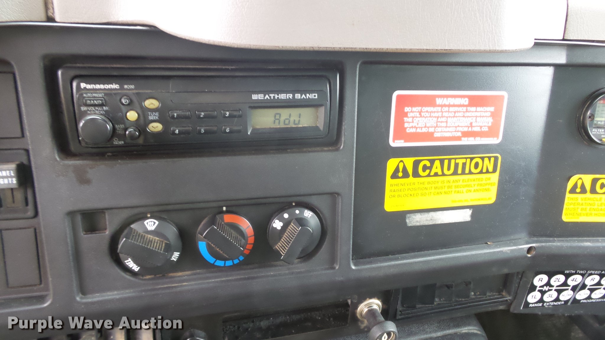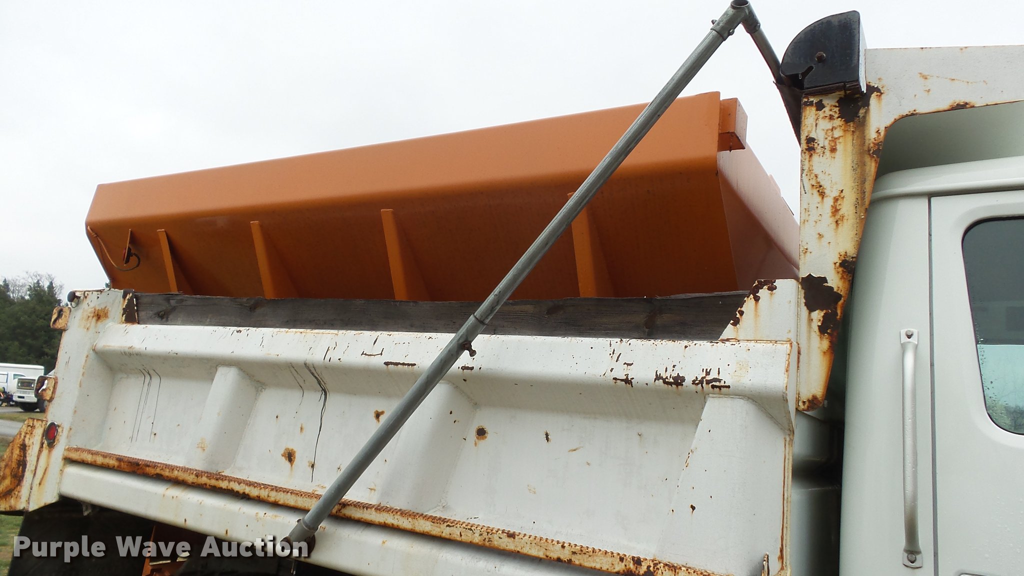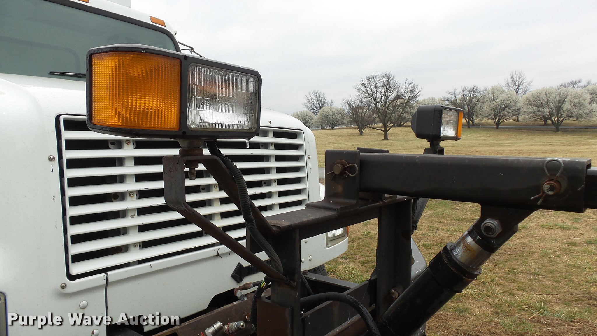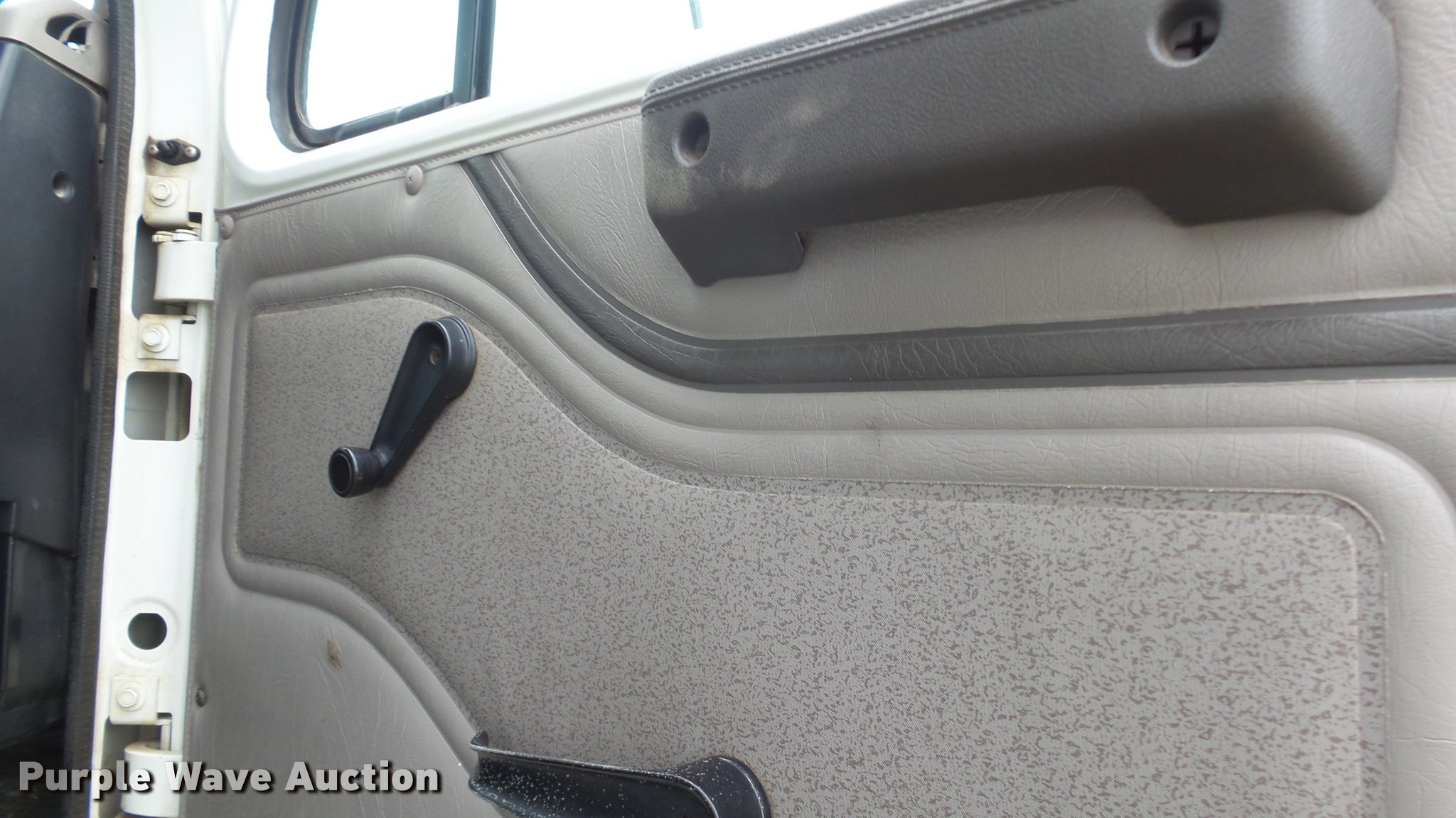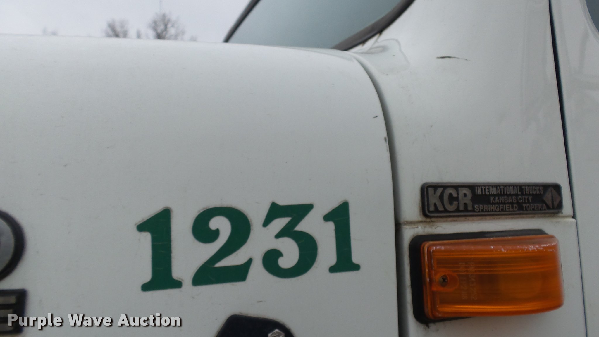 Purple Wave is selling a used Construction Dump Truck in Kansas. This item is a 2001 International 4700 dump truck with the following: 45,205 miles on odometer, Actual mileage unknown, 3,673 hours on meter, International DT466 7.6L L6 turbo diesel engine, Five speed manual transmission, Single axle, AC and heat, Cruise, AM/FM/weatherband, Spring suspension seat, Block heater, Front mounted PTO, Heil SL steel dump bed, 10'L x 8'W, 28" side height, Five cu. yd. capacity, Manual operated end gate, Roll tarp, Toolbox, Unattached tailgate included, American 10'W snow plow, Warren AC240A-10 steel spreader, 6.2 cu. yd. capacity, Force SSC1100 spreader controls, Front and rear work lights, Strobe lights, Single fuel tank, Pintle hitch, Trailer wiring, 12.5' wheelbase, Spring suspension, Hydraulic brakes, 11R22.5 tires, Non-operational brakes, Unit must be towed or hauled, Electronic face replaced, Rust