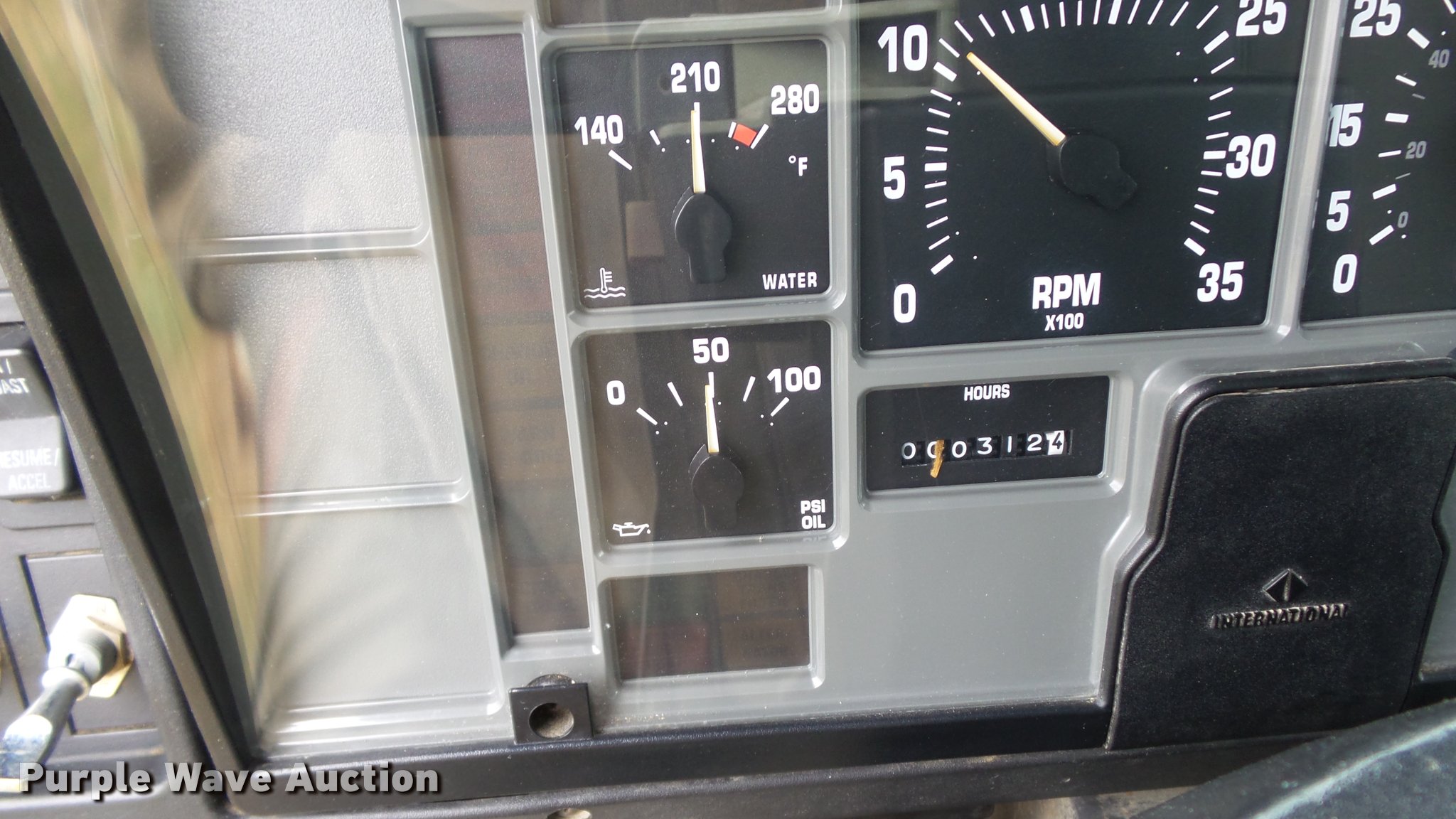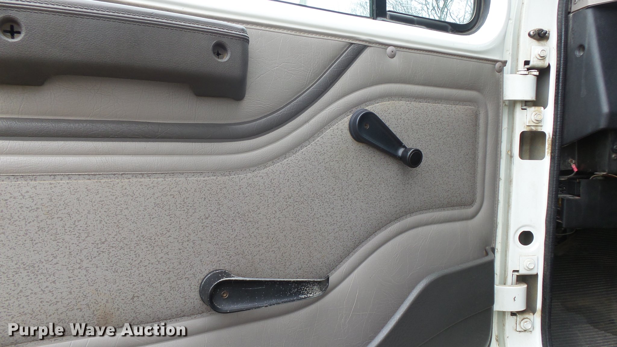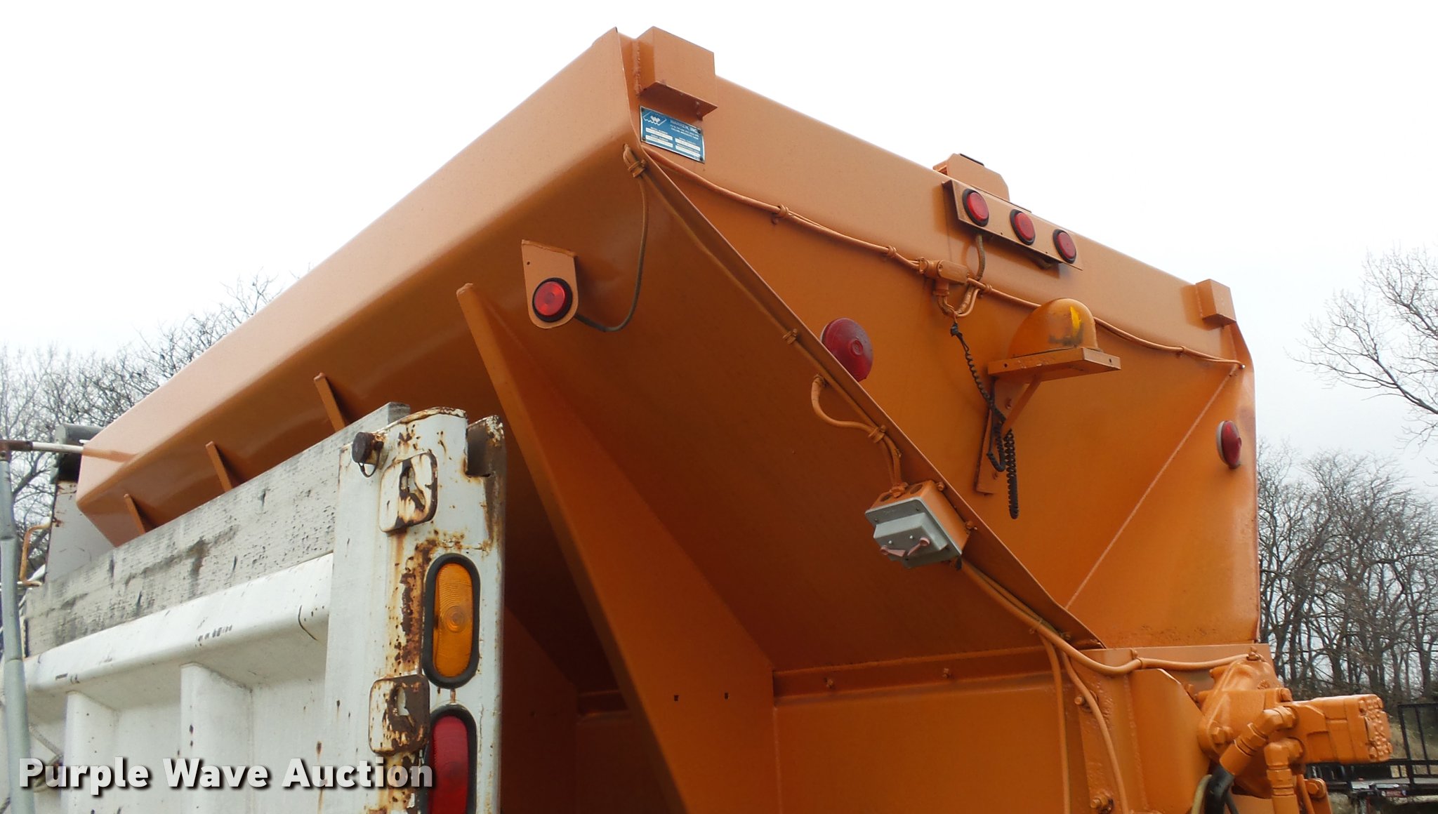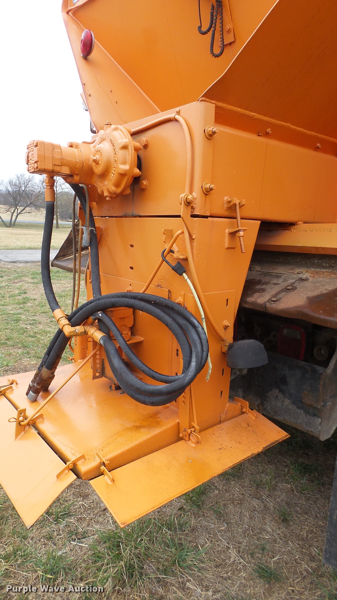 Purple Wave is selling a used Construction Dump Truck in Kansas. This item is a 2001 International 4700 dump truck with the following: 45,205 miles on odometer, Actual mileage unknown, 3,673 hours on meter, International DT466 7.6L L6 turbo diesel engine, Five speed manual transmission, Single axle, AC and heat, Cruise, AM/FM/weatherband, Spring suspension seat, Block heater, Front mounted PTO, Heil SL steel dump bed, 10'L x 8'W, 28" side height, Five cu. yd. capacity, Manual operated end gate, Roll tarp, Toolbox, Unattached tailgate included, American 10'W snow plow, Warren AC240A-10 steel spreader, 6.2 cu. yd. capacity, Force SSC1100 spreader controls, Front and rear work lights, Strobe lights, Single fuel tank, Pintle hitch, Trailer wiring, 12.5' wheelbase, Spring suspension, Hydraulic brakes, 11R22.5 tires, Non-operational brakes, Unit must be towed or hauled, Electronic face replaced, Rust