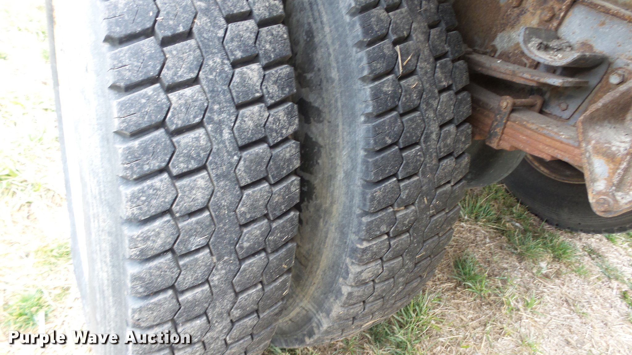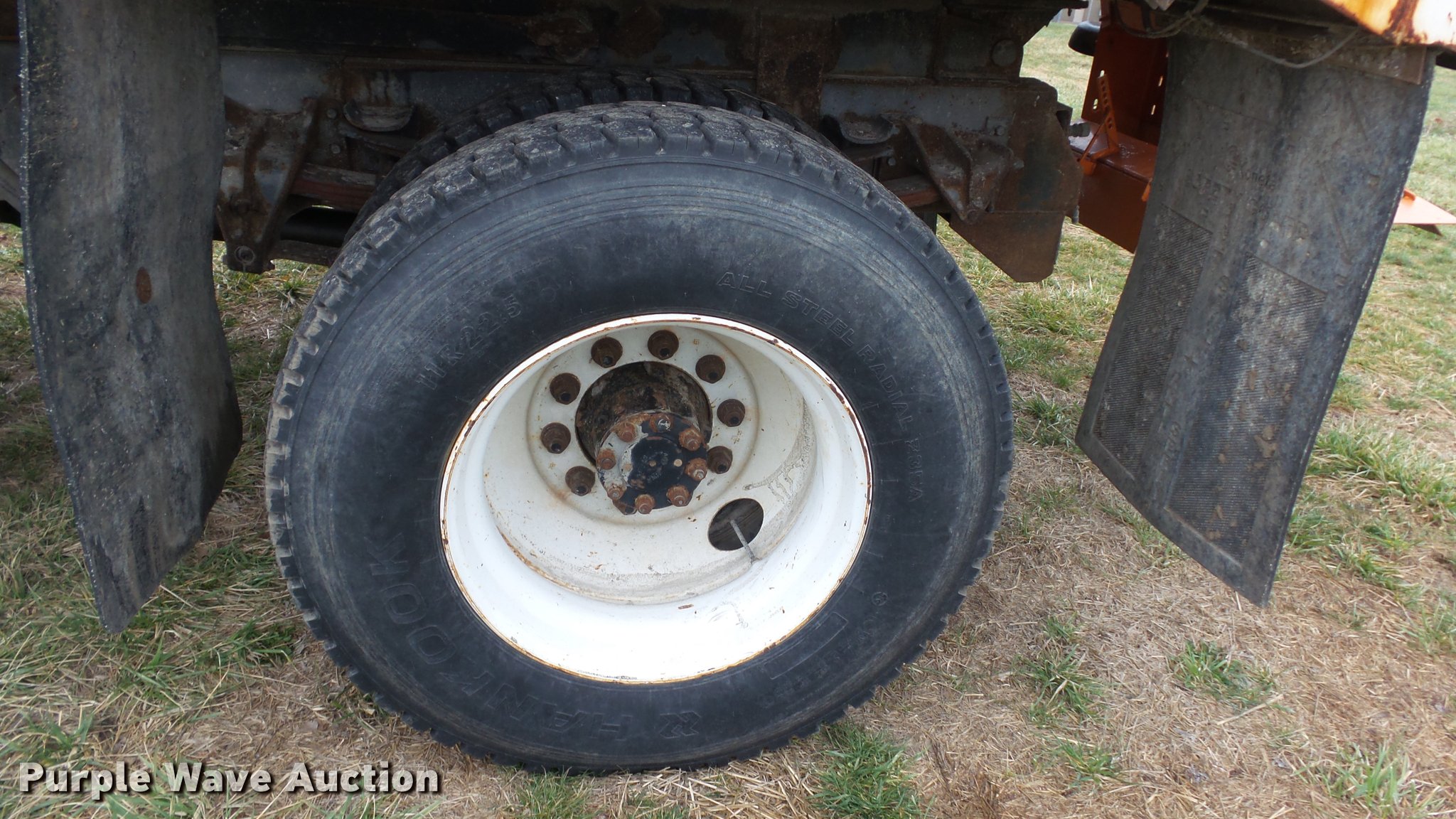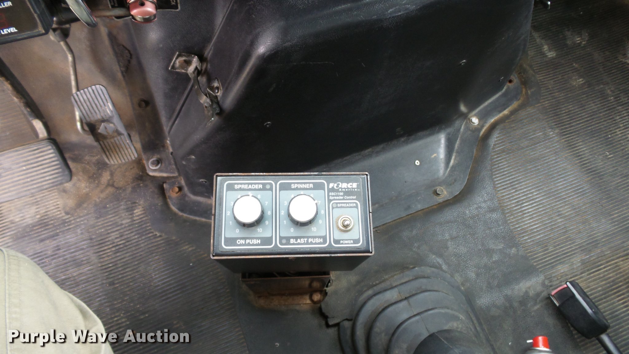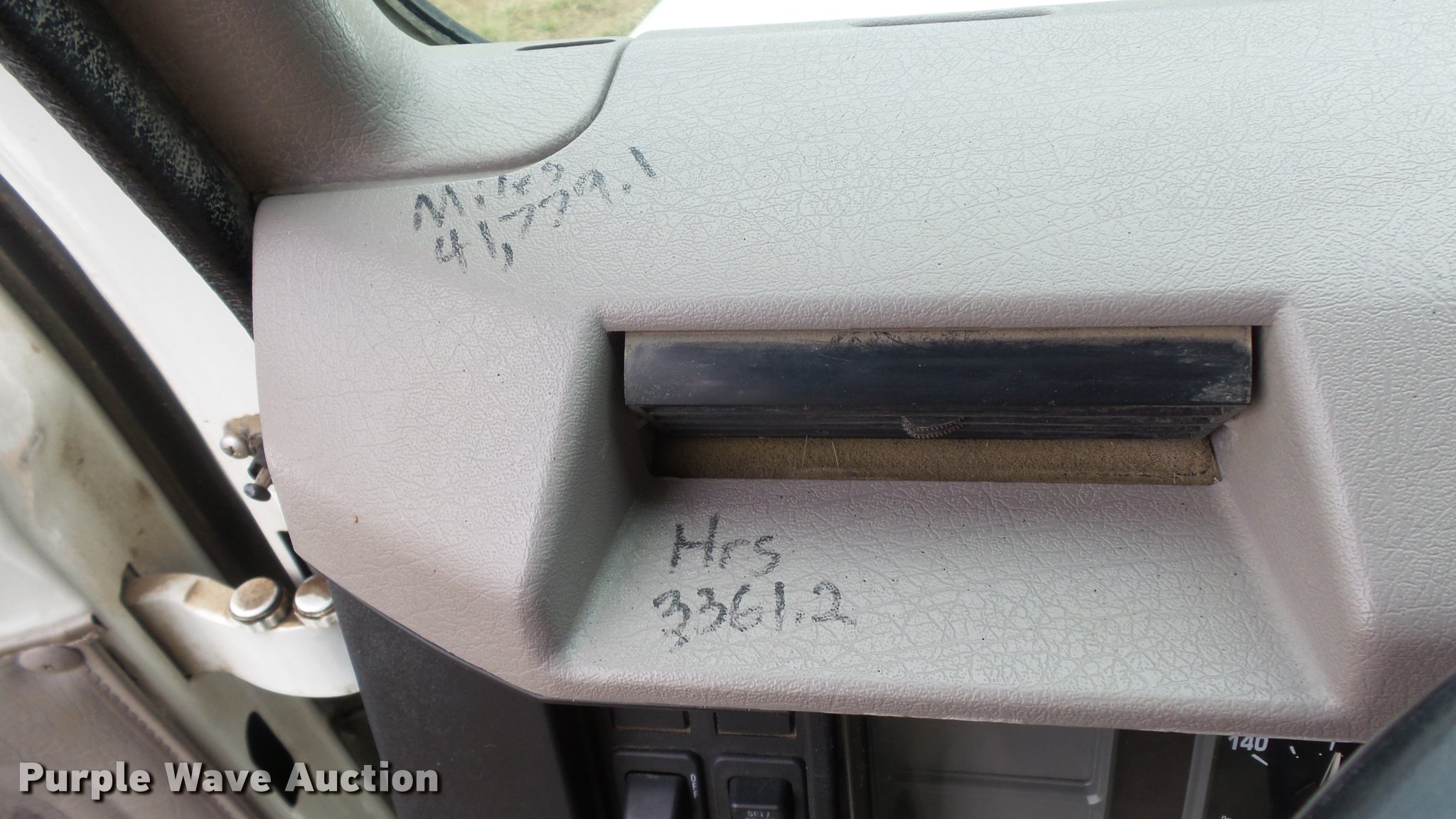 Purple Wave is selling a used Construction Dump Truck in Kansas. This item is a 2001 International 4700 dump truck with the following: 45,205 miles on odometer, Actual mileage unknown, 3,673 hours on meter, International DT466 7.6L L6 turbo diesel engine, Five speed manual transmission, Single axle, AC and heat, Cruise, AM/FM/weatherband, Spring suspension seat, Block heater, Front mounted PTO, Heil SL steel dump bed, 10'L x 8'W, 28" side height, Five cu. yd. capacity, Manual operated end gate, Roll tarp, Toolbox, Unattached tailgate included, American 10'W snow plow, Warren AC240A-10 steel spreader, 6.2 cu. yd. capacity, Force SSC1100 spreader controls, Front and rear work lights, Strobe lights, Single fuel tank, Pintle hitch, Trailer wiring, 12.5' wheelbase, Spring suspension, Hydraulic brakes, 11R22.5 tires, Non-operational brakes, Unit must be towed or hauled, Electronic face replaced, Rust