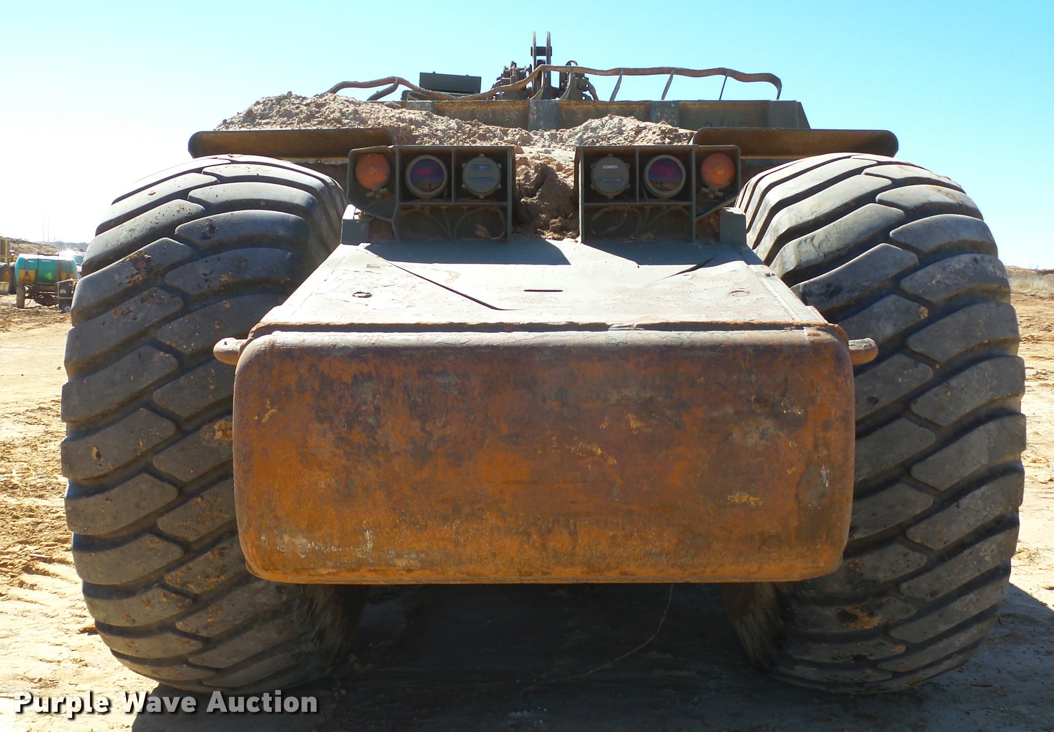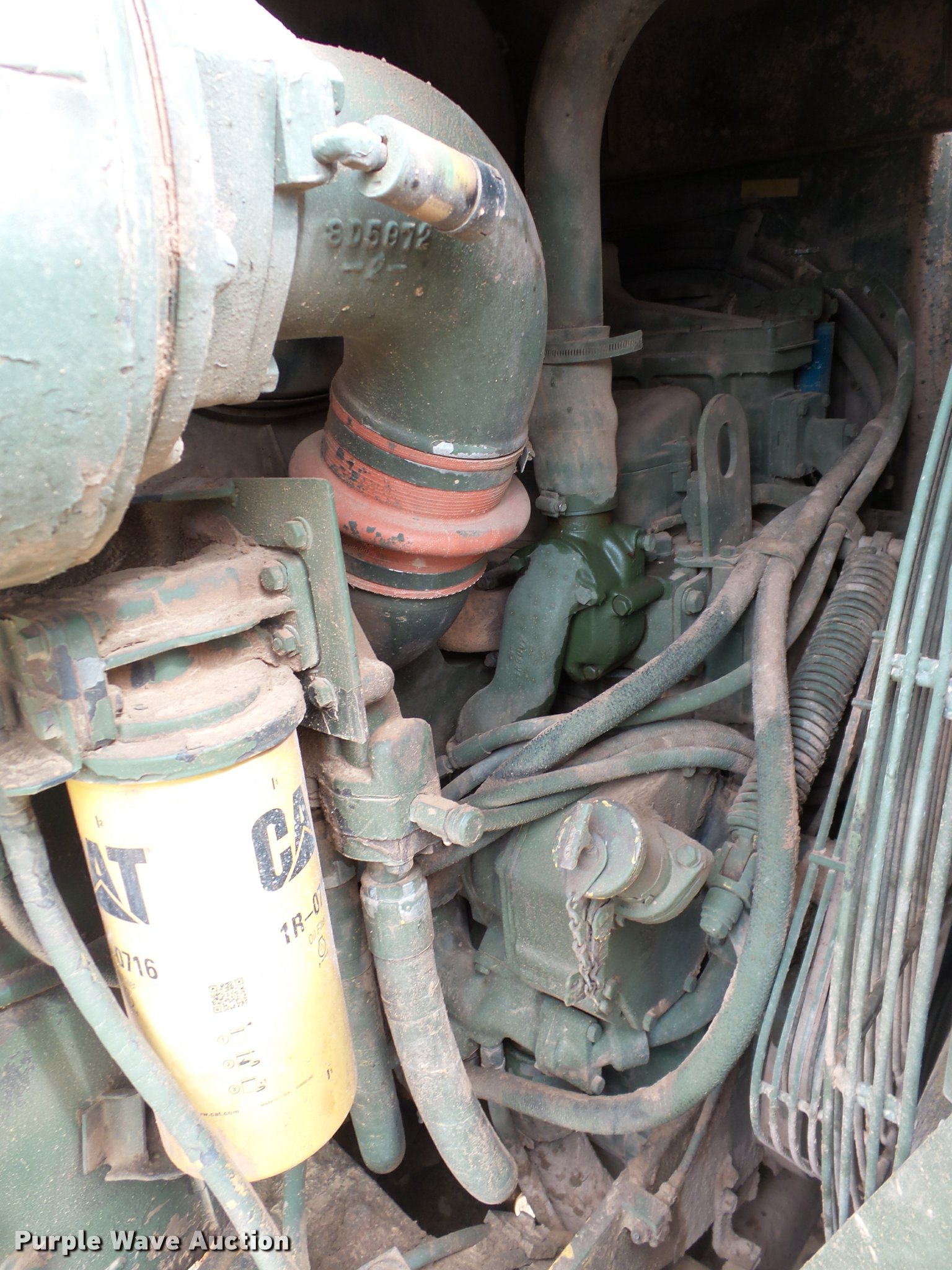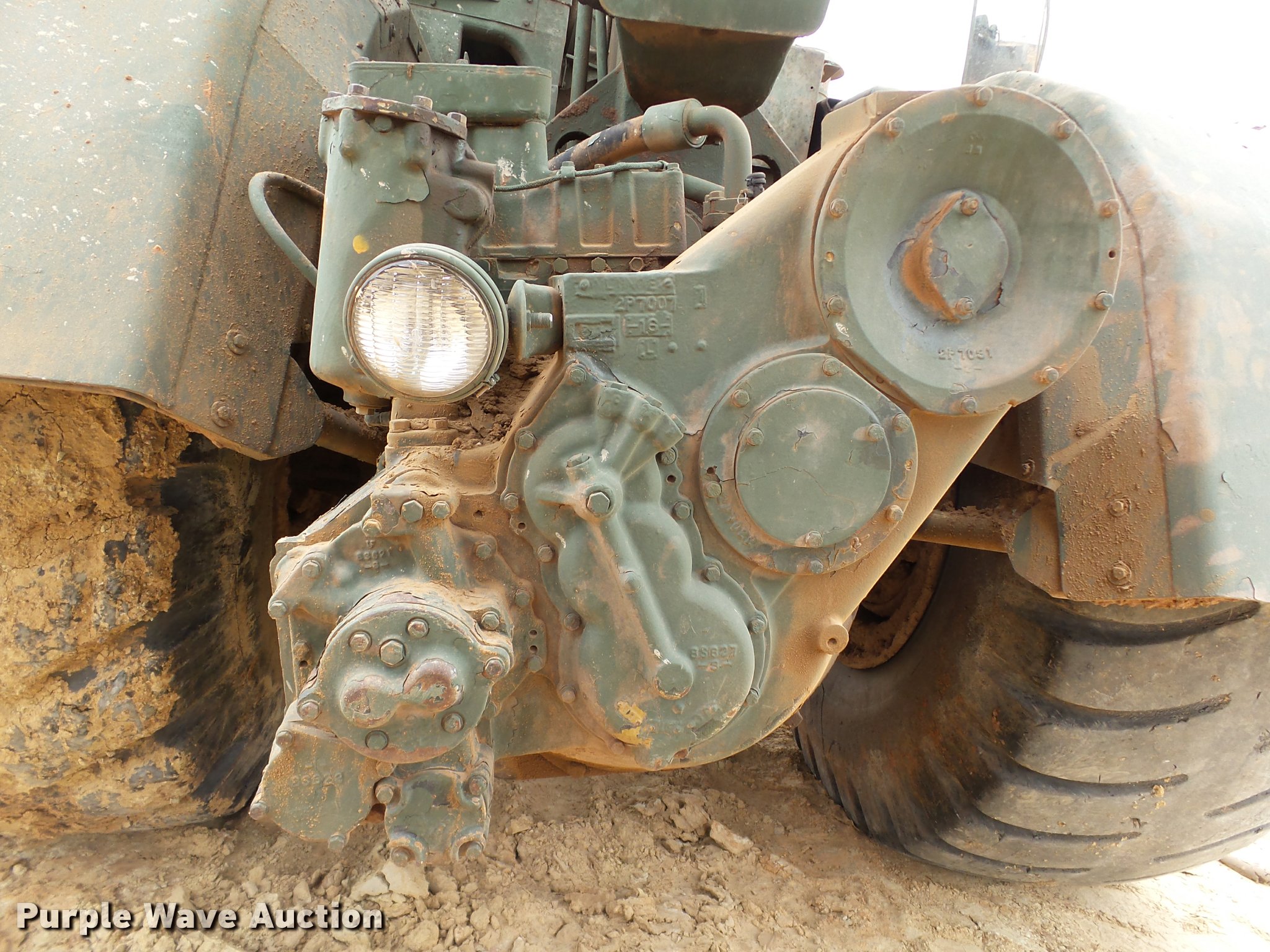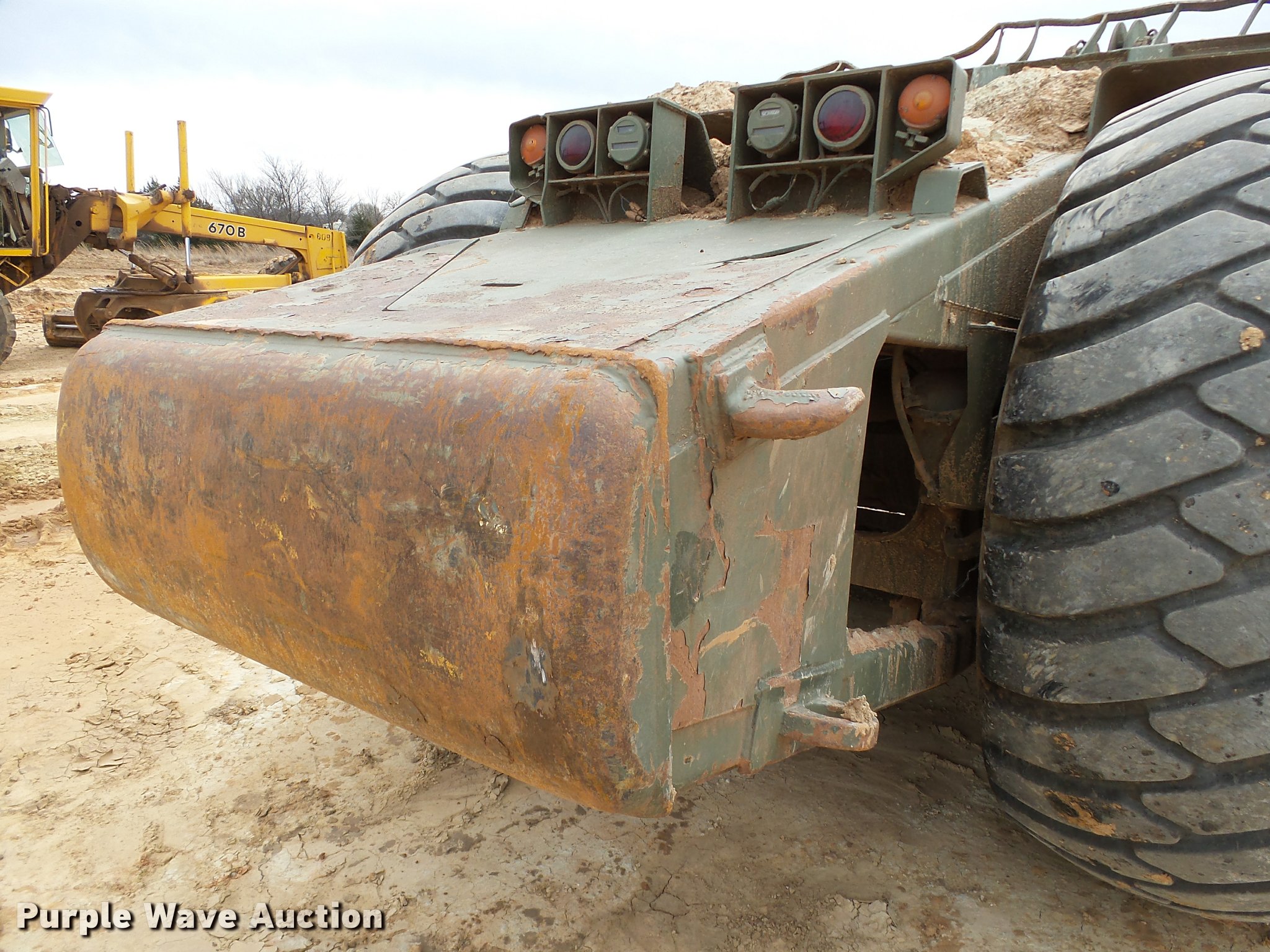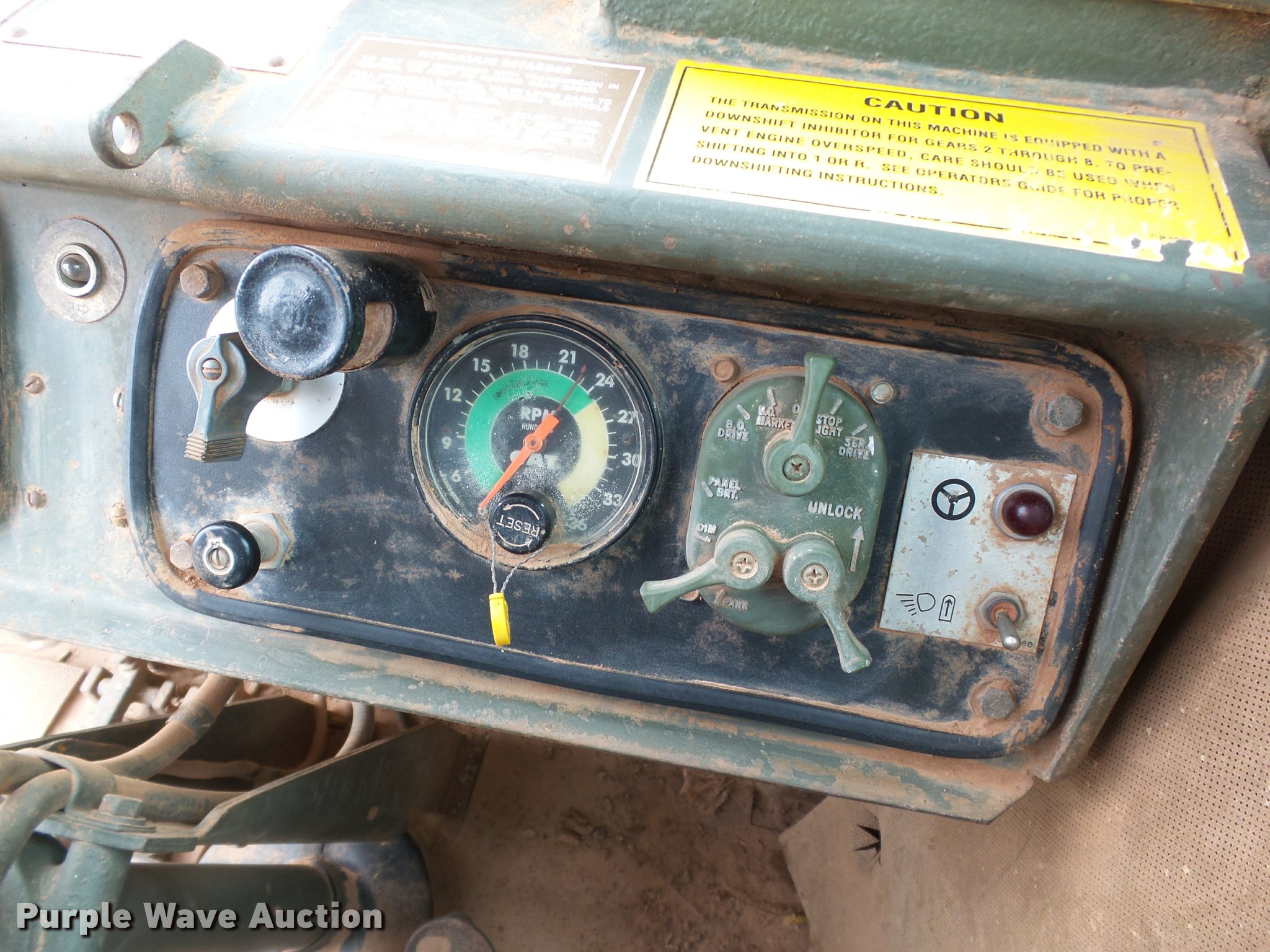 Purple Wave is selling a used Conventional Scraper in Oklahoma. This item is a 1984 Caterpillar 621B conventional scraper with the following: 2,299 hours on meter, Caterpillar 3406 14.6L six cylinder turbo diesel engine, 330 HP, Serial 70V18890, Powershift transmission, 8F-1R gears, Differential lock, Enclosed cab, Unattached door included, Heat, Tilt steering wheel, Wipers, 20 cu. yd. bowl capacity, Hydraulic lift, Three lever controls, Rear push block, Front work lights, Front pin hitch, 29.5-29 tires, Glass cracked, Serial 2DB00395
