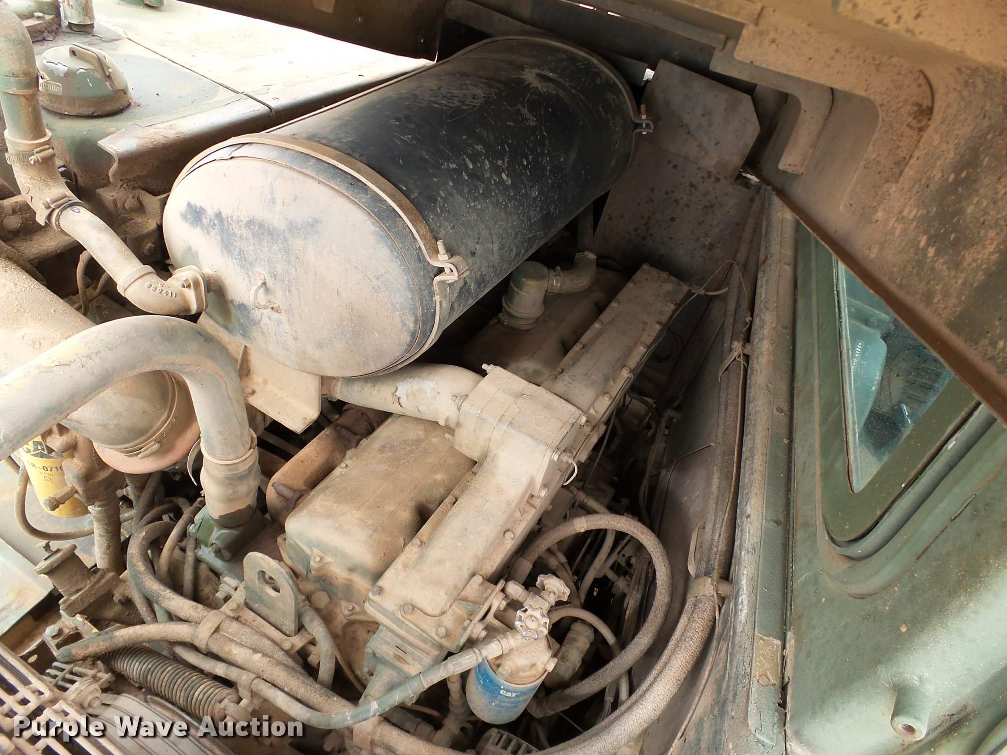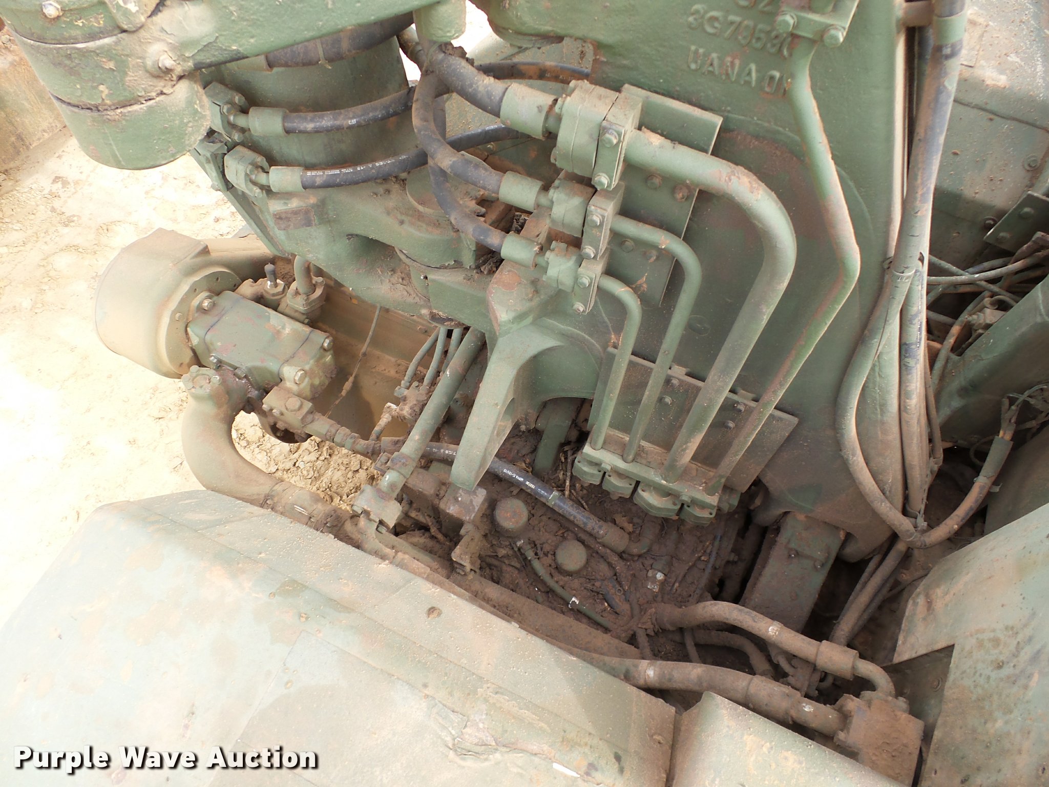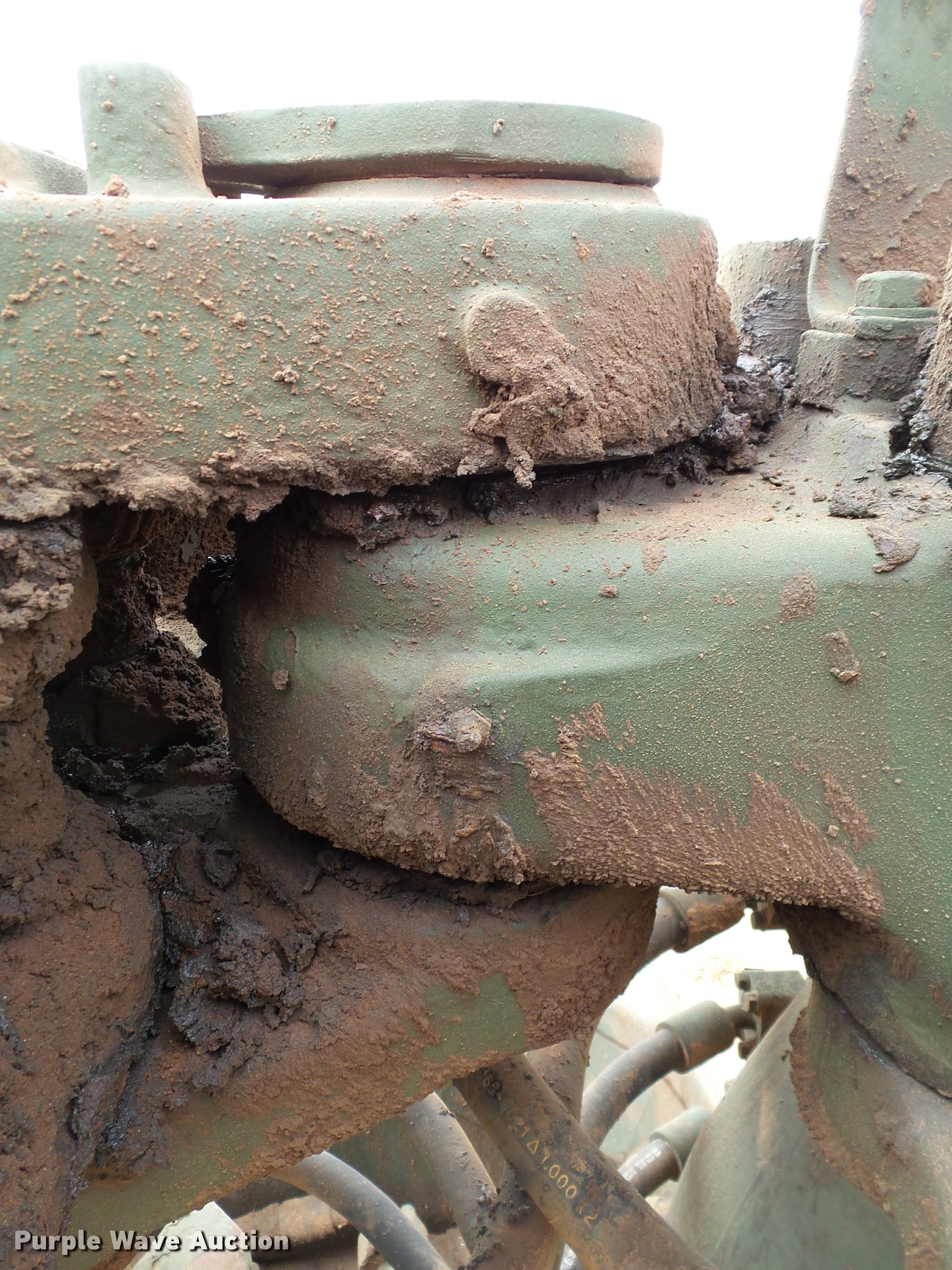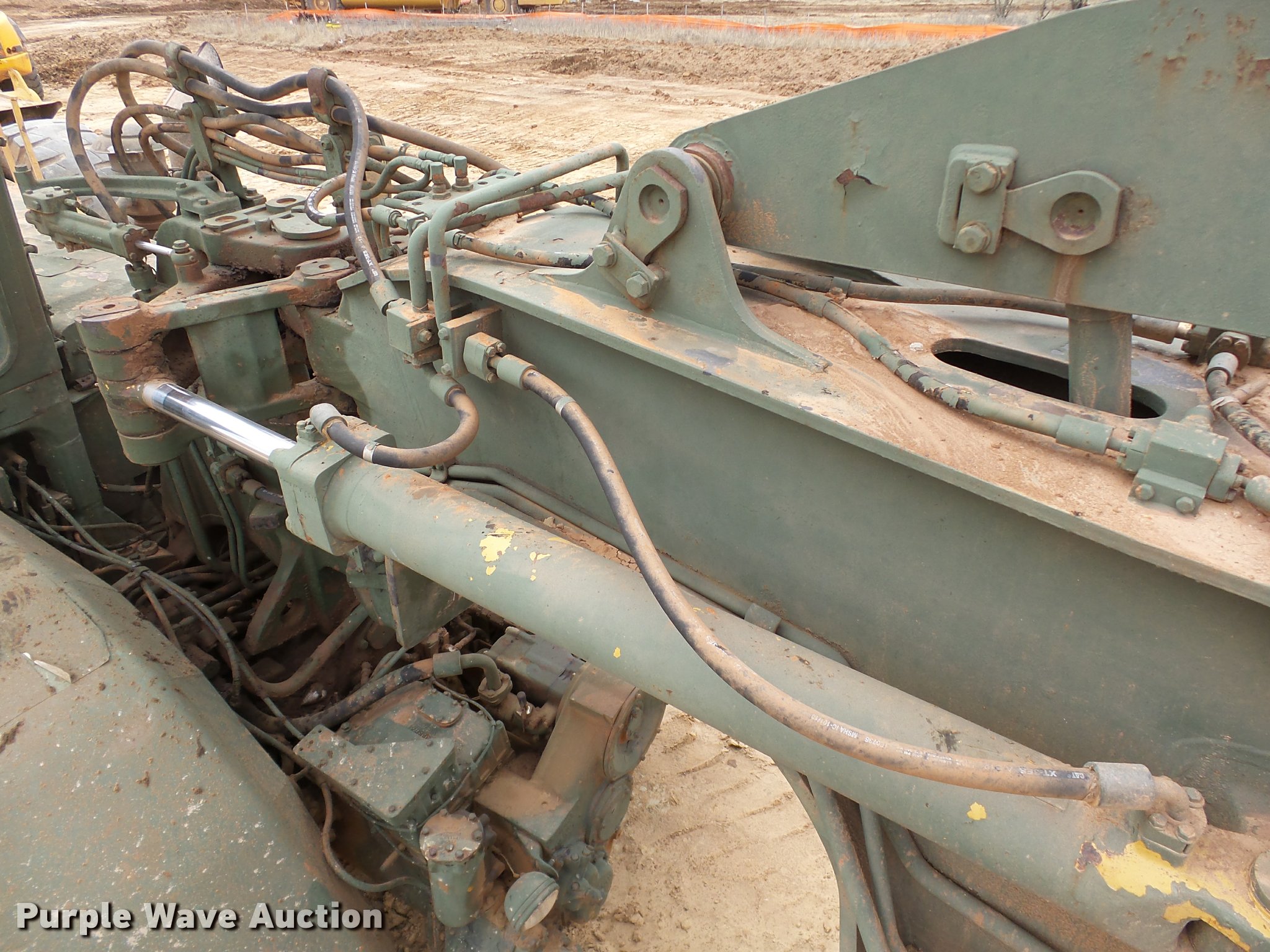 Purple Wave is selling a used Conventional Scraper in Oklahoma. This item is a 1984 Caterpillar 621B conventional scraper with the following: 2,299 hours on meter, Caterpillar 3406 14.6L six cylinder turbo diesel engine, 330 HP, Serial 70V18890, Powershift transmission, 8F-1R gears, Differential lock, Enclosed cab, Unattached door included, Heat, Tilt steering wheel, Wipers, 20 cu. yd. bowl capacity, Hydraulic lift, Three lever controls, Rear push block, Front work lights, Front pin hitch, 29.5-29 tires, Glass cracked, Serial 2DB00395