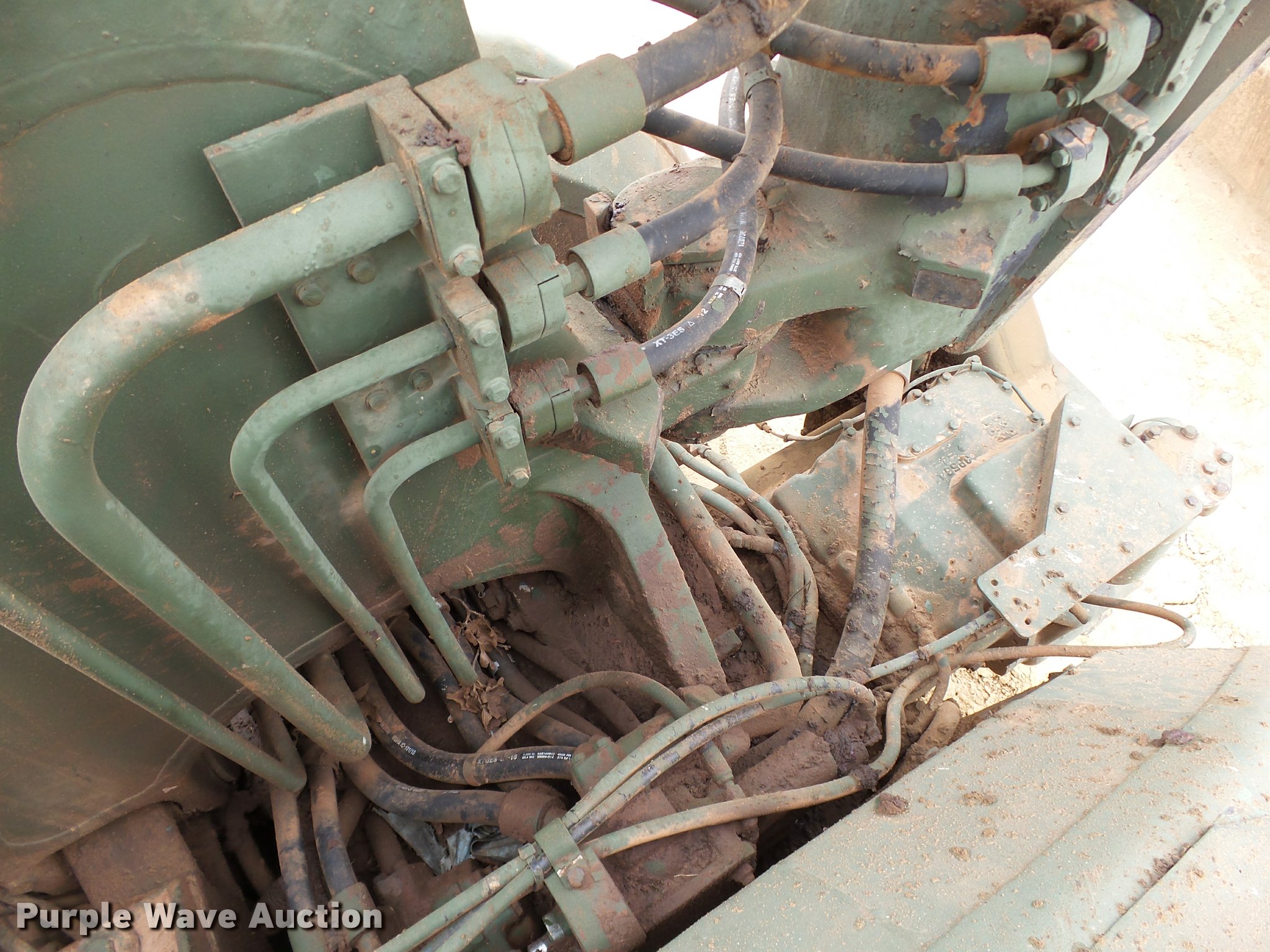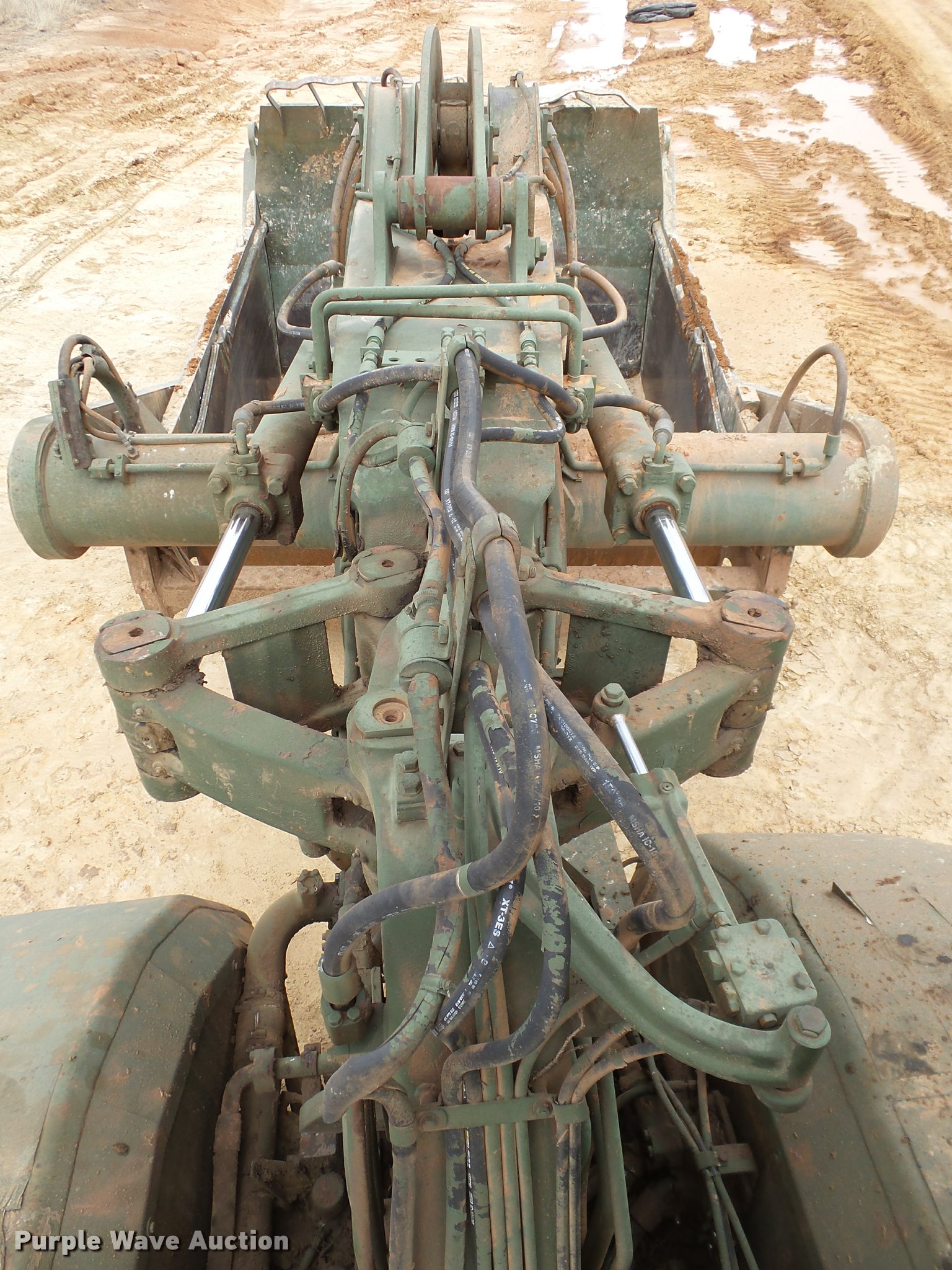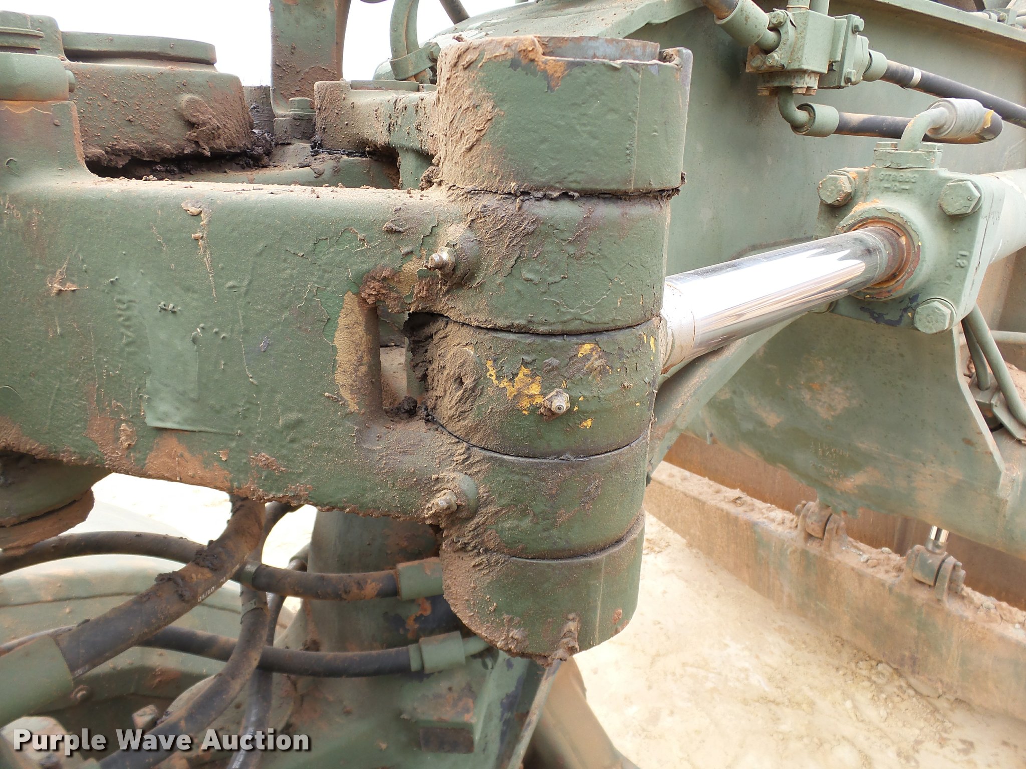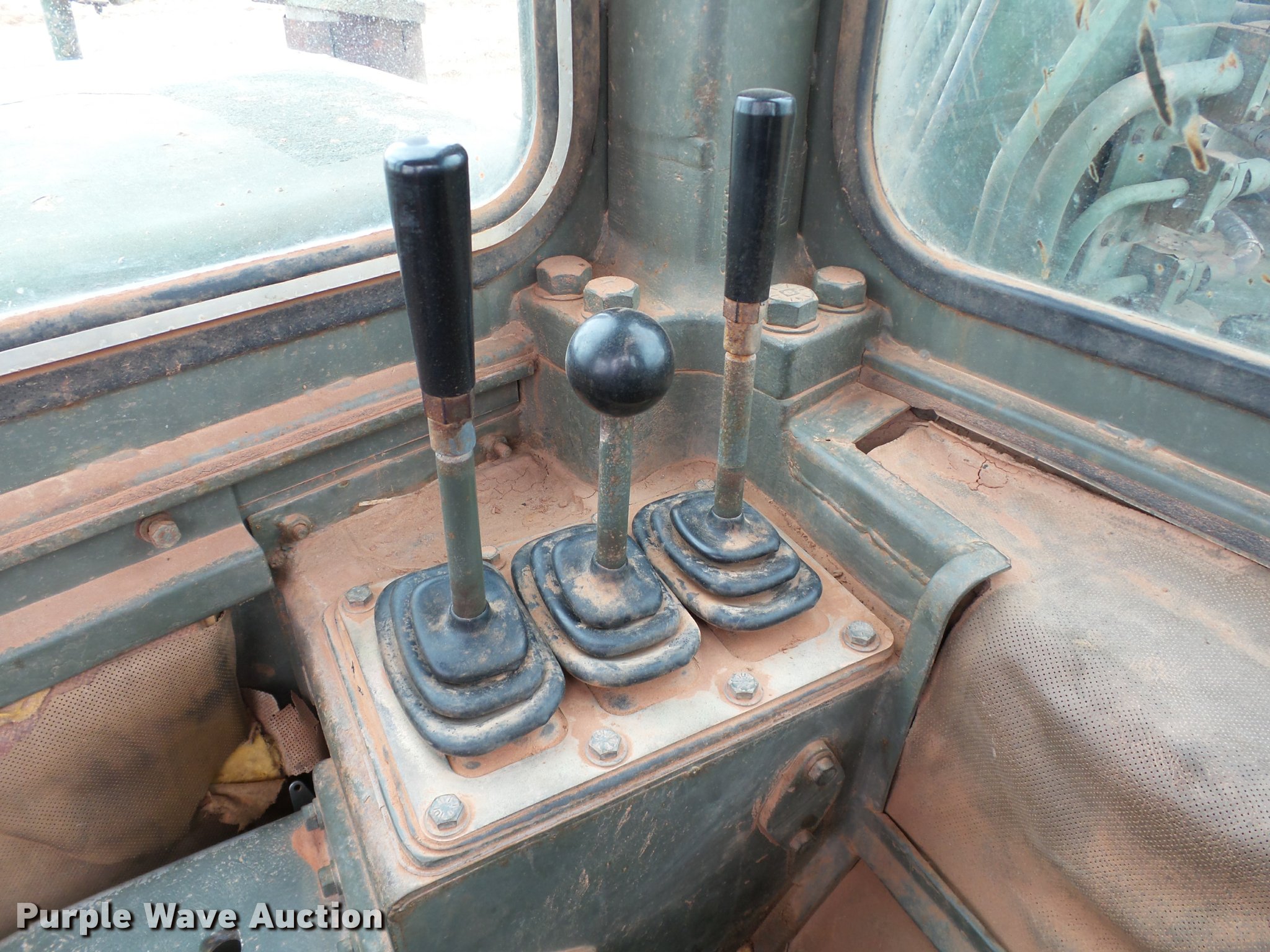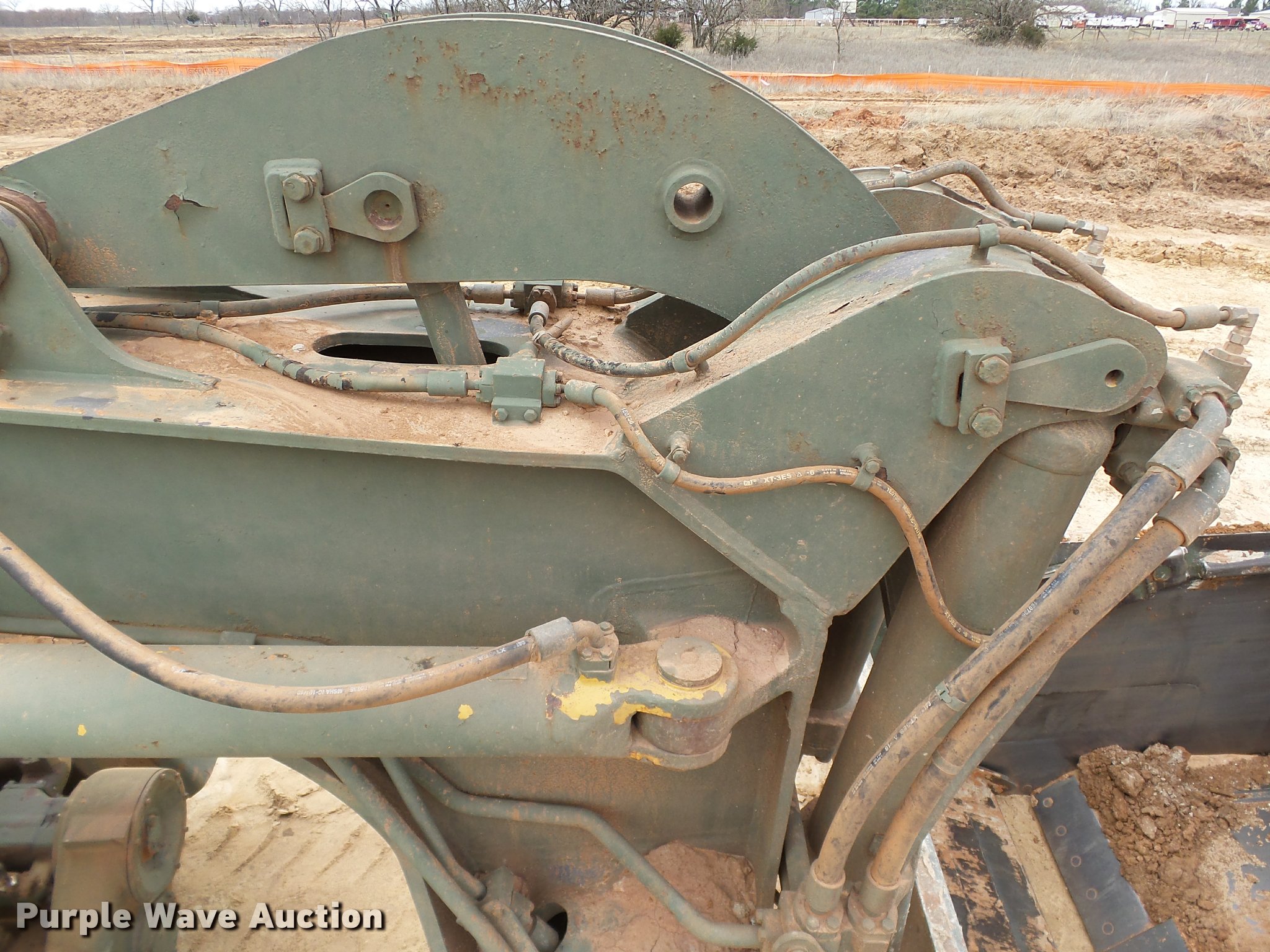 Purple Wave is selling a used Conventional Scraper in Oklahoma. This item is a 1984 Caterpillar 621B conventional scraper with the following: 2,299 hours on meter, Caterpillar 3406 14.6L six cylinder turbo diesel engine, 330 HP, Serial 70V18890, Powershift transmission, 8F-1R gears, Differential lock, Enclosed cab, Unattached door included, Heat, Tilt steering wheel, Wipers, 20 cu. yd. bowl capacity, Hydraulic lift, Three lever controls, Rear push block, Front work lights, Front pin hitch, 29.5-29 tires, Glass cracked, Serial 2DB00395