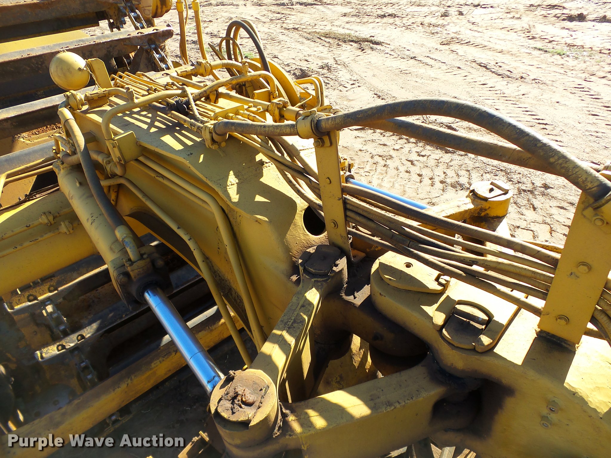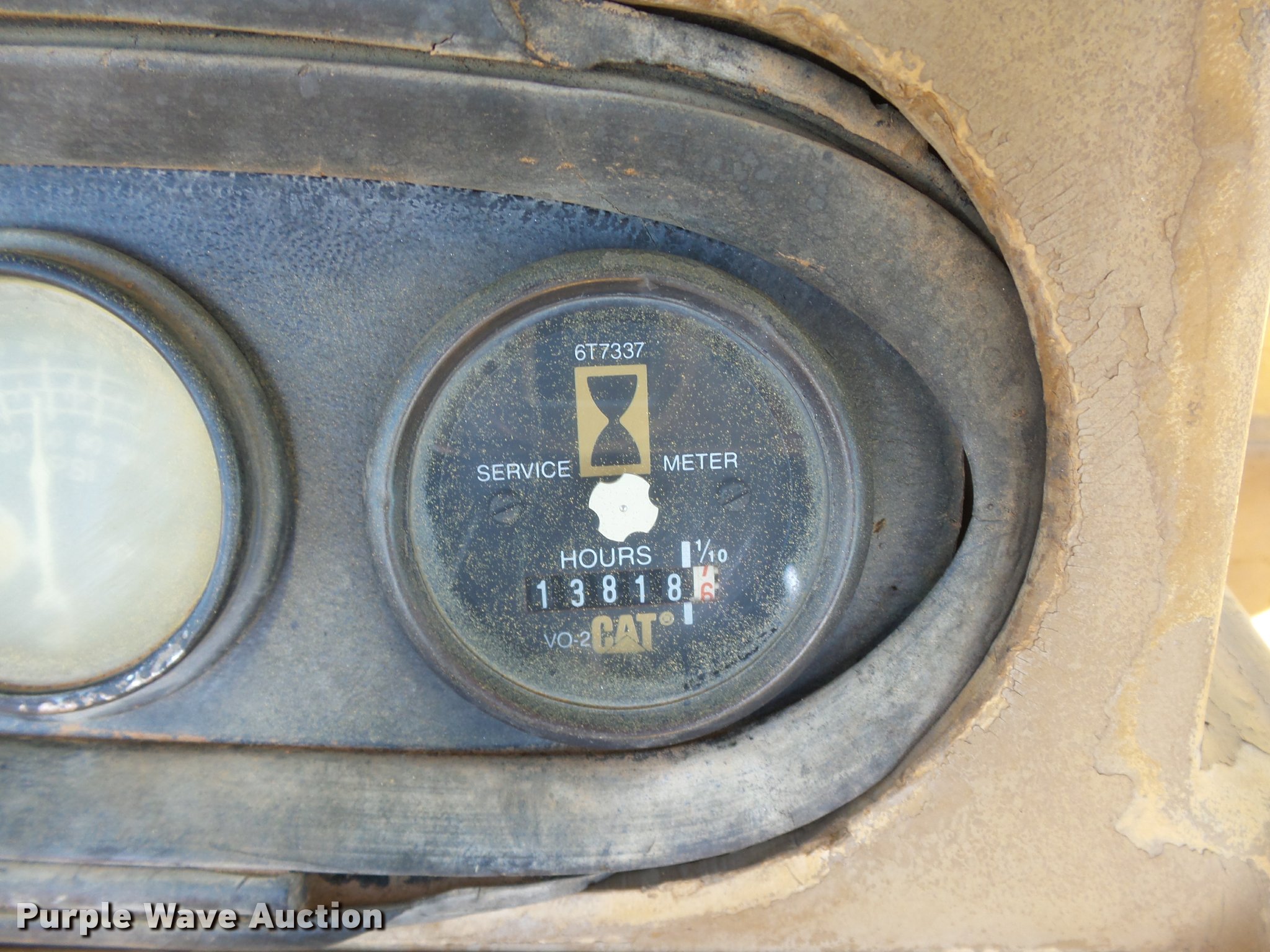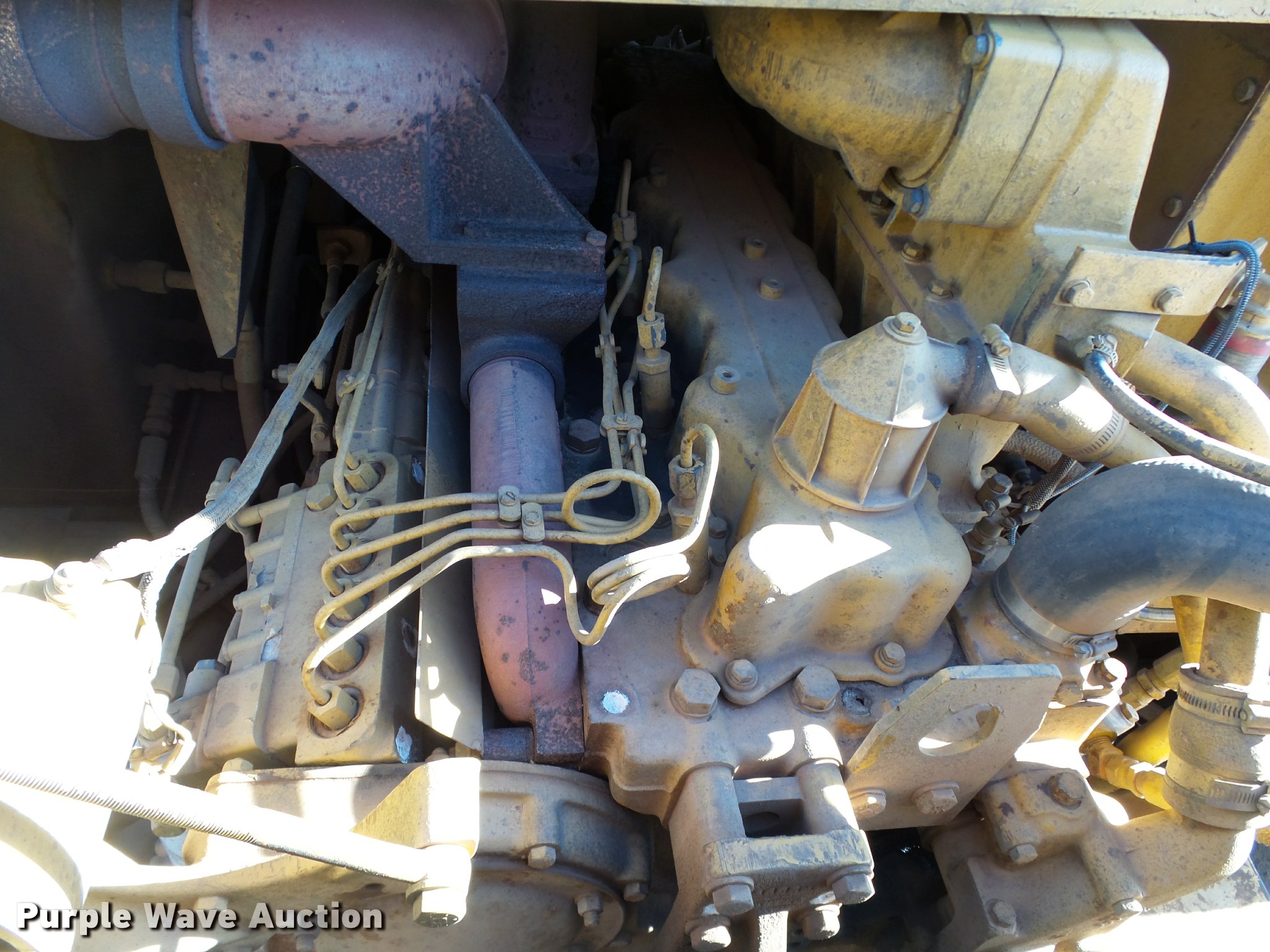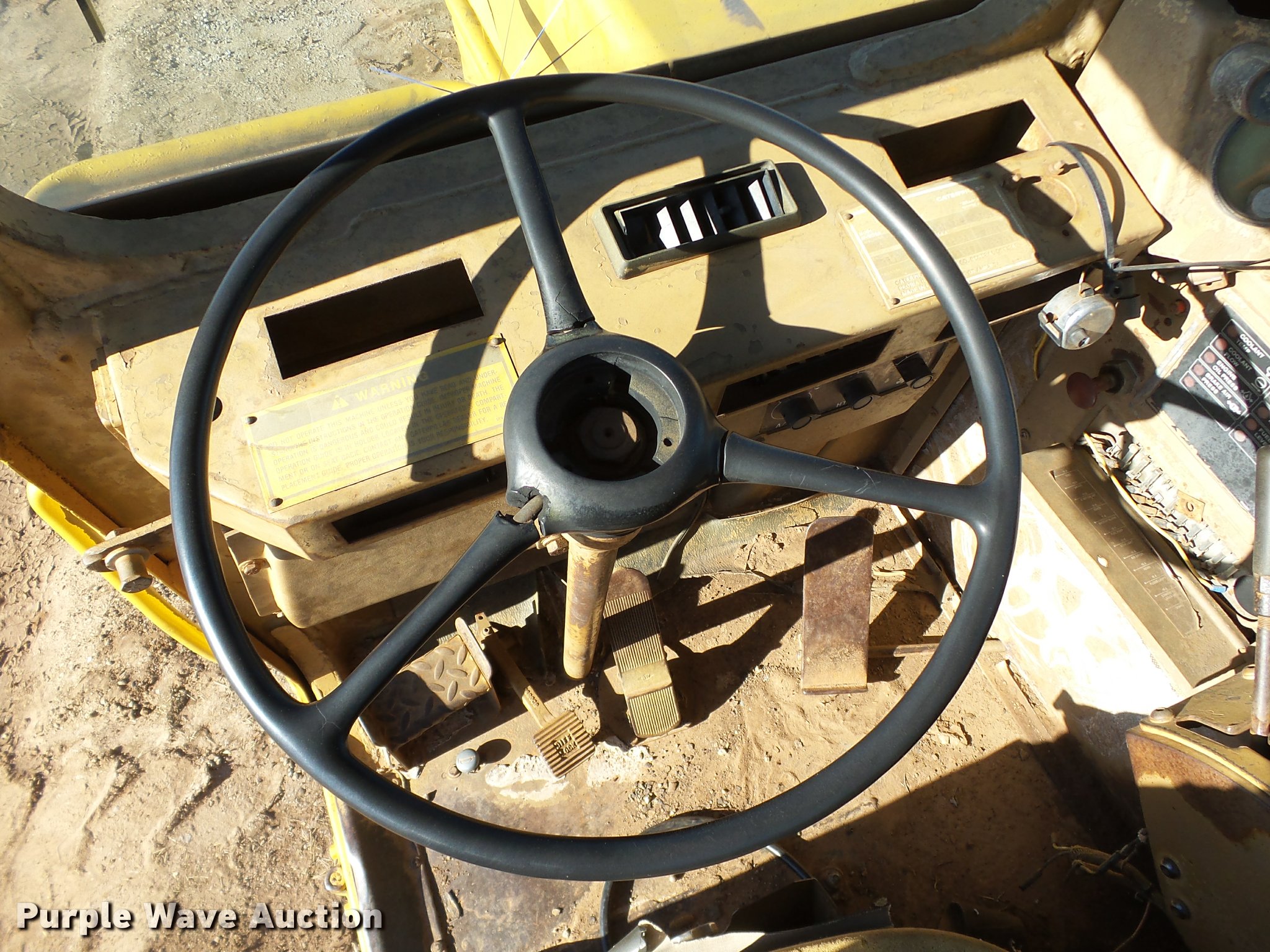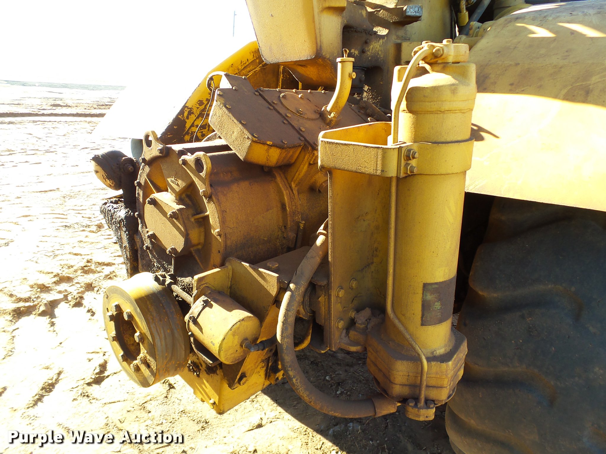 Purple Wave is selling a used Elevating Scraper in Oklahoma. This item is a 1984 Caterpillar 615 elevating scraper with the following: 13,818 hours on meter, Caterpillar 3306 10.5L six cylinder turbo diesel engine, 250 HP, Serial 08Z23421, Powershift transmission, 6F-1R gears, Differential lock, Enclosed cab, 16 cu. yd. bowl capacity, Hydraulic lift, Three lever controls, Rear push block, Front work lights, Rear pin hitch, 29.5-29 tires, Glass cracked, Serial 46Z01074
