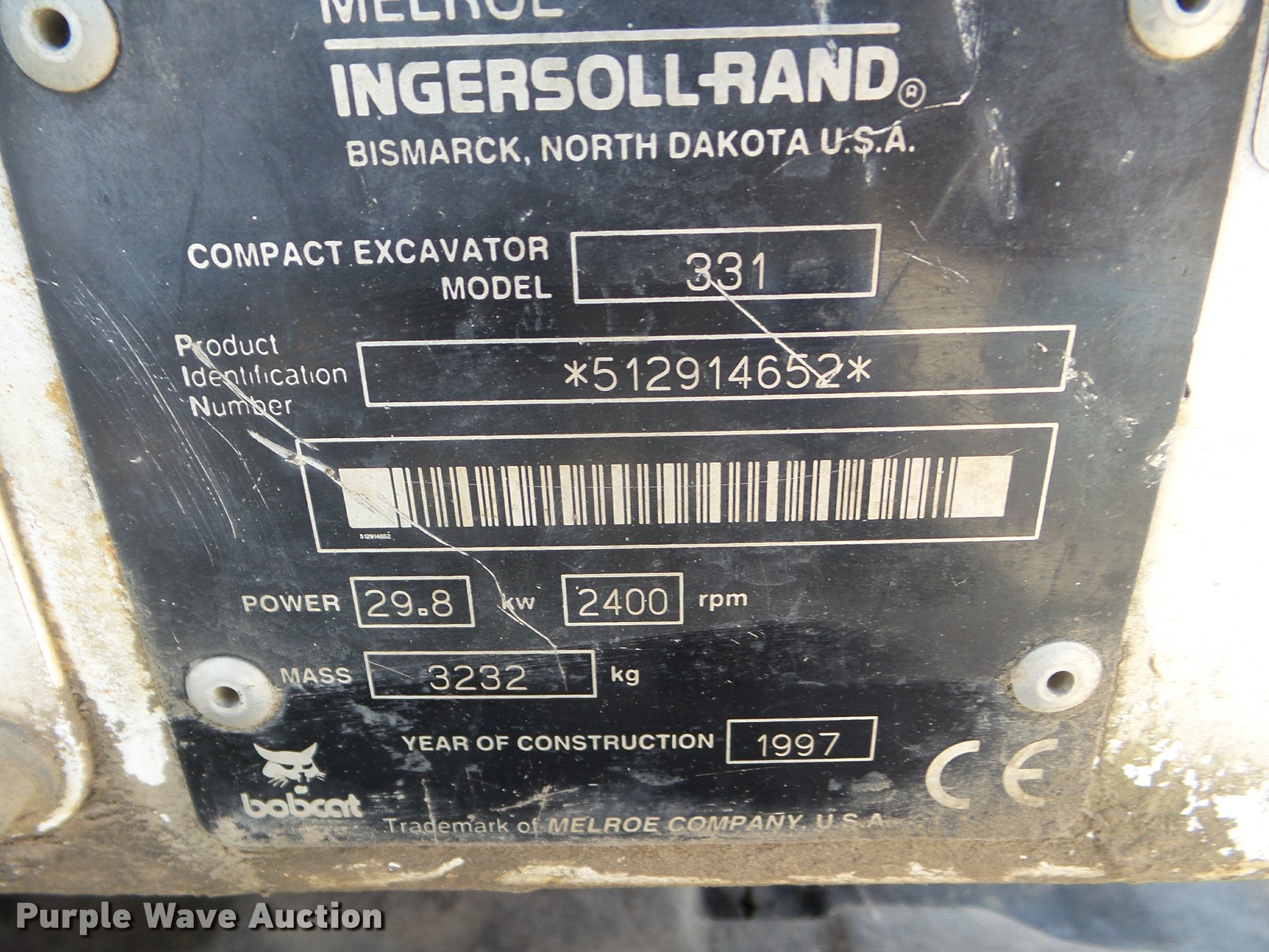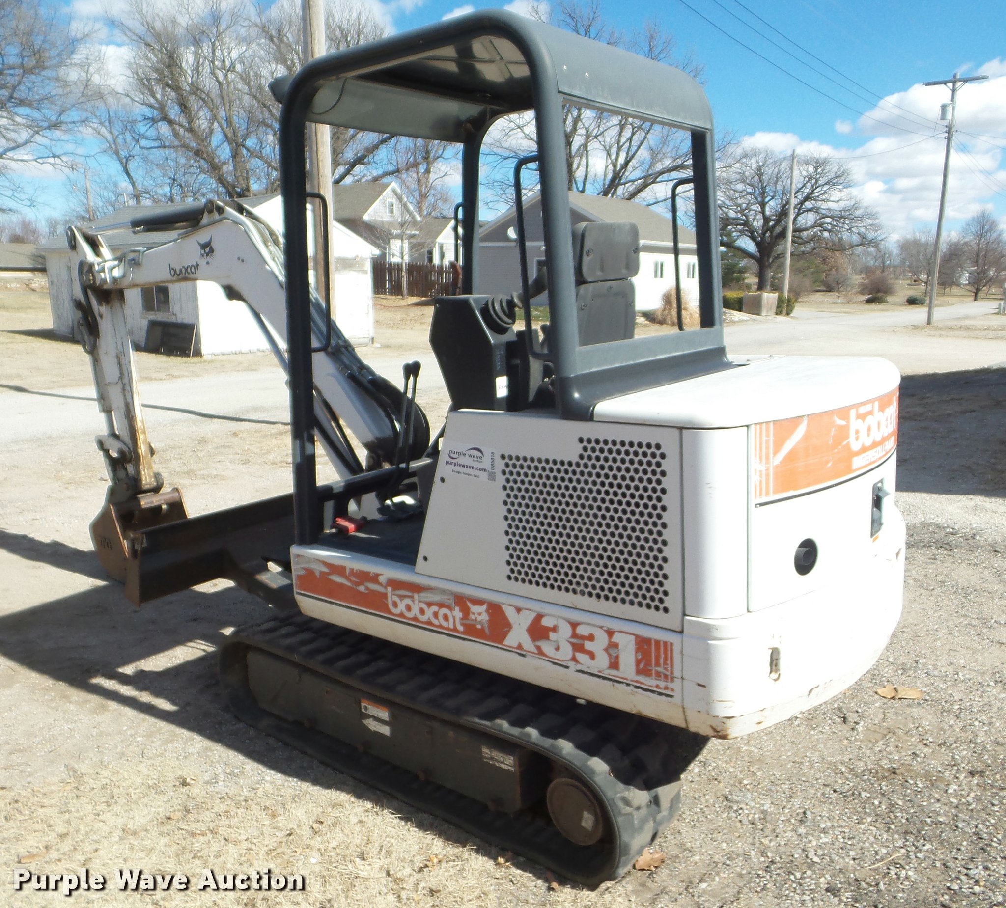 Purple Wave is selling a used Mini Excavator in Kansas. This item is a 1997 Bobcat X331 compact excavator with the following: 4,327 hours on meter, Kubota four cylinder diesel engine, Two speed hydrostatic transmission, OROPS, Suspension seat, Front work lights, Standard boom, 48" stick length, 18"W bucket, (4) bolt-on teeth, Auxiliary hydraulics, 14"W backfill blade, Four bottom rollers, 12"W rubber tracks, Serial 512914652
