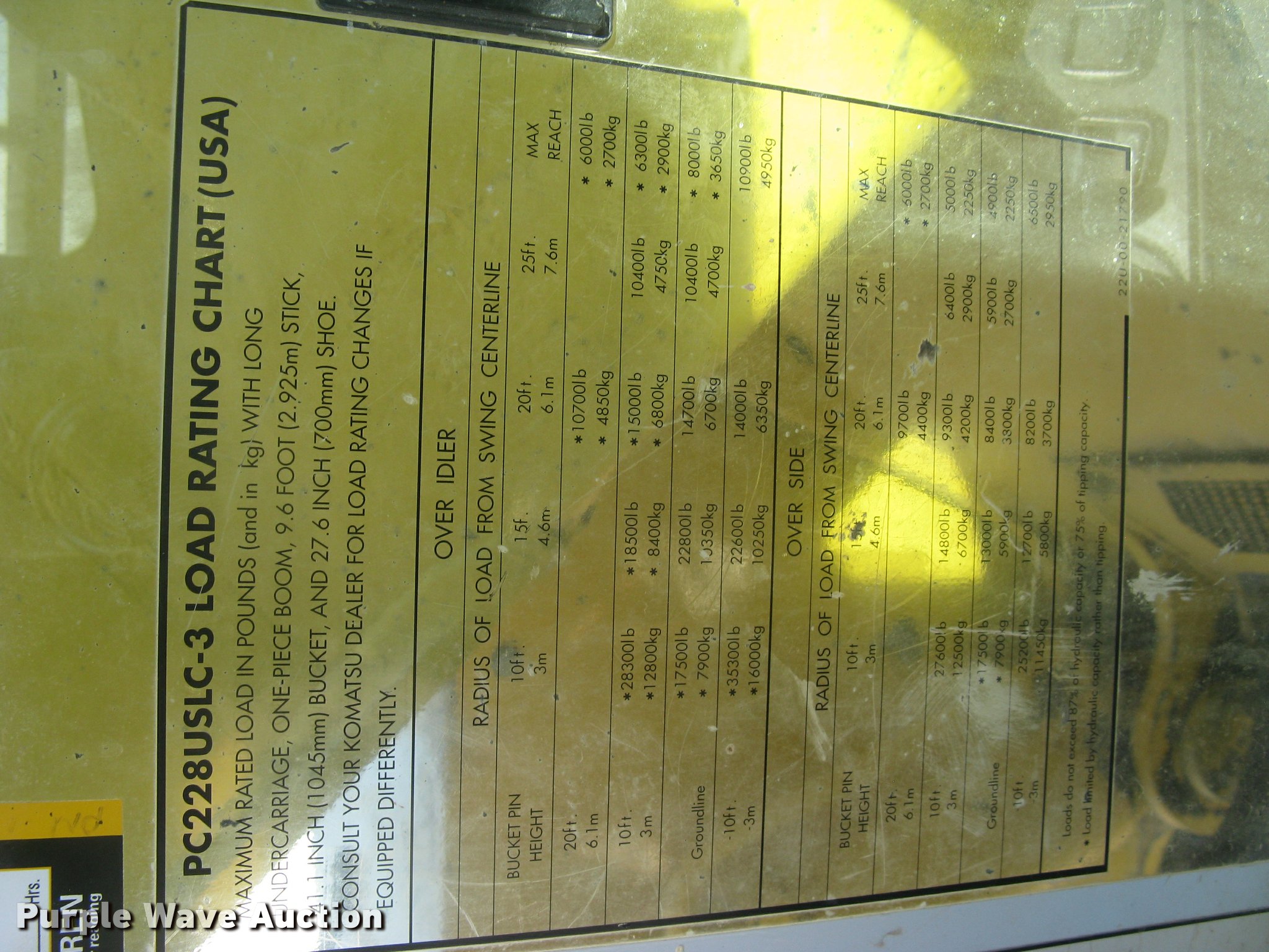 Purple Wave is selling a used Hydraulic Excavator in Oklahoma. This item is a 2006 Komatsu PC228USLC-3 excavator with the following: 9,852 hours on meter, Komatsu SAA6D102E-2 5.9L six cylinder turbo diesel engine, 150 HP, Serial 26365289, Hydrostatic transmission, EROPS, AC and heat, AM/FM, Suspension seat, Front work lights, Standard boom, 9.5' stick length, Hensley 48"W bucket, (6) bolt-on teeth, 1.57 cu. yd. capacity, (9) bottom rollers, 27.5"W steel triple grouser track pads, Serial KMTPC057P02031942, Unit# 20.130L