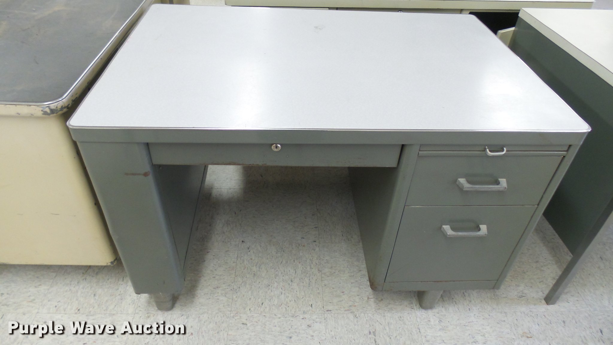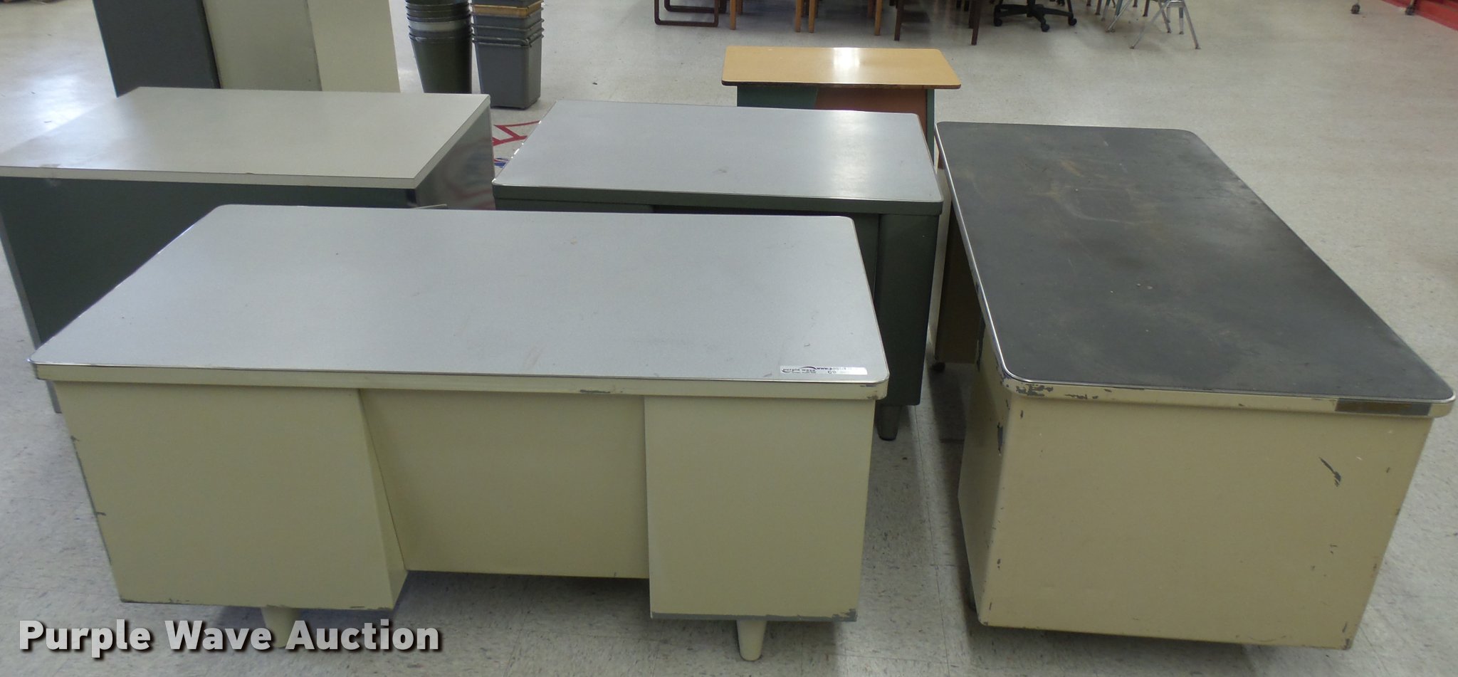 Purple Wave is selling a used Furniture in Kansas. This item is a (5) metal desks with the following: (5) metal desks. Hutchinson Community College. Hutchinson, KS 67501