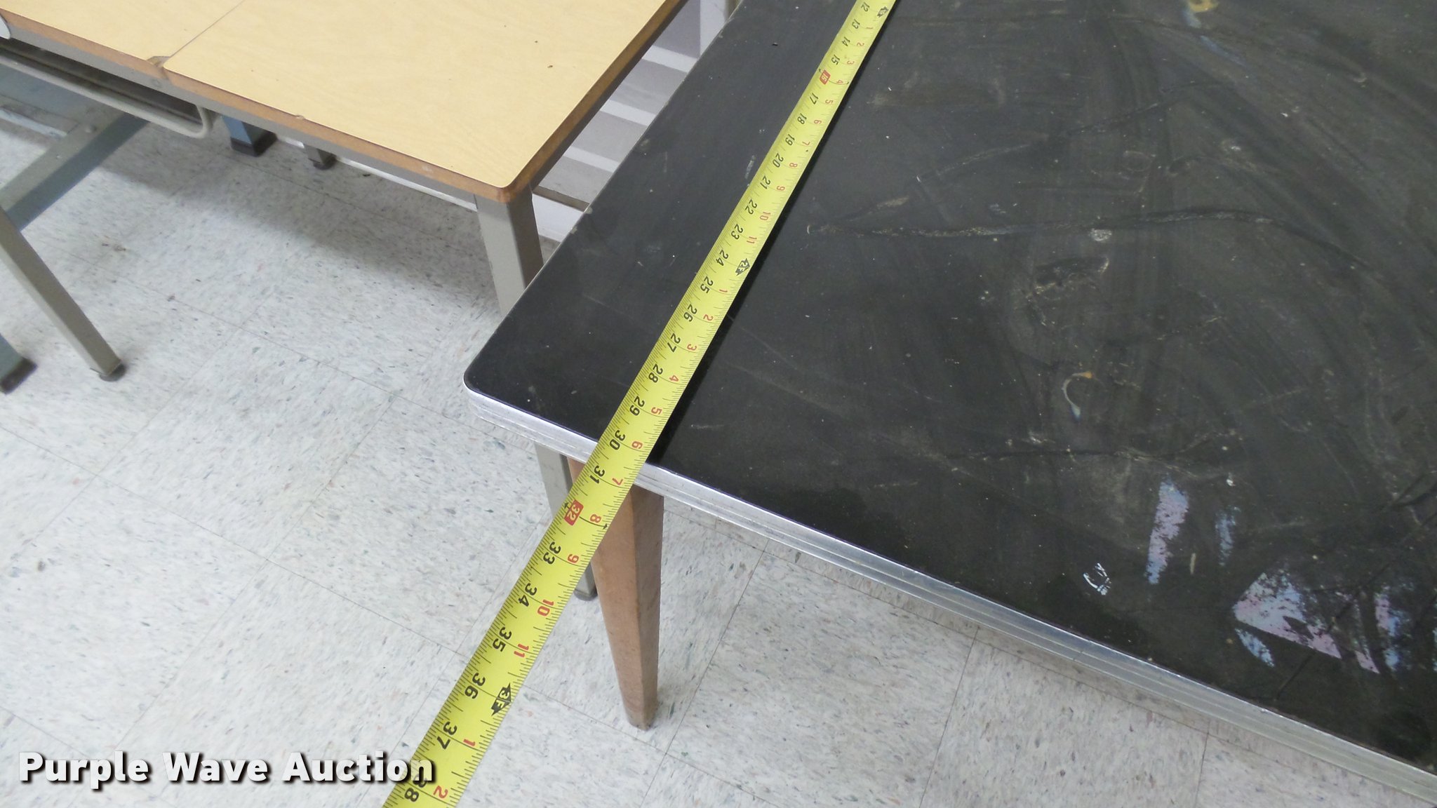 Office furniture. Wood storage cabinet, (2) wood tables, Metal desk. Hutchinson Community College. Hutchinson, KS 67501