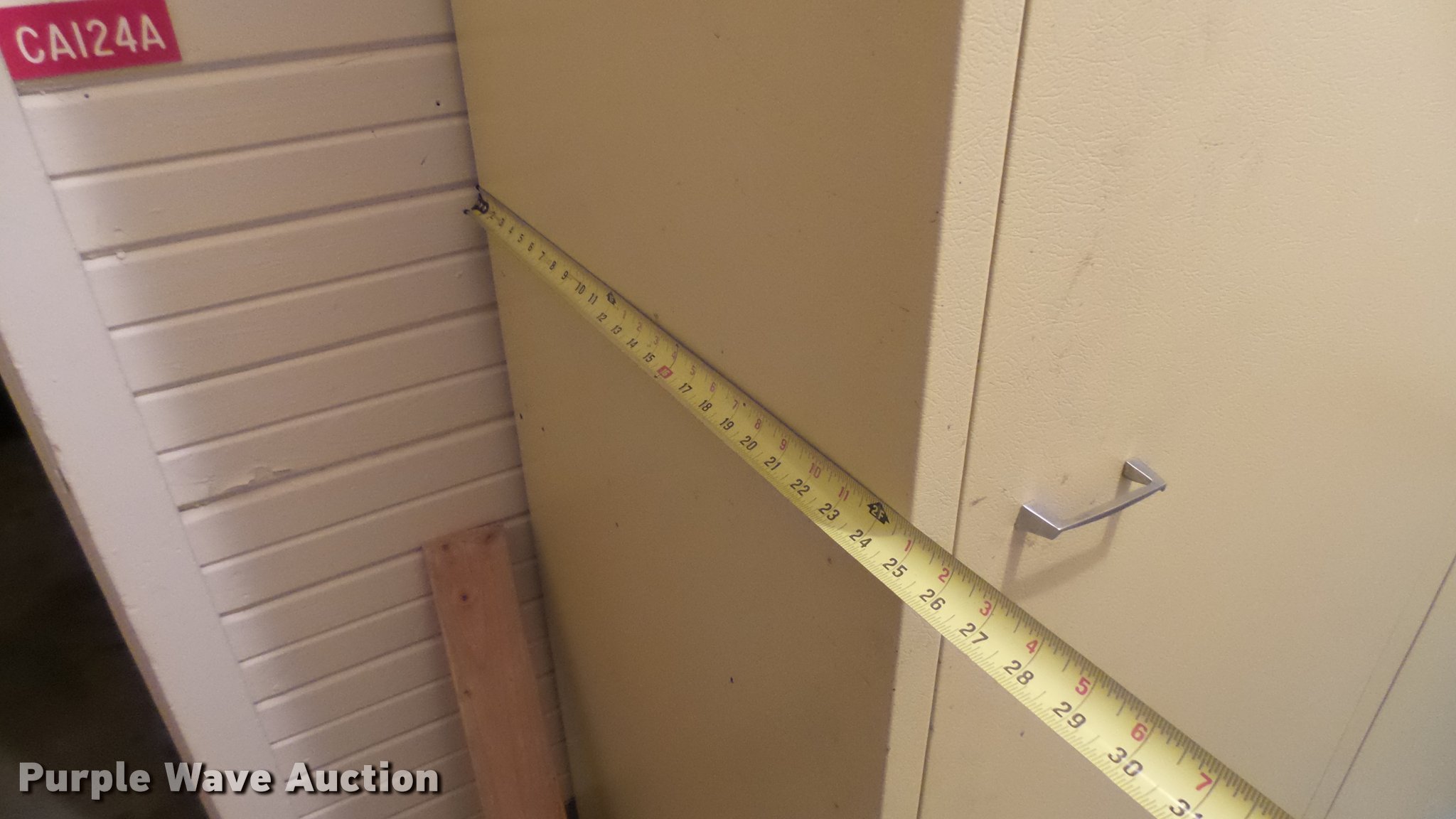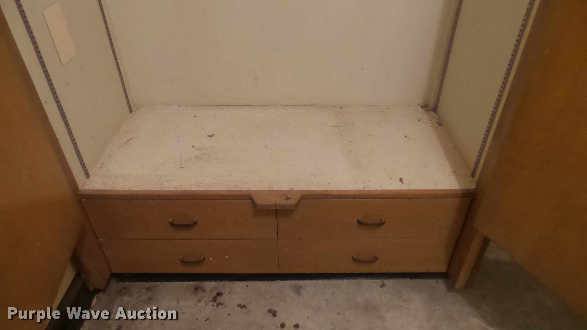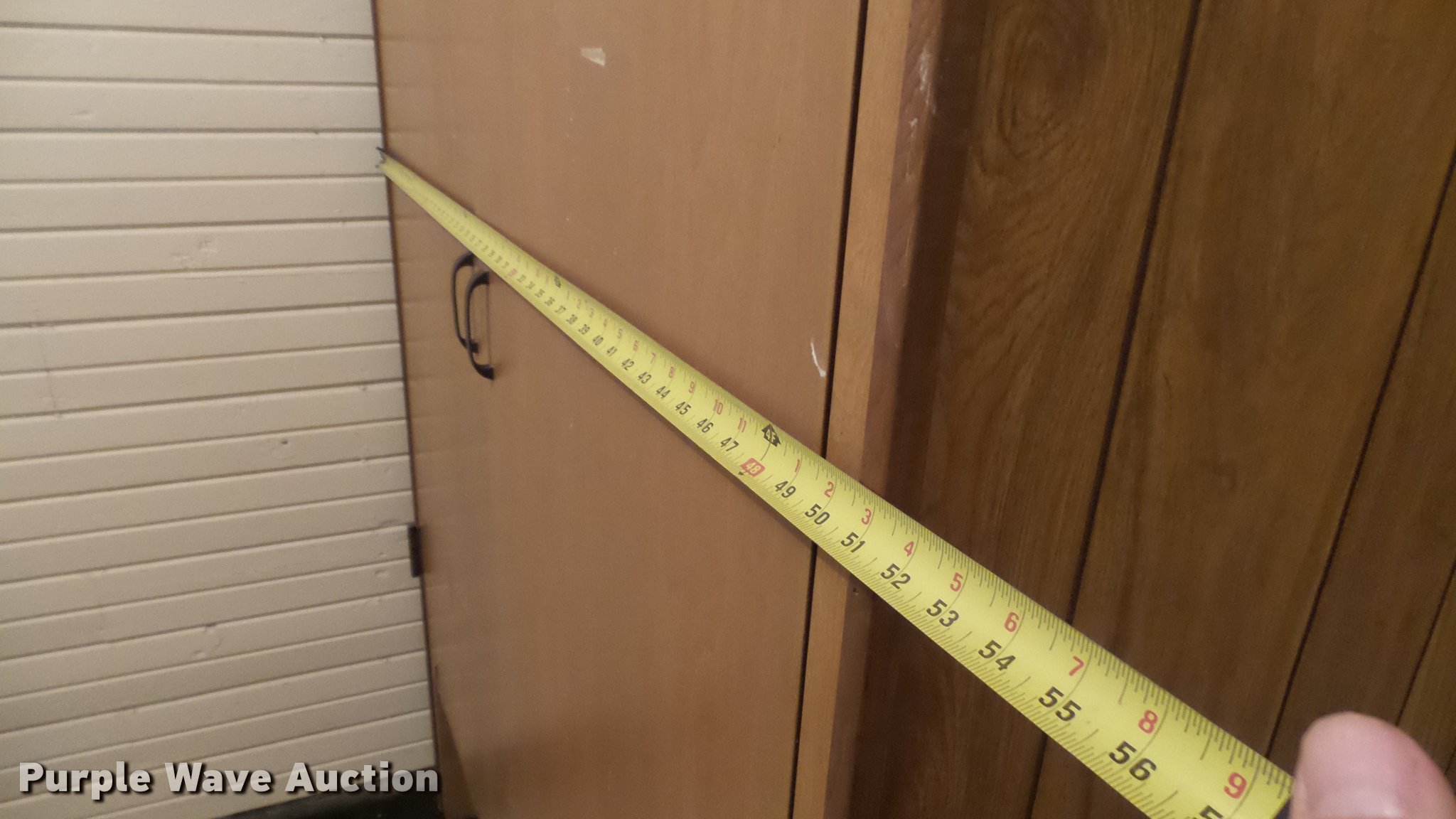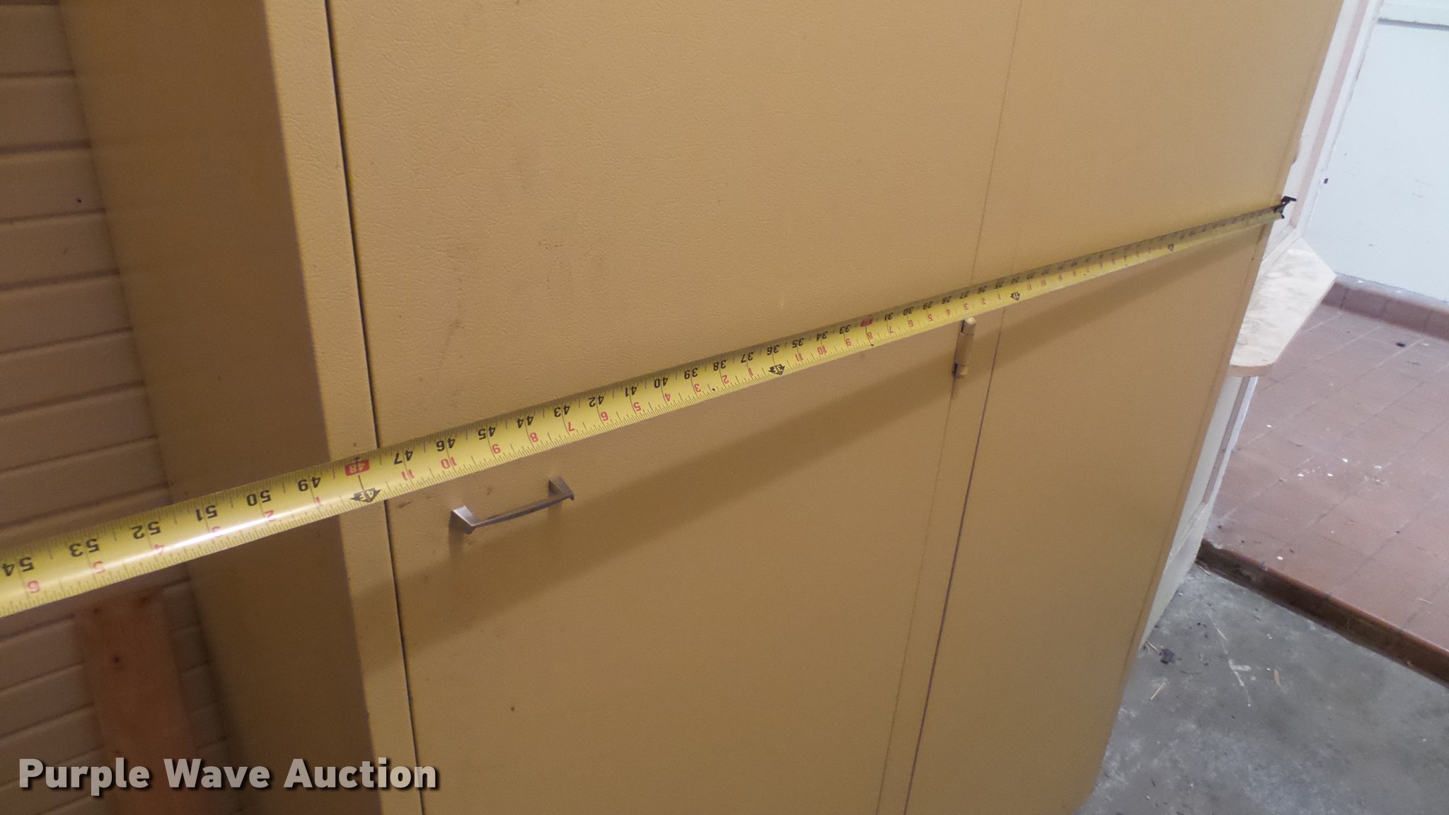 Purple Wave is selling a used Furniture in Kansas. This item is a (2) cabinets with the following: Metal, 48" x 25" x 84"H, Wood, 50" x 26" x 81"H
