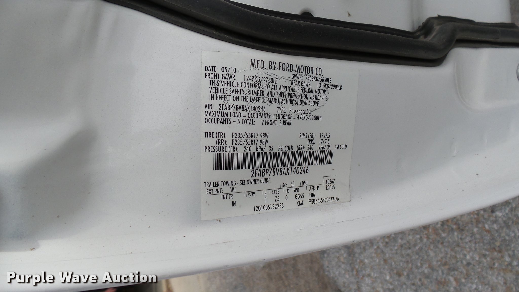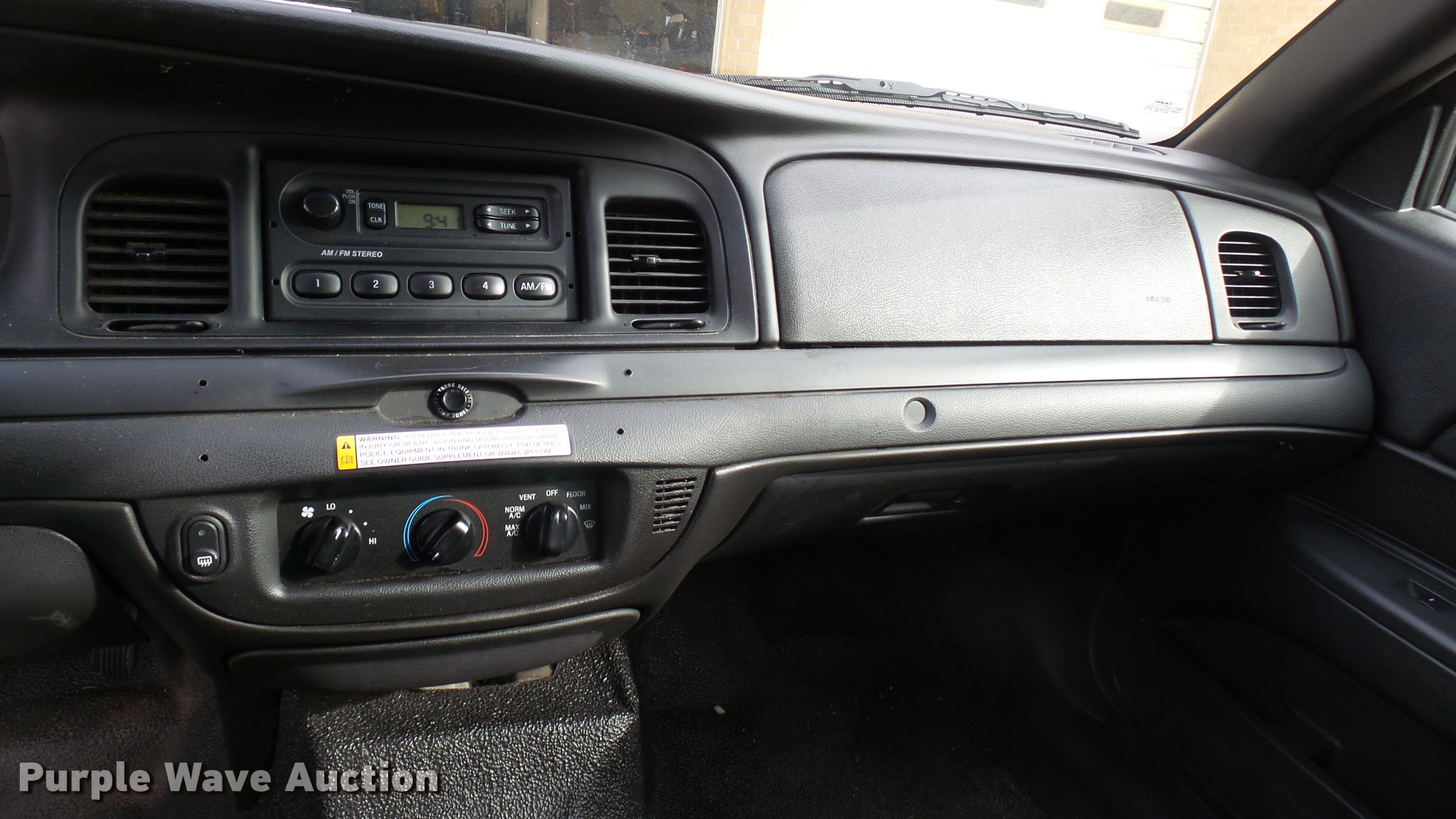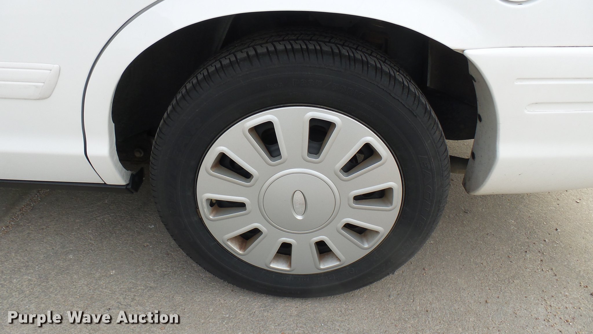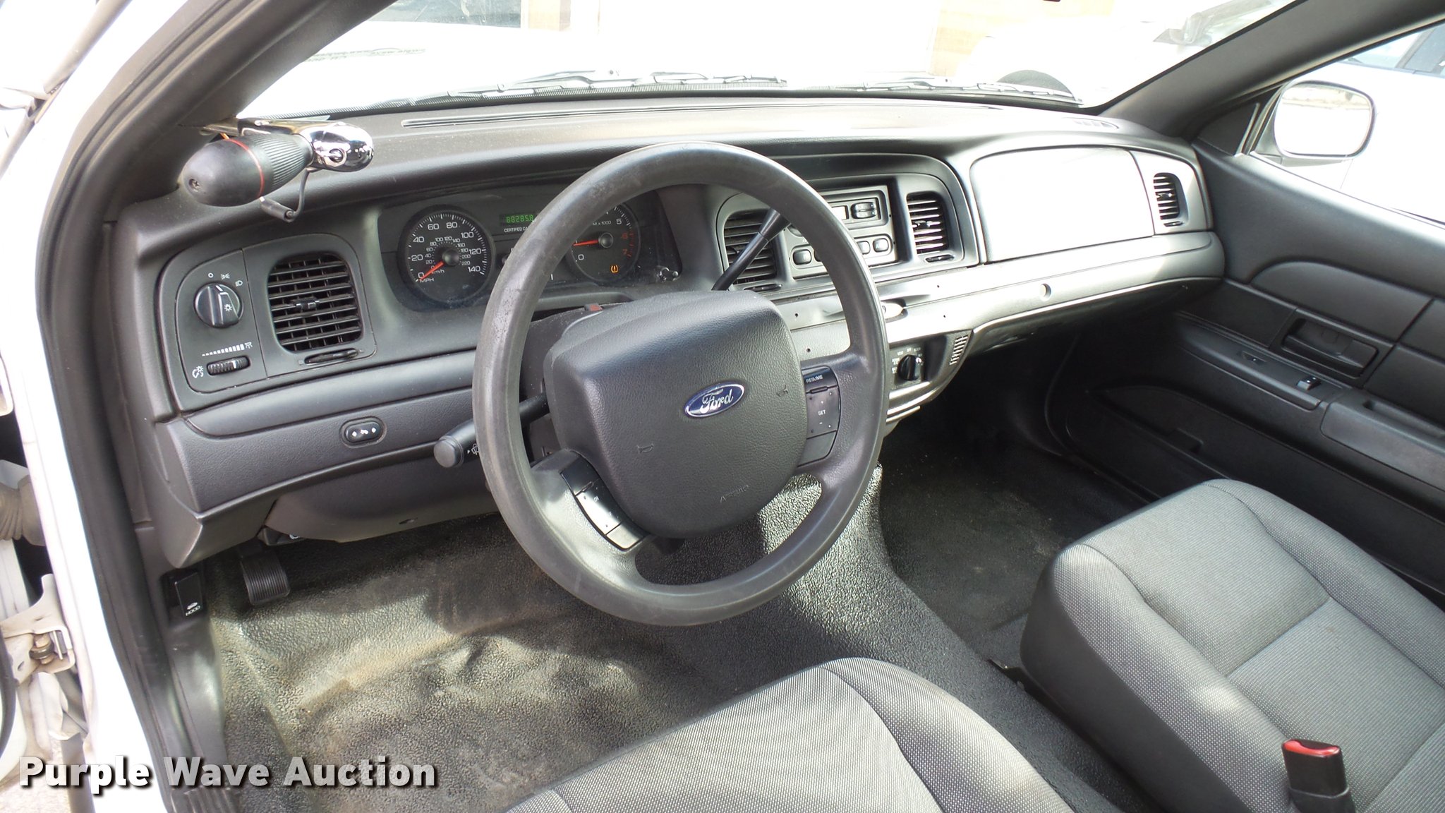 Purple Wave is selling a used Passenger Vehicle in Kansas. This item is a 2010 Ford Crown Victoria Police Interceptor with the following: 88,285 miles on odometer, 4.6L V8 SOHC 16V FFV gas engine, Automatic transmission, AC and heat, Tilt, Cruise, AM/FM, Power windows, locks, and mirrors, Cloth front interior, Vinyl rear interior, 235/55R17 tires, Port holes