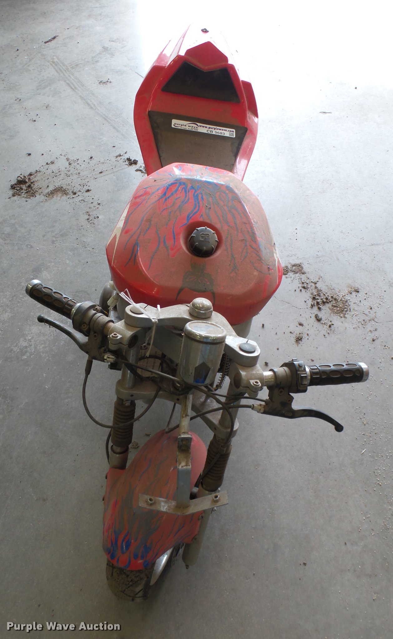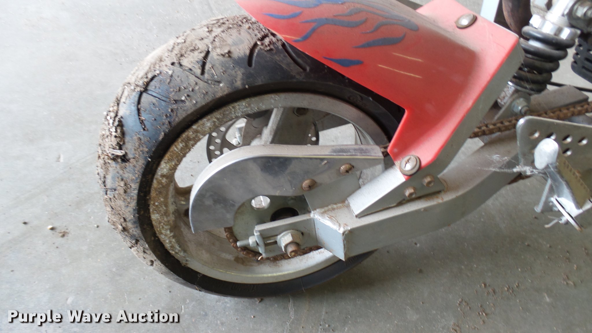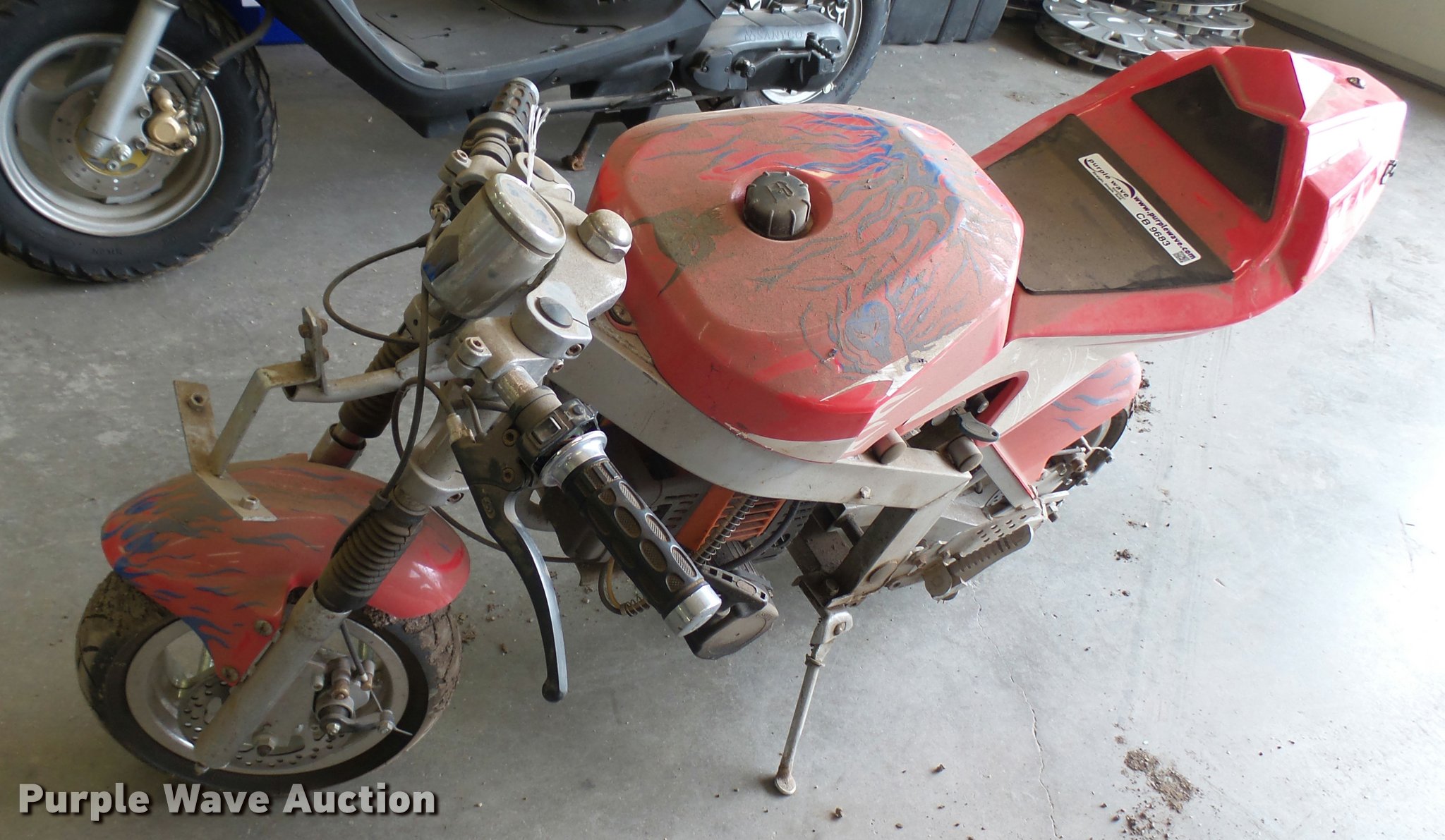 Purple Wave is selling a used Sporting Goods in Kansas. This item is a CVT X1 mini bike with the following: Gas engine, Automatic transmission, Recoil start, Chain driven, Pull start, Speedometer