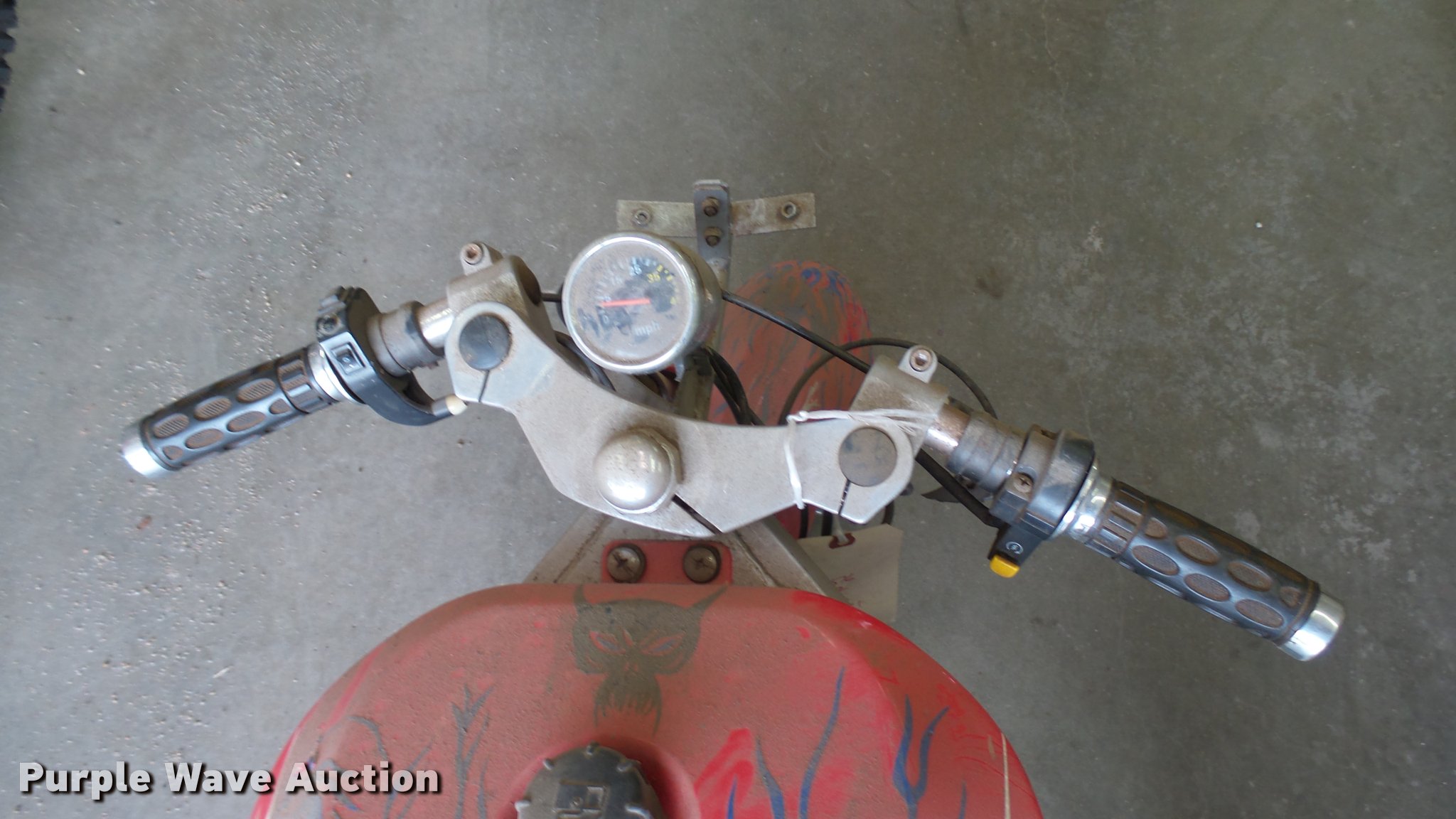 CVT X1 mini bike. Gas engine, Automatic transmission, Recoil start, Chain driven, Pull start, Speedometer. Park City Police Department. Park City, KS 67219