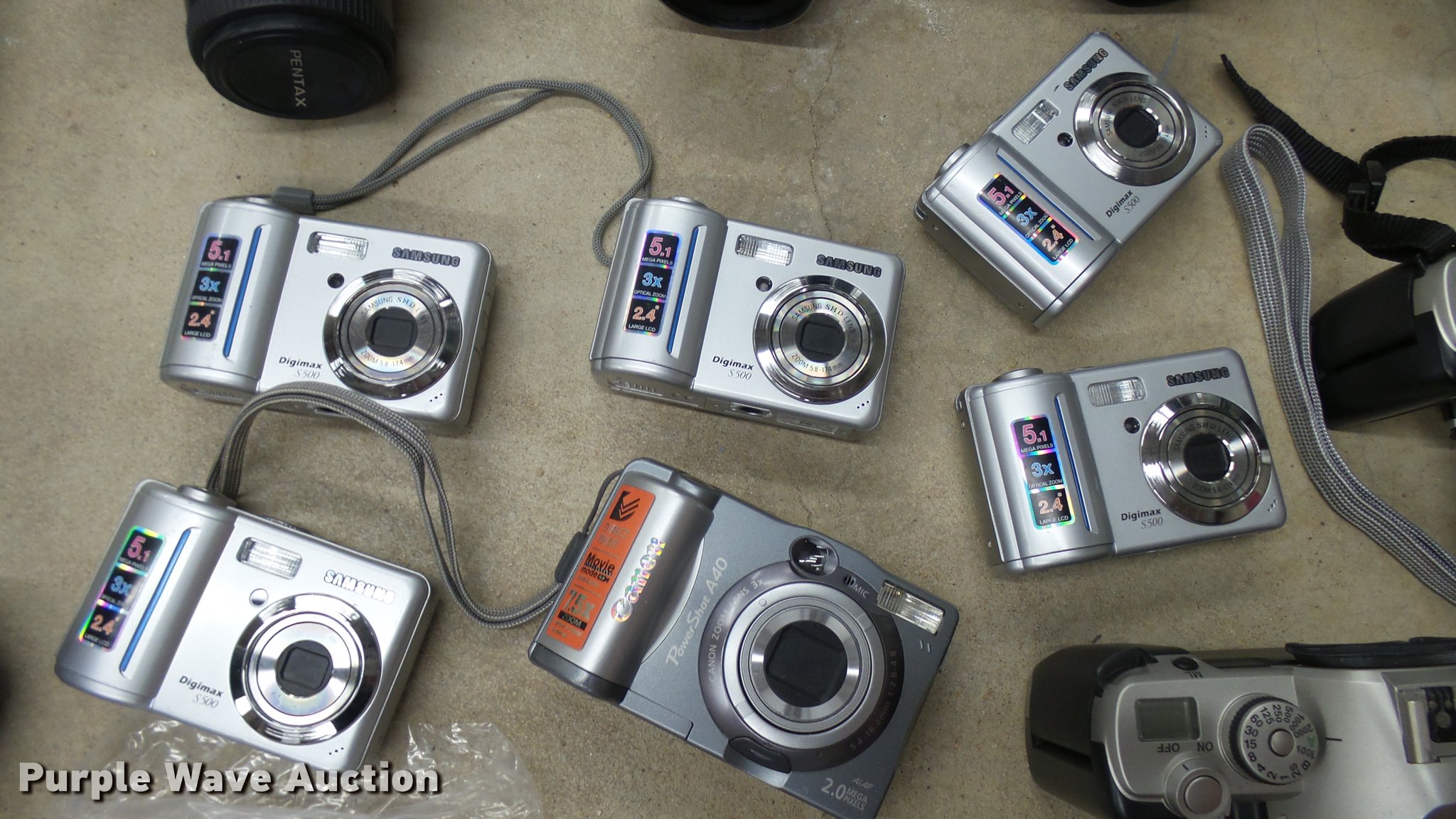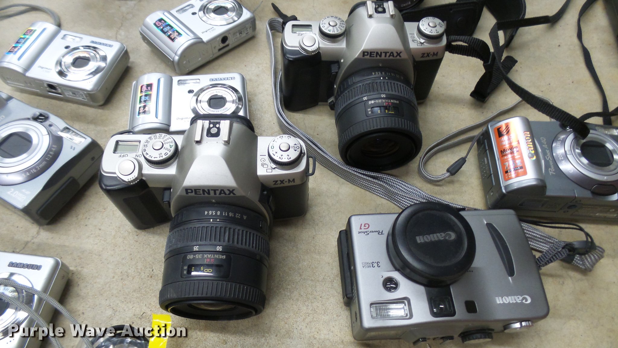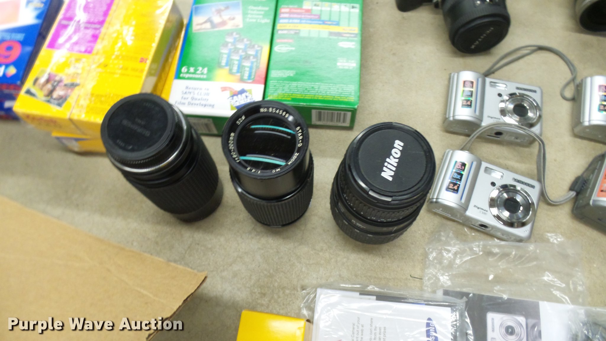 Purple Wave is selling a used Electronics in Kansas. This item is a Electronics with the following: (18) cameras, (2) Polaroid, Lenses, Cords, Accessories, Tripod