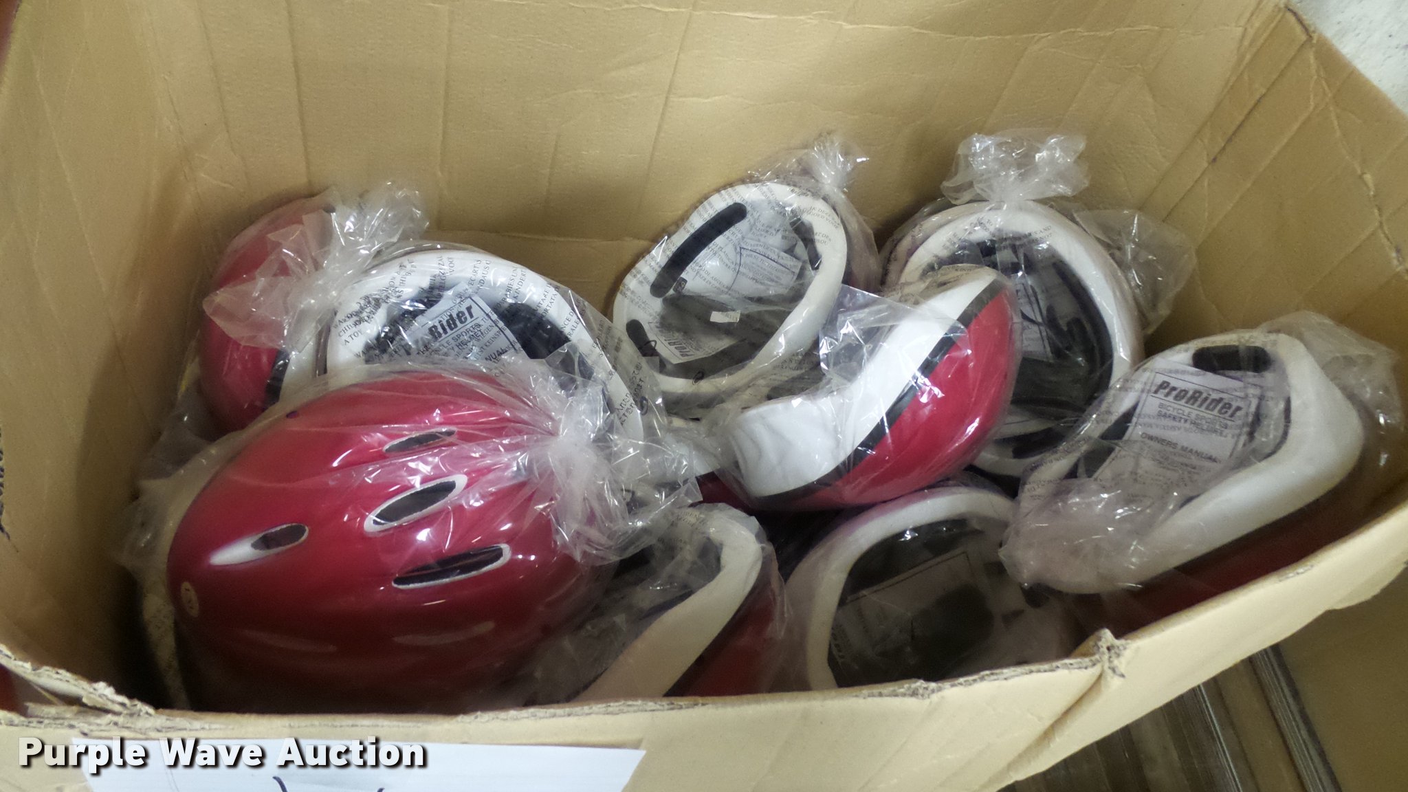 Purple Wave is selling a used Sporting Goods in Kansas. This item is a (50) ProRider bicycle helmets with the following: Assorted sizes, Unused