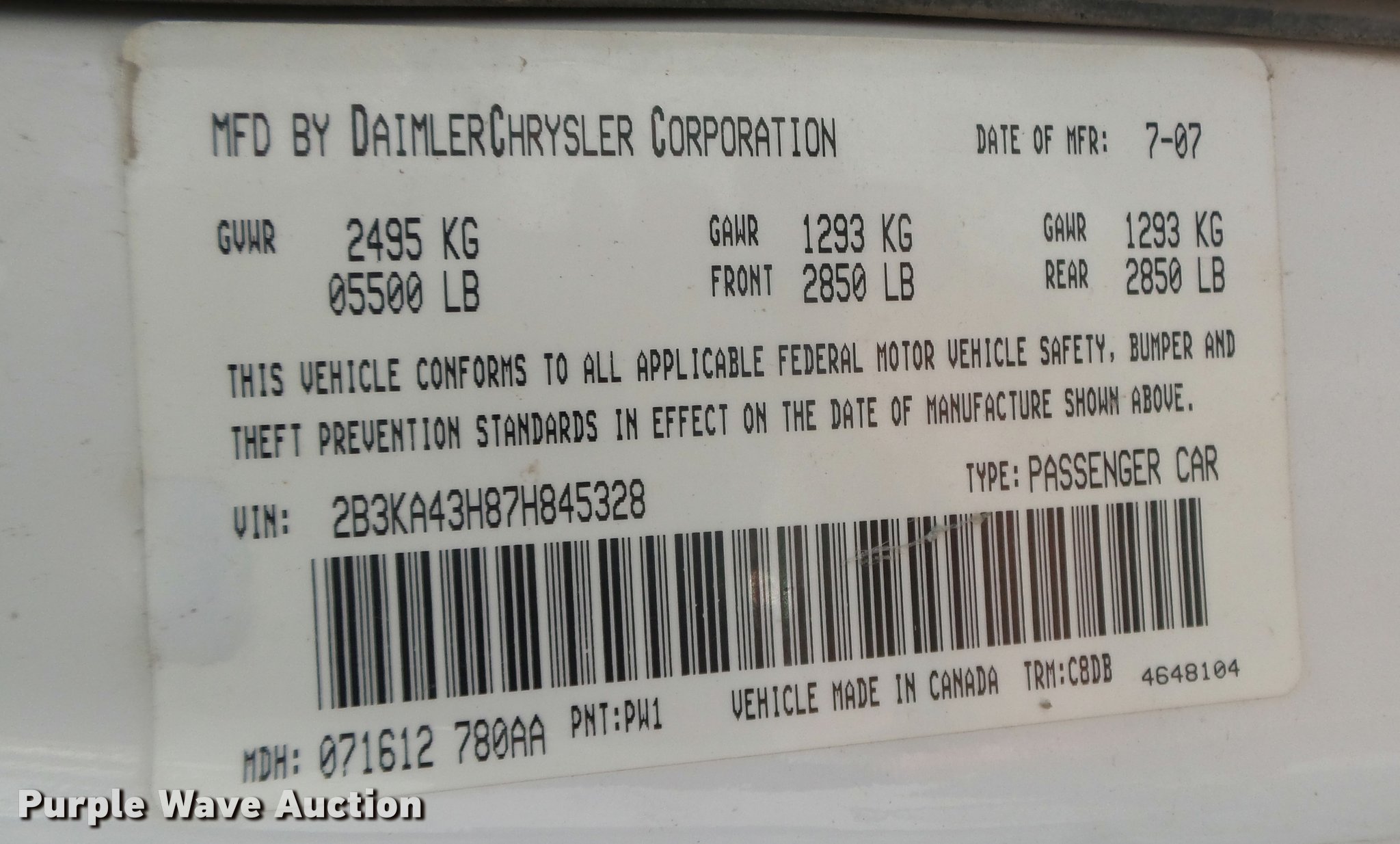 Purple Wave is selling a used Passenger Vehicle in Nebraska. This item is a 2007 Dodge Charger with the following: 197,248 miles on odometer, 5.7L V8 OHV 16V gas engine, Automatic transmission, AC and heat, Tilt, Cruise, AM/FM/CD, Power windows, lock, and mirrors, Cloth interior, Receiver hitch, Mudflaps, P225/60R18 tires, No center console