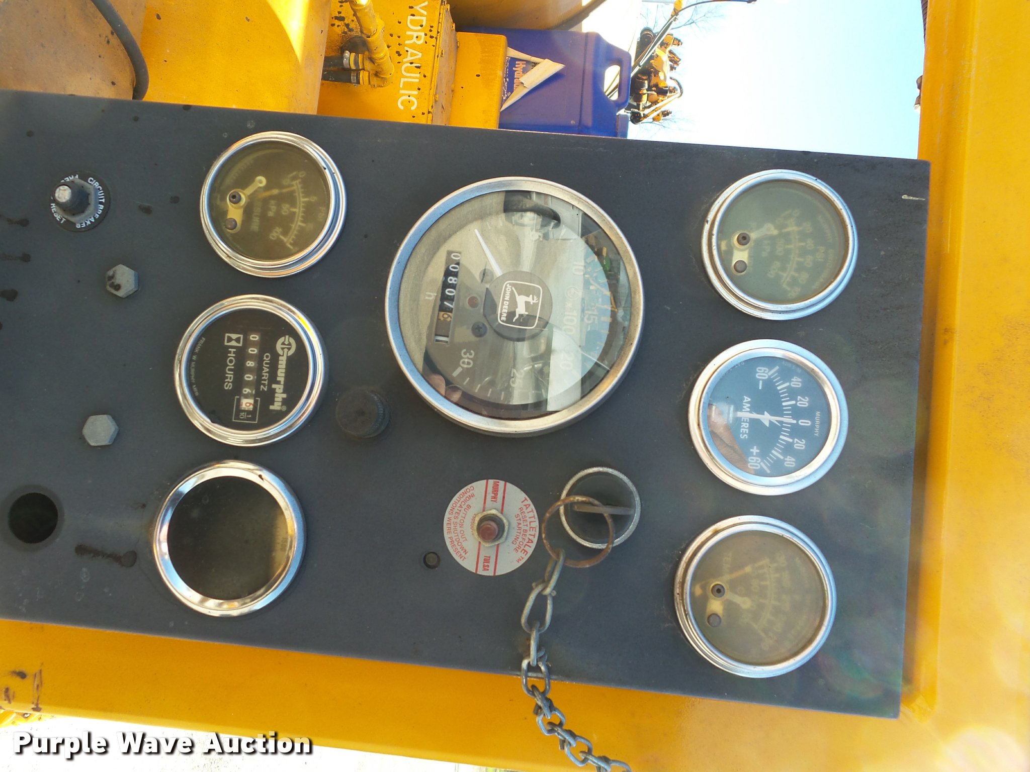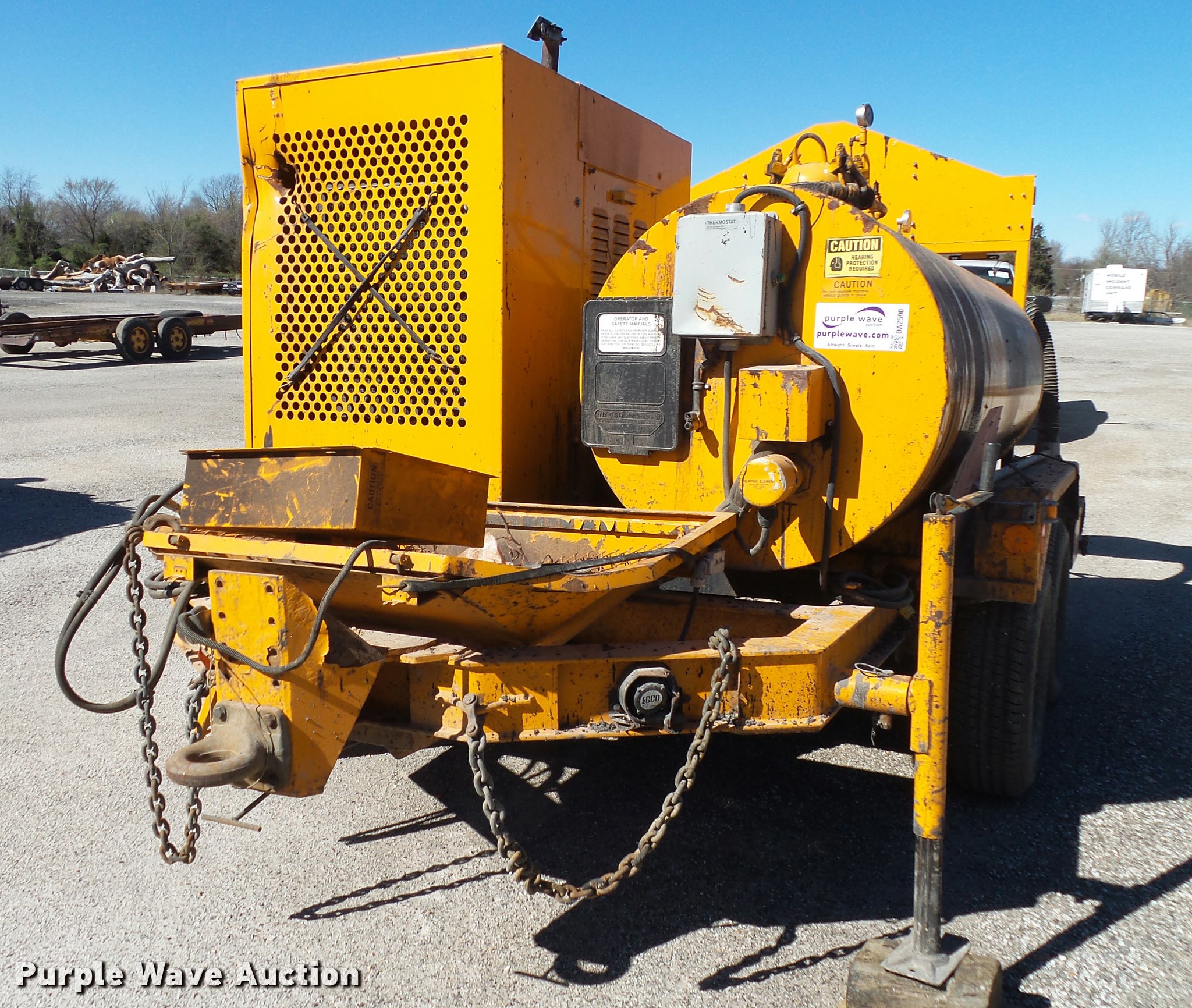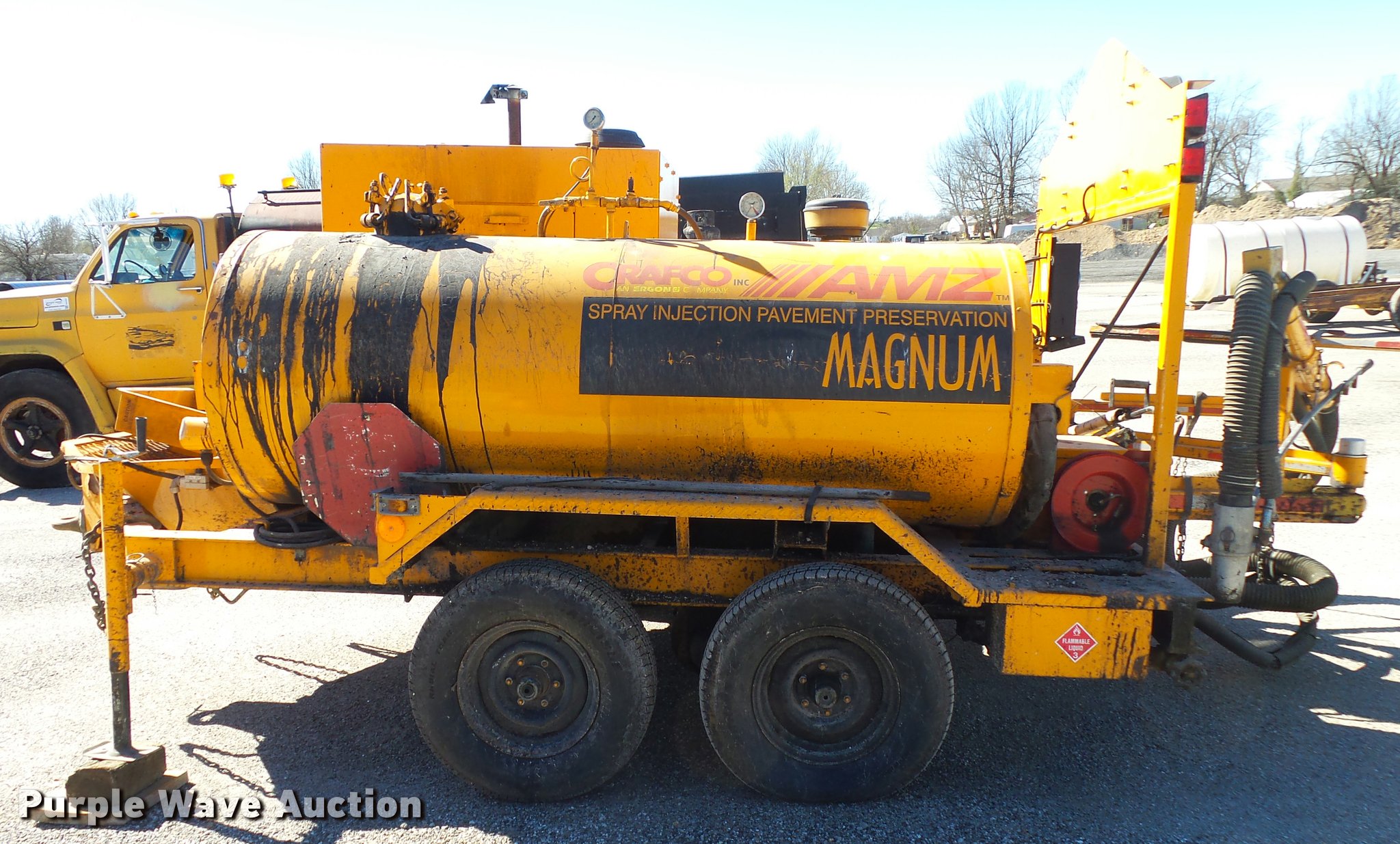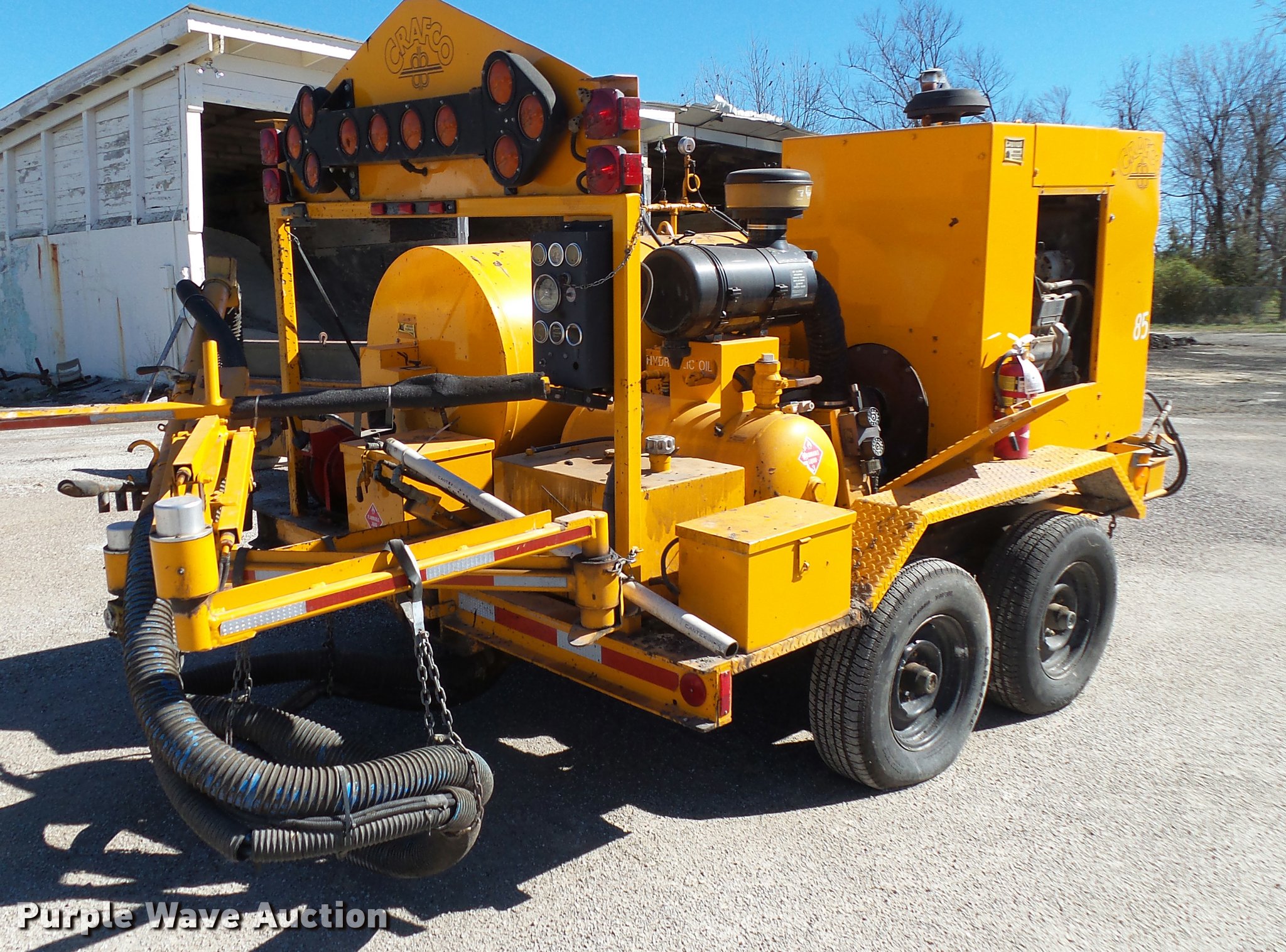 Purple Wave is selling a used Pot Hole Patcher in Missouri. This item is a Crafco spray injection pot hole patcher with the following: 807 hours on meter, John Deere AMZ Magnum 4.5L diesel engine, Electric burner, Hose reel, Wand, Pintle hitch, Torsion axles, Electric brakes, ST225/75R15 tires, GAWR 9,200 lbs, Truck tailgate included, 88"W x 35"H