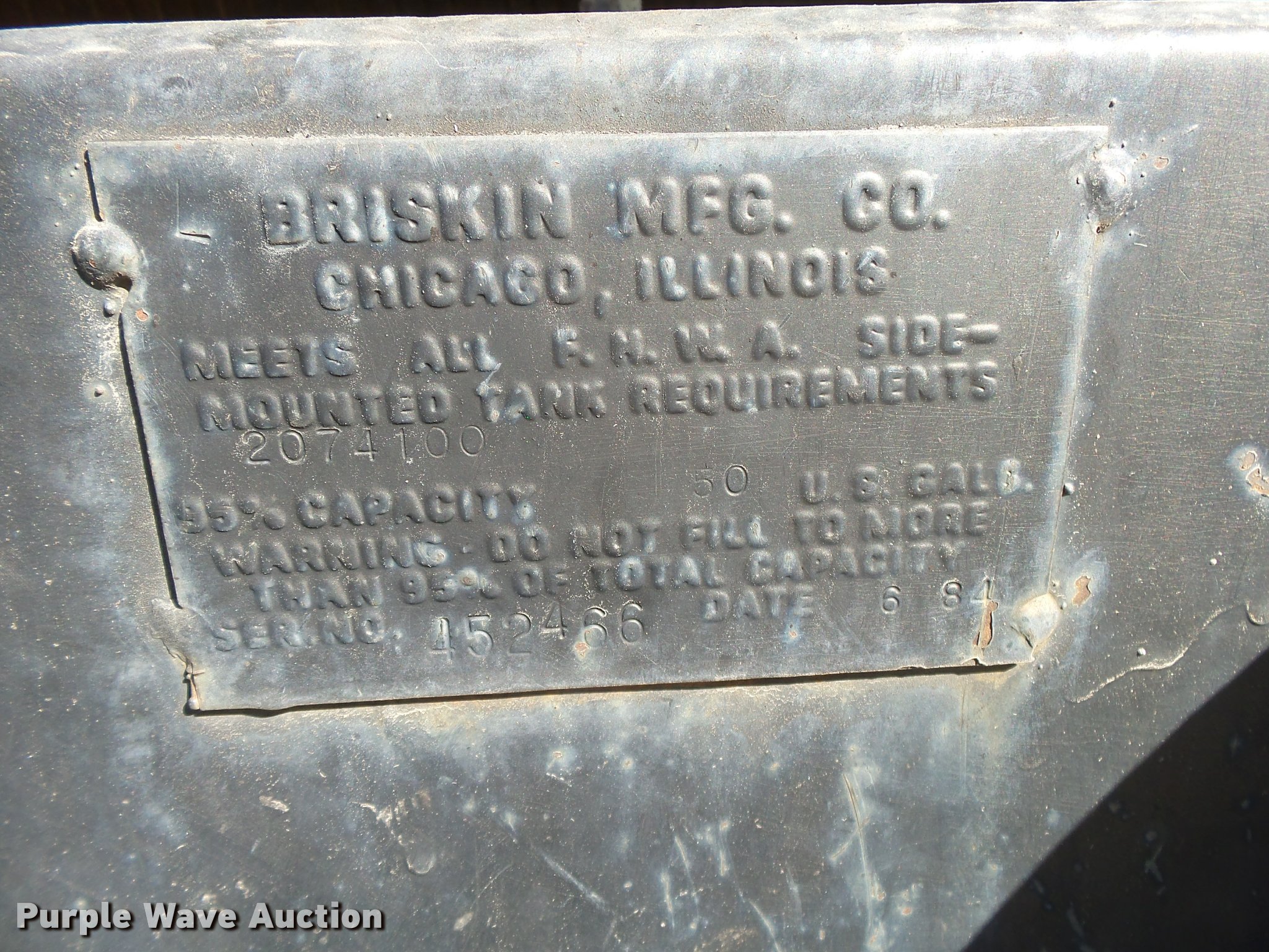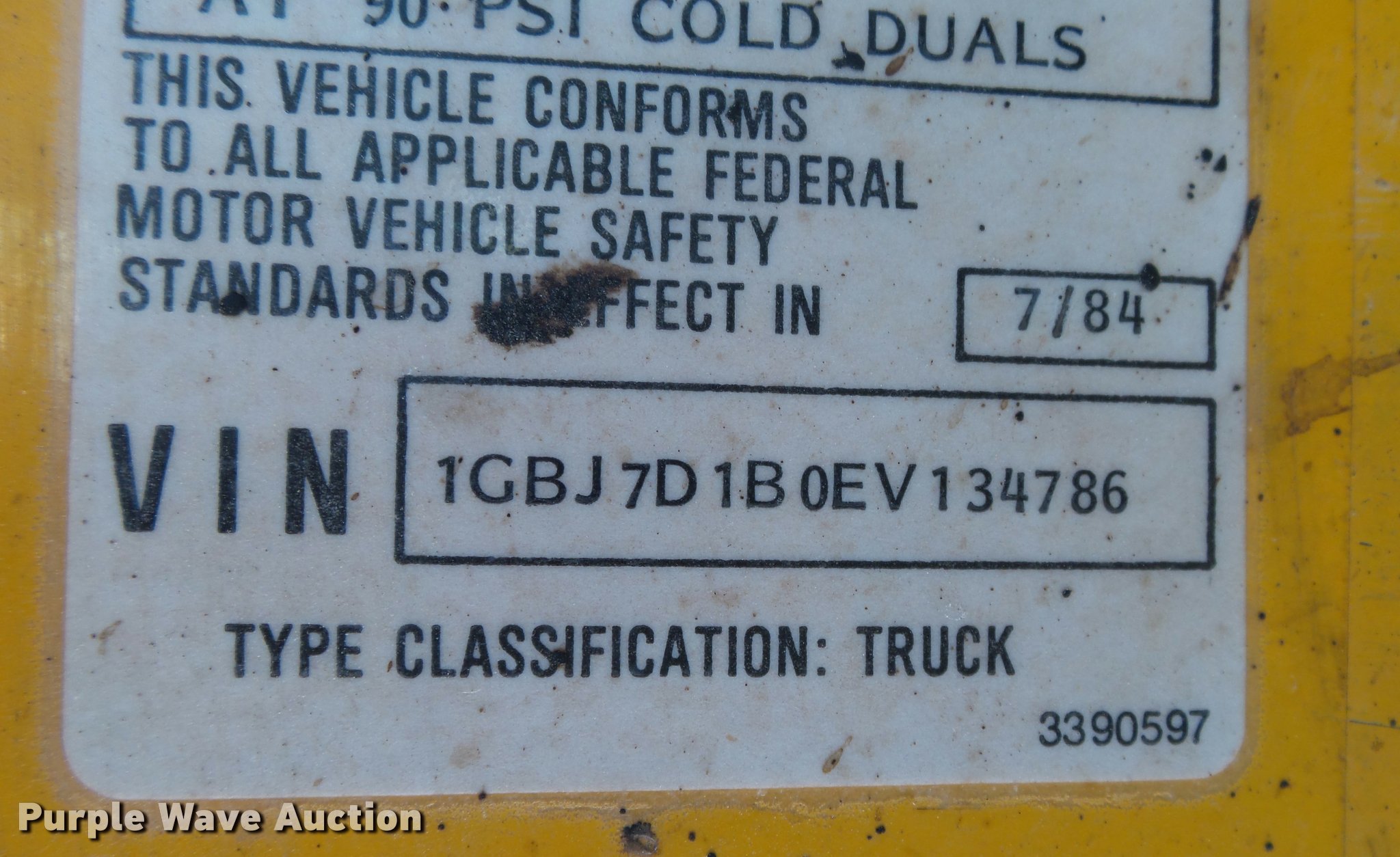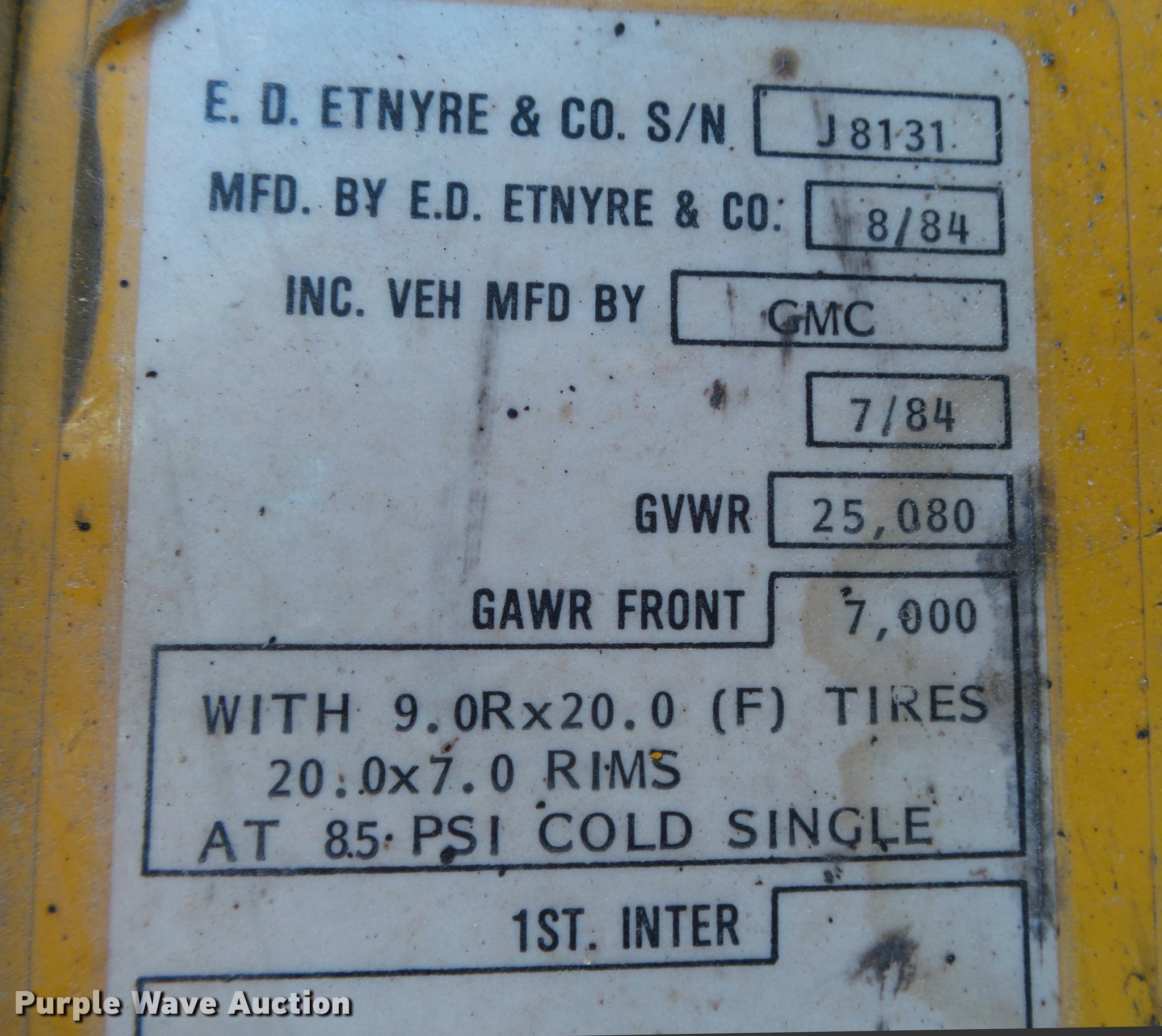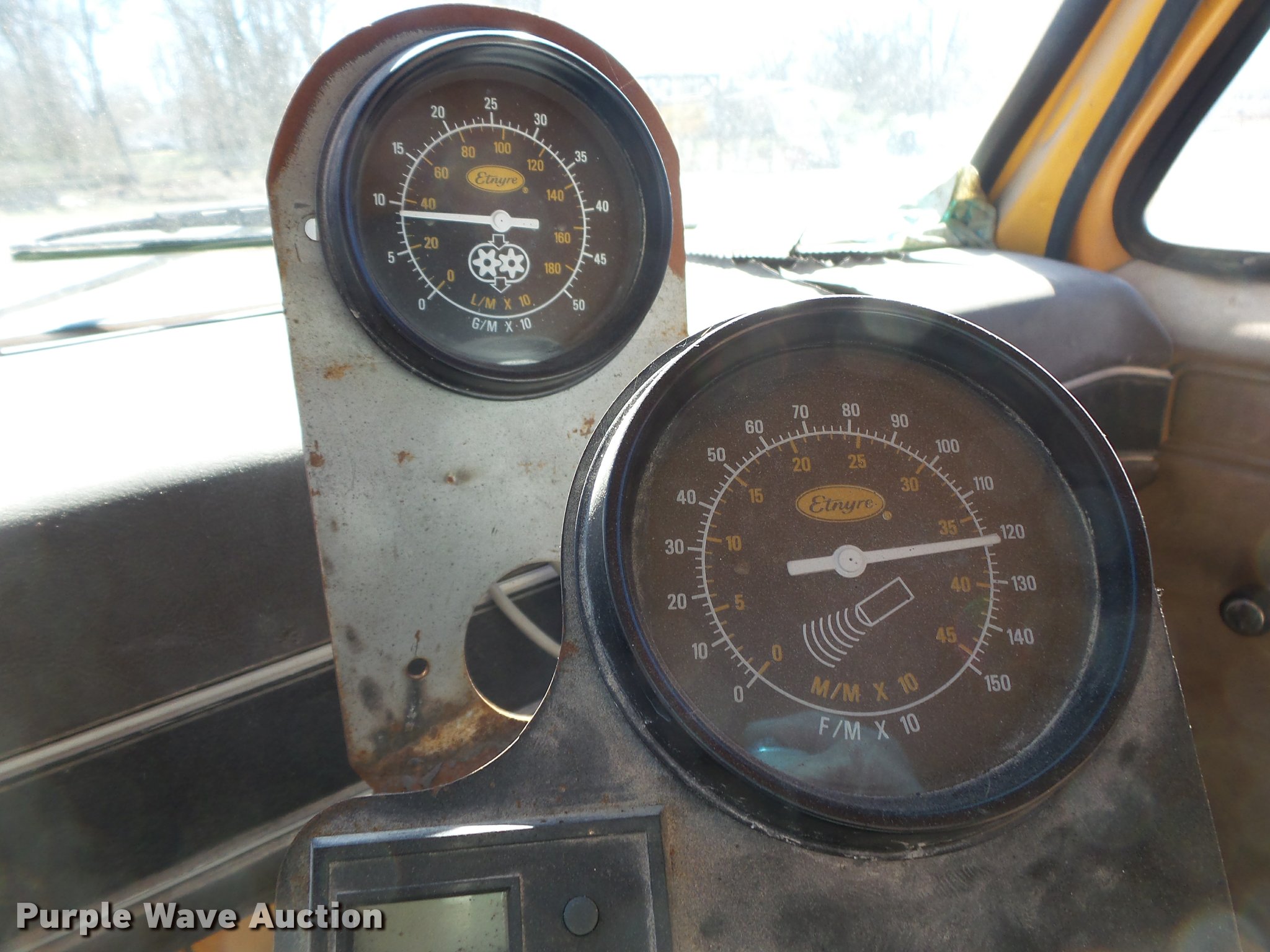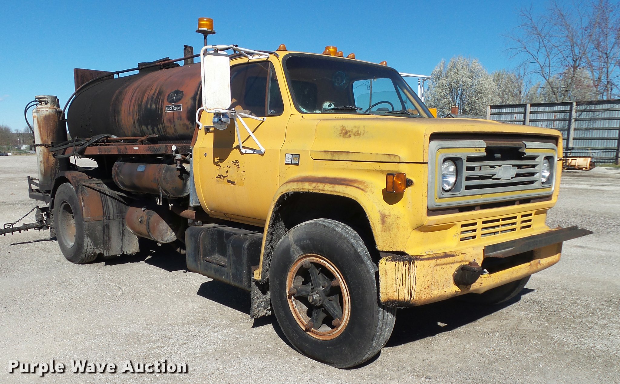 Purple Wave is selling a used Oil Distributor Truck in Missouri. This item is a 1984 Chevrolet Kodiak oil distributor truck with the following: 83,656 miles on odometer, 3,461 hours on meter, 6.0L V8 gas engine, 10 speed manual transmission, Single axle, Heat, Spring suspension seat, PTO, Etnyre BX-HS oil distribution tank, 1,086 gallon capacity, Propane burner, (2) propane tanks, In-cab controls, Spray wand, 120"W spray boom, 30 nozzles, Single fuel tank, Spring suspension, Hydraulic brakes, 9.00-20 tires, Windshield cracked, Brake issue