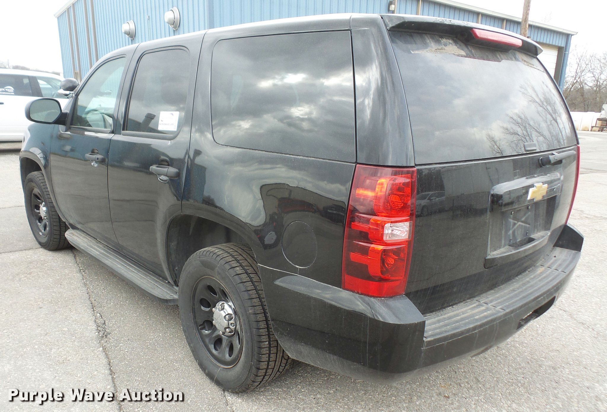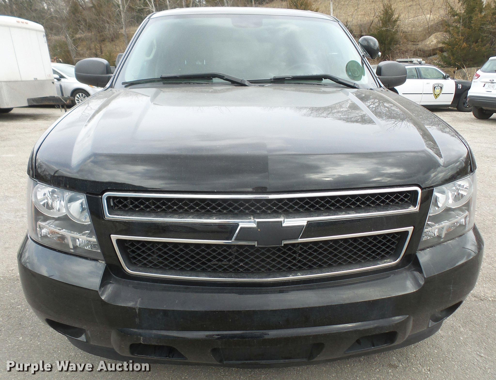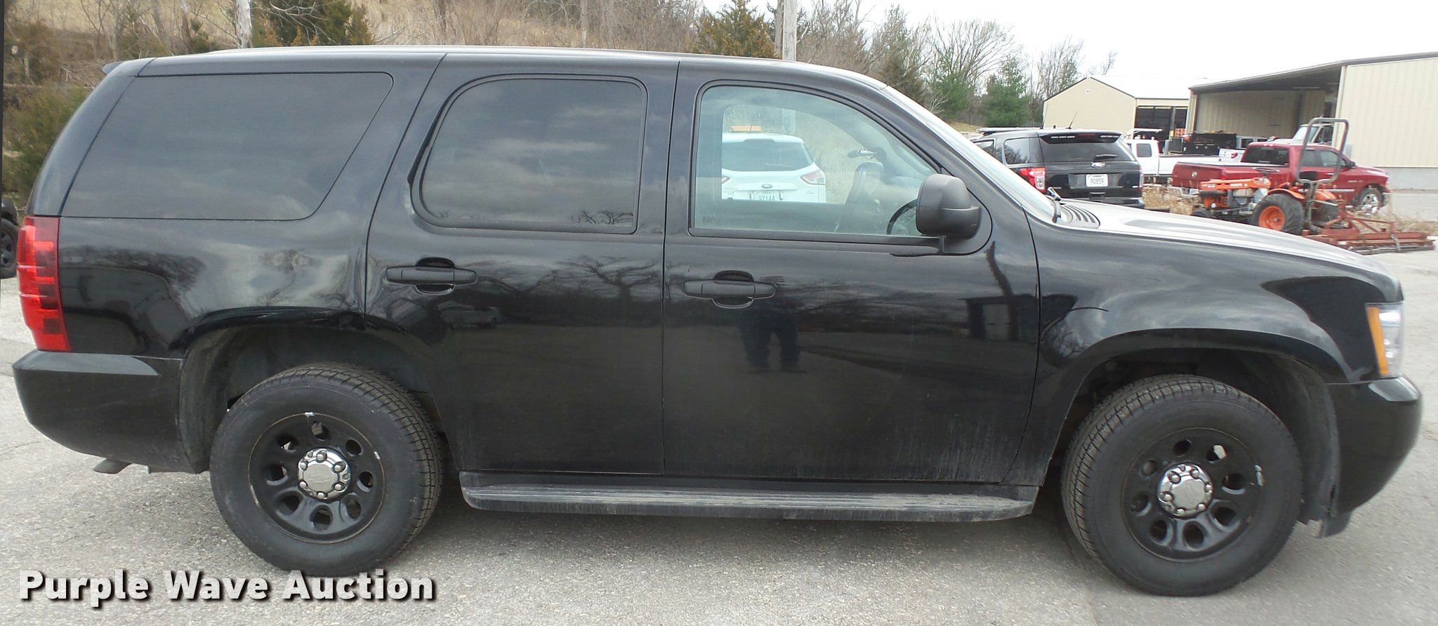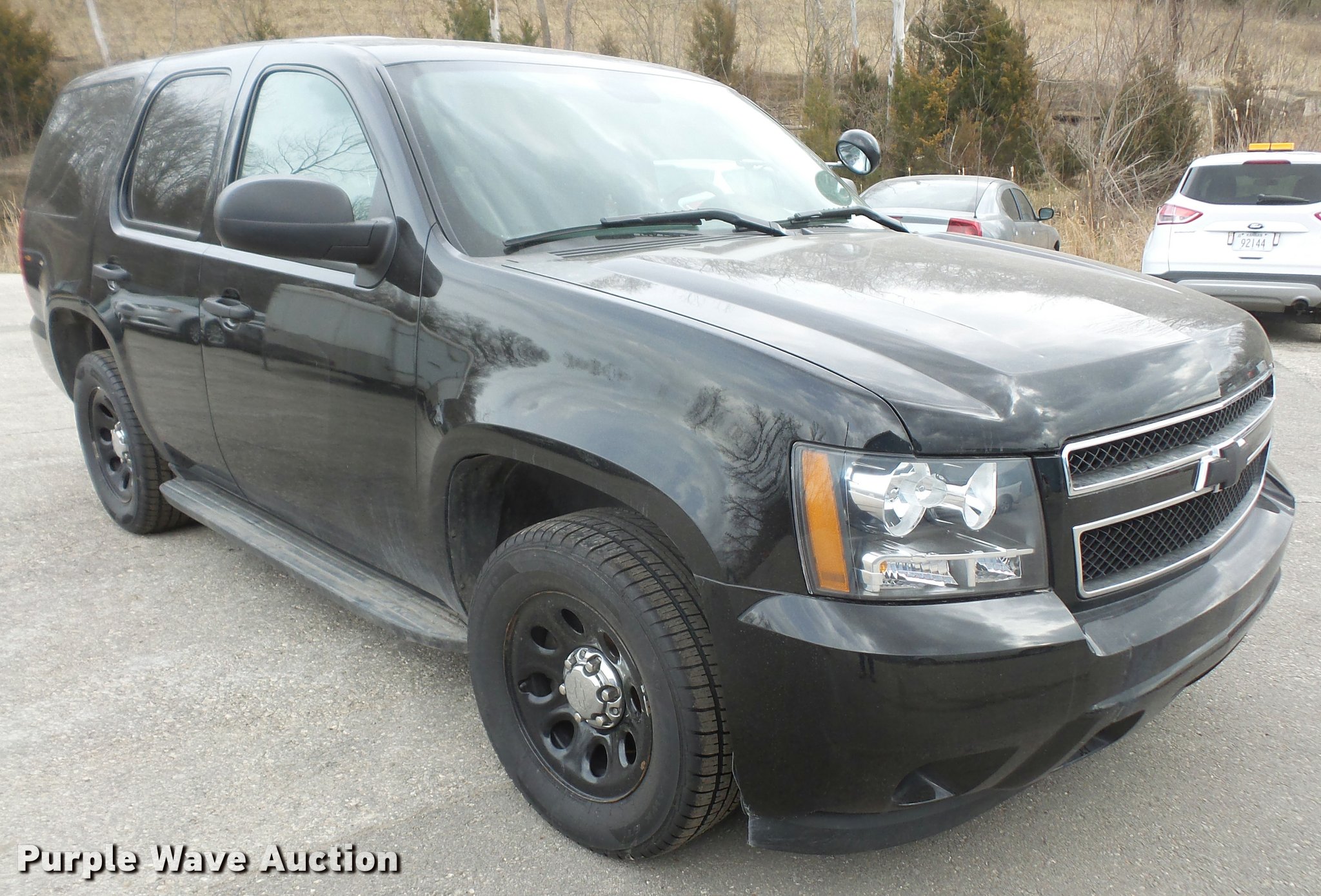 Purple Wave is selling a used Passenger Vehicle in Kansas. This item is a 2013 Chevrolet Tahoe Police SUV with the following: 164,648 miles on odometer, 5.3L V8 OHV 16V FFV gas engine, Automatic transmission, AC and heat, Tilt, Cruise, AM/FM/CD, Power windows, locks, mirrors, and seat, Cloth interior, Spotlight, 265/60R17 tires, Equipment holes, Display is dim and hard to read