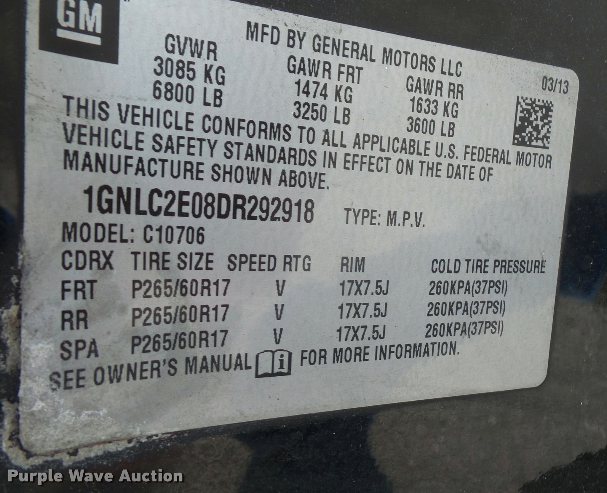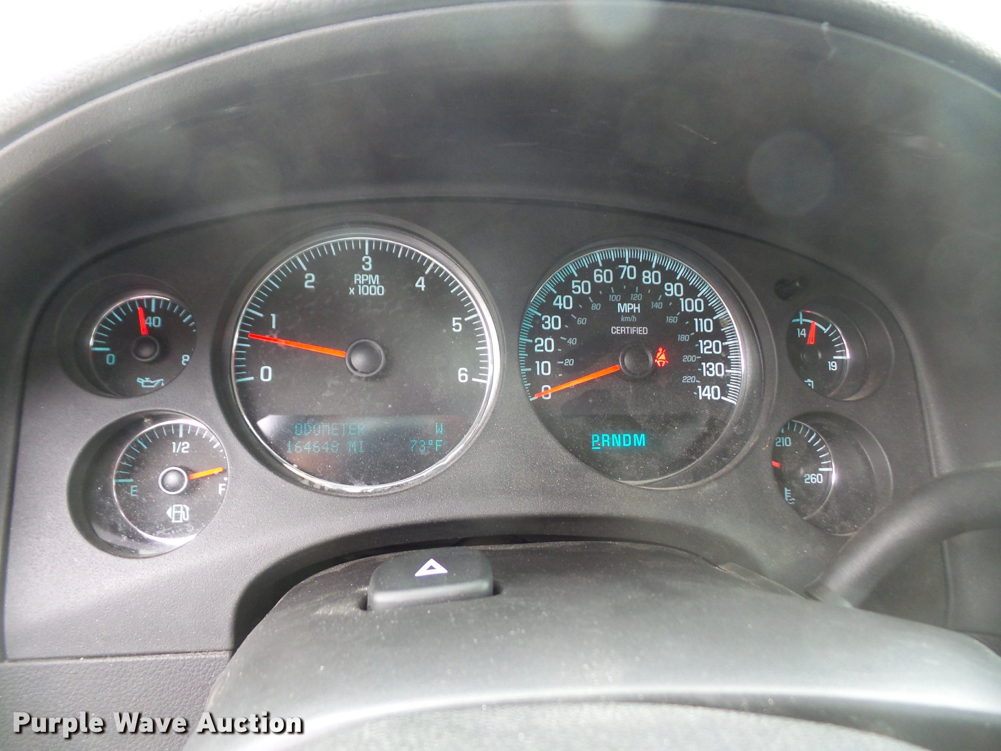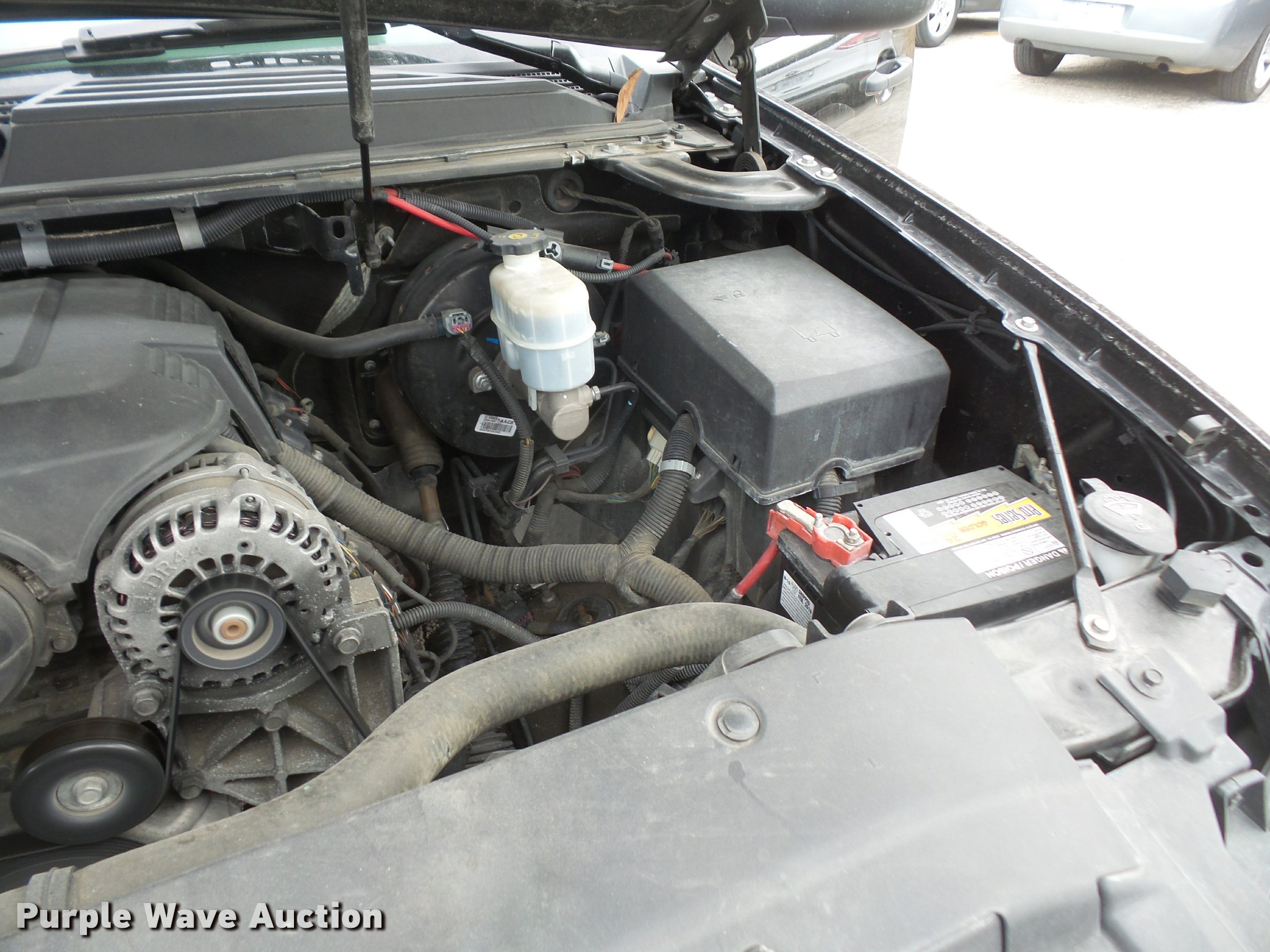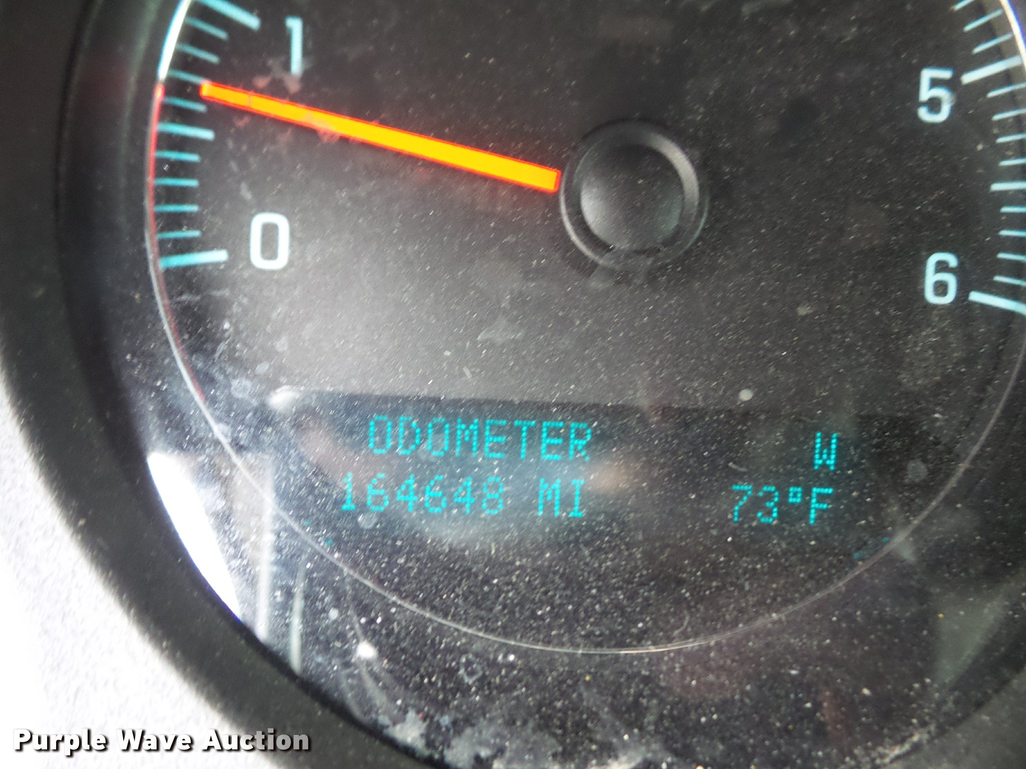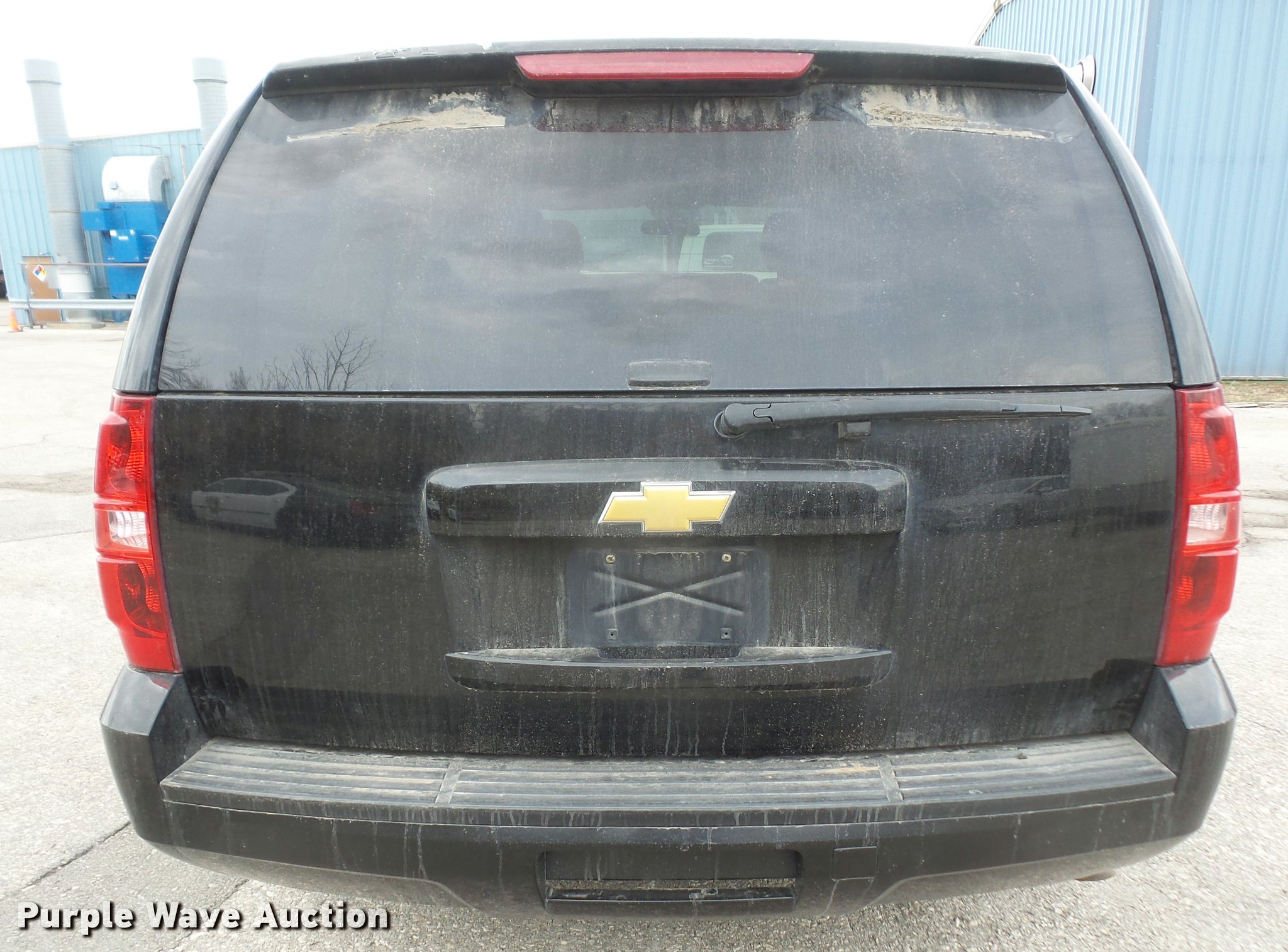 Purple Wave is selling a used Passenger Vehicle in Kansas. This item is a 2013 Chevrolet Tahoe Police SUV with the following: 164,648 miles on odometer, 5.3L V8 OHV 16V FFV gas engine, Automatic transmission, AC and heat, Tilt, Cruise, AM/FM/CD, Power windows, locks, mirrors, and seat, Cloth interior, Spotlight, 265/60R17 tires, Equipment holes, Display is dim and hard to read