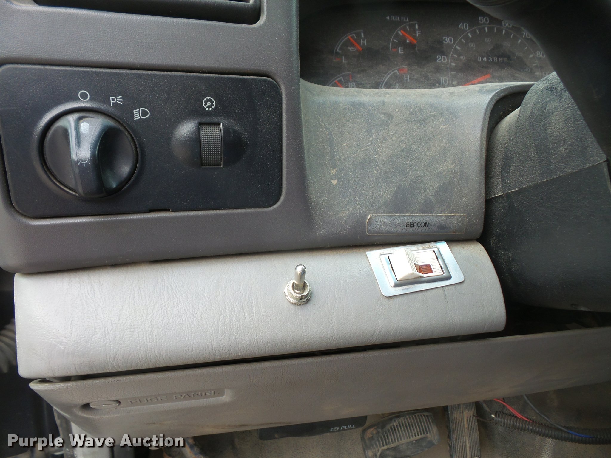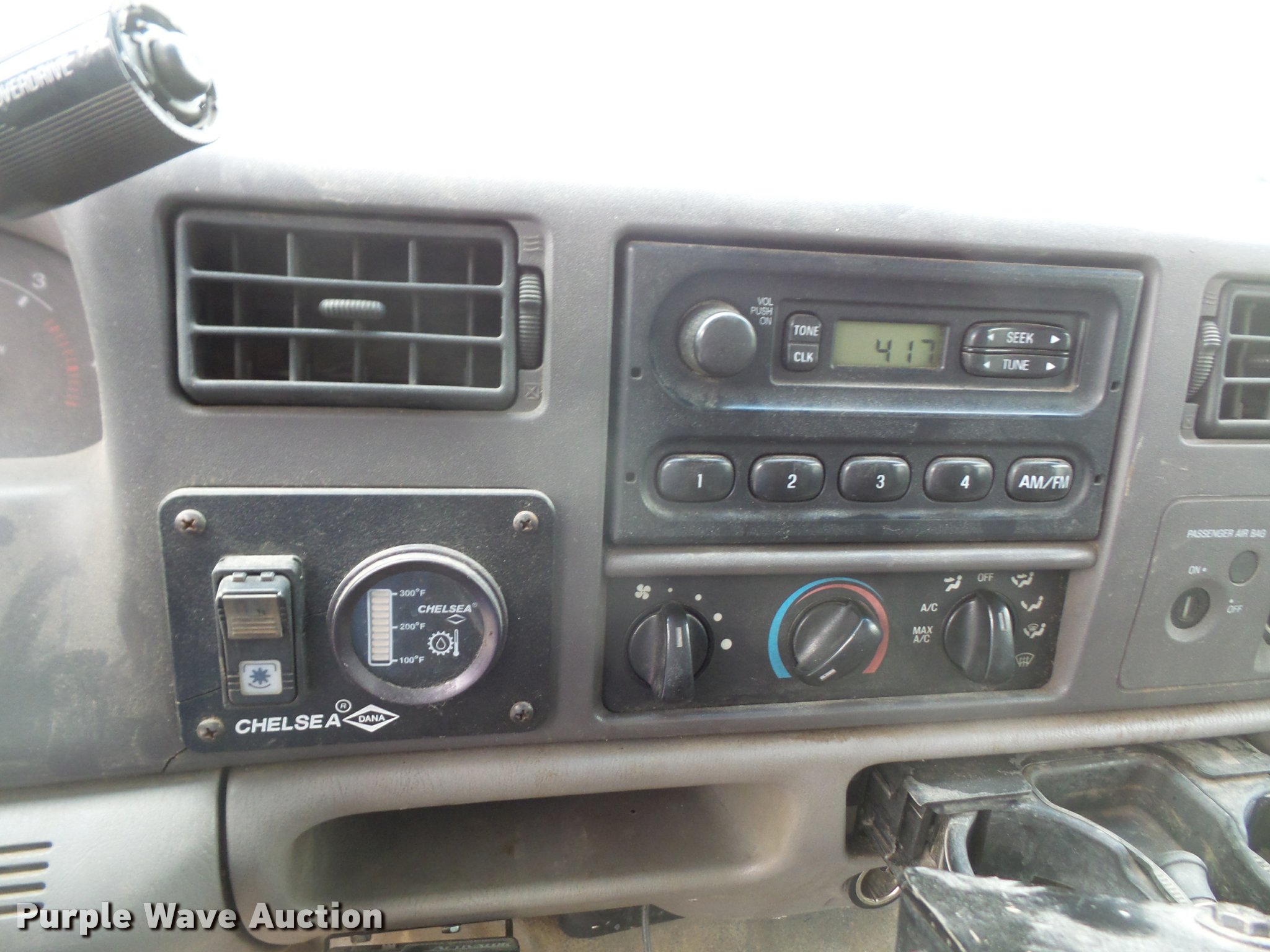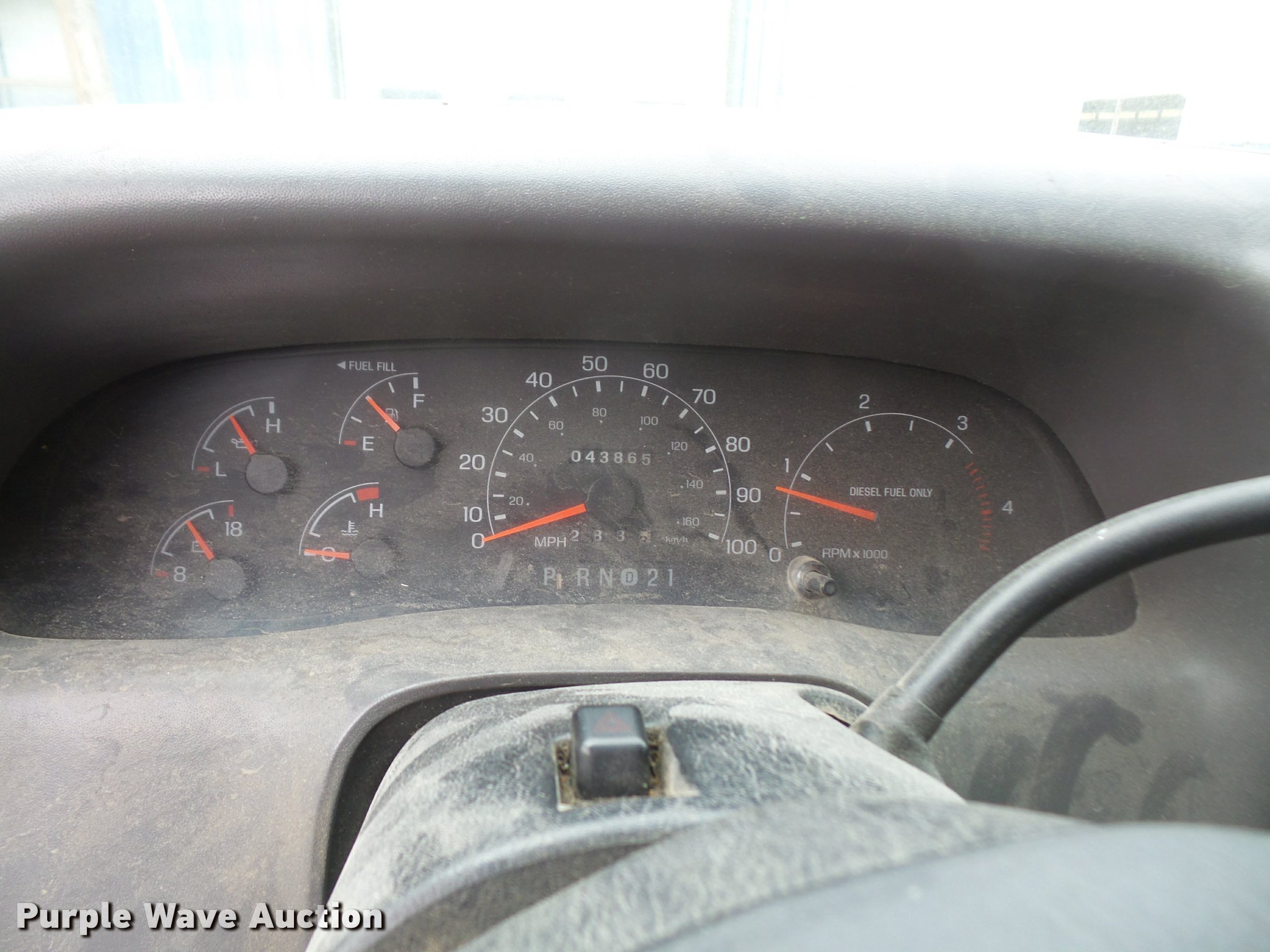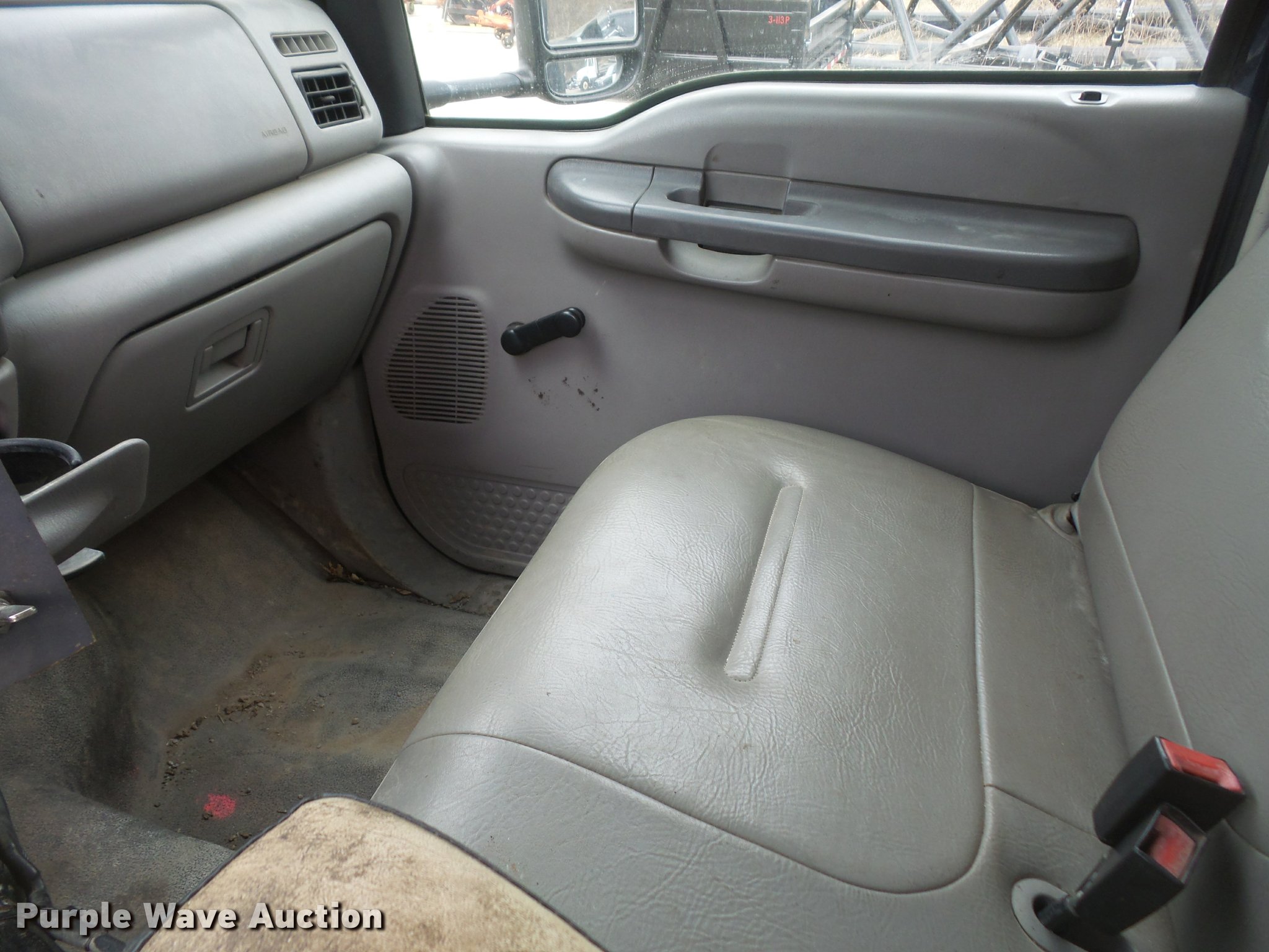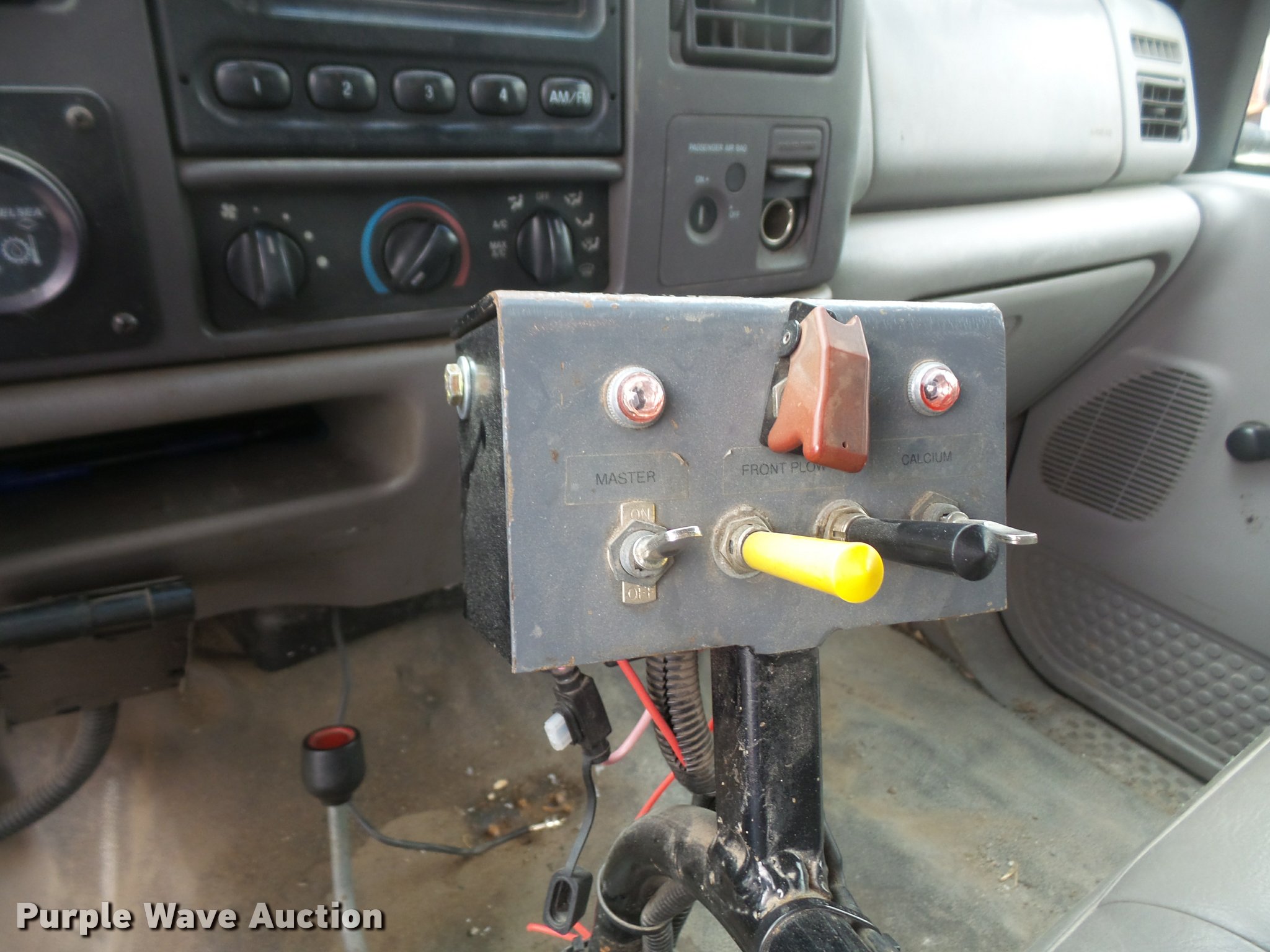 Purple Wave is selling a used Flat Bed Truck in Kansas. This item is a 2001 Ford F450 Super Duty flatbed truck with the following: 43,865 miles on odometer, 7.3L V8 OHV 16V diesel engine, Automatic transmission, AC and heat, AM/FM, Manual windows and locks, Vinyl interior, PTO, 9'L x 96"W flatbed, Toolbox, Meyers snow plow, 8.5'W, FPI fiberglass spreader, Model FSC85-A, Hydraulic driven, Receiver hitch, On-spot chains, 225/70R19.5 tires