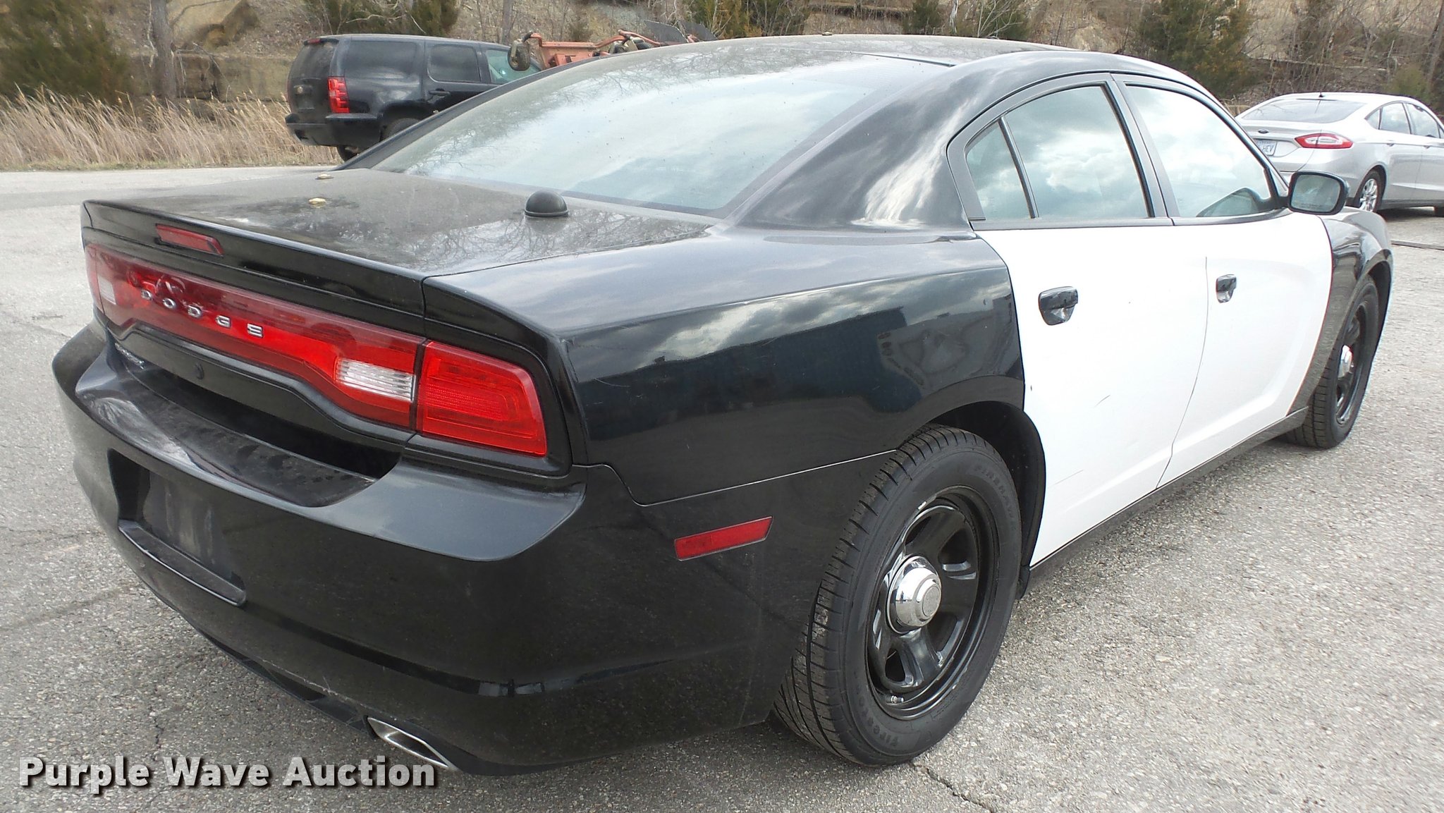 Purple Wave is selling a used Passenger Vehicle in Kansas. This item is a 2012 Dodge Charger Police with the following: 120,131 miles on odometer, 5.7L V8 OHV 16V gas engine, Automatic transmission, AC and heat, Tilt, Cruise, AM/FM, Power windows, locks, mirrors, and seat, Cloth interior, Spotlight, Grill guard, 225/60R18 tires, Equipment holes
