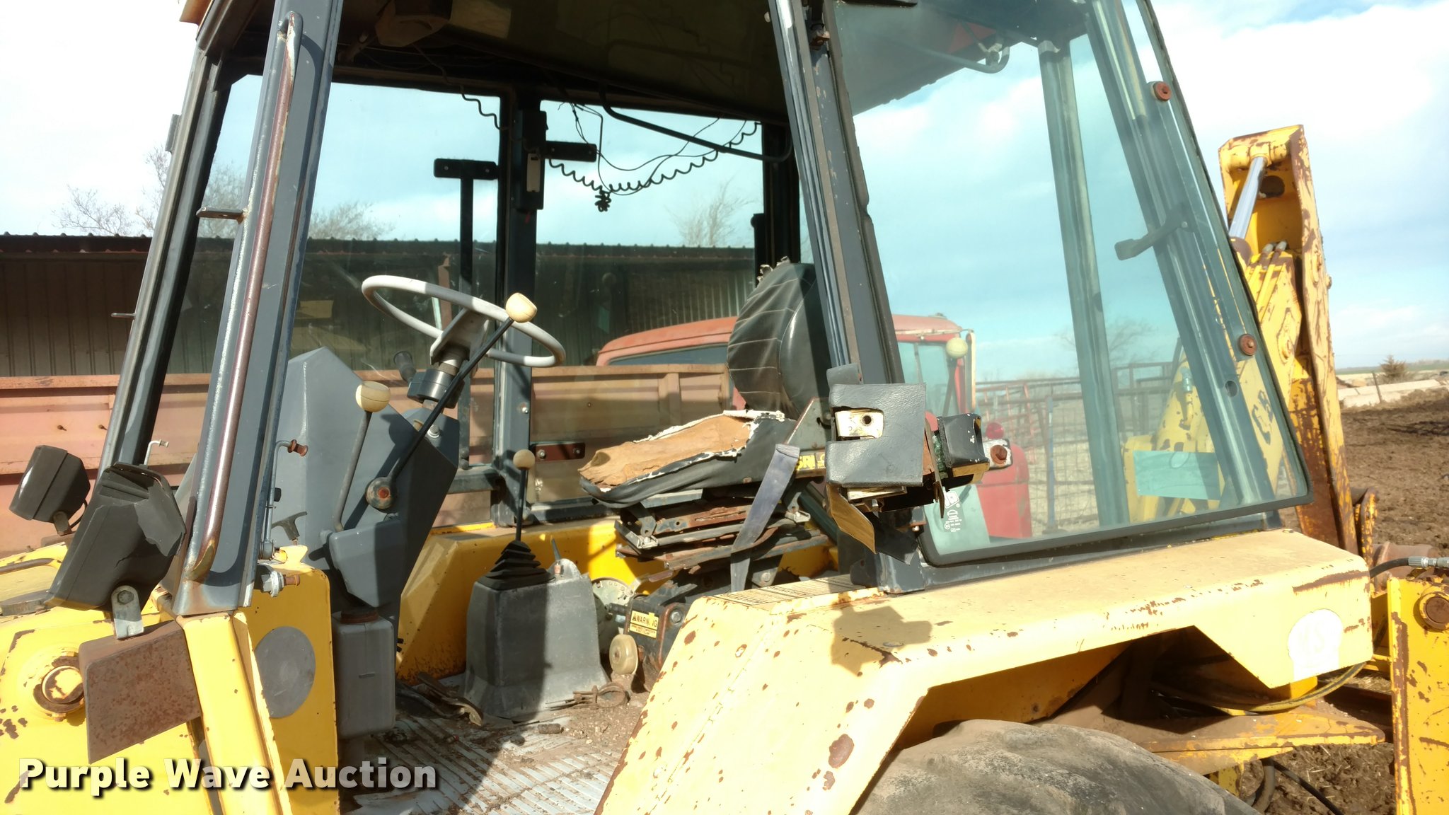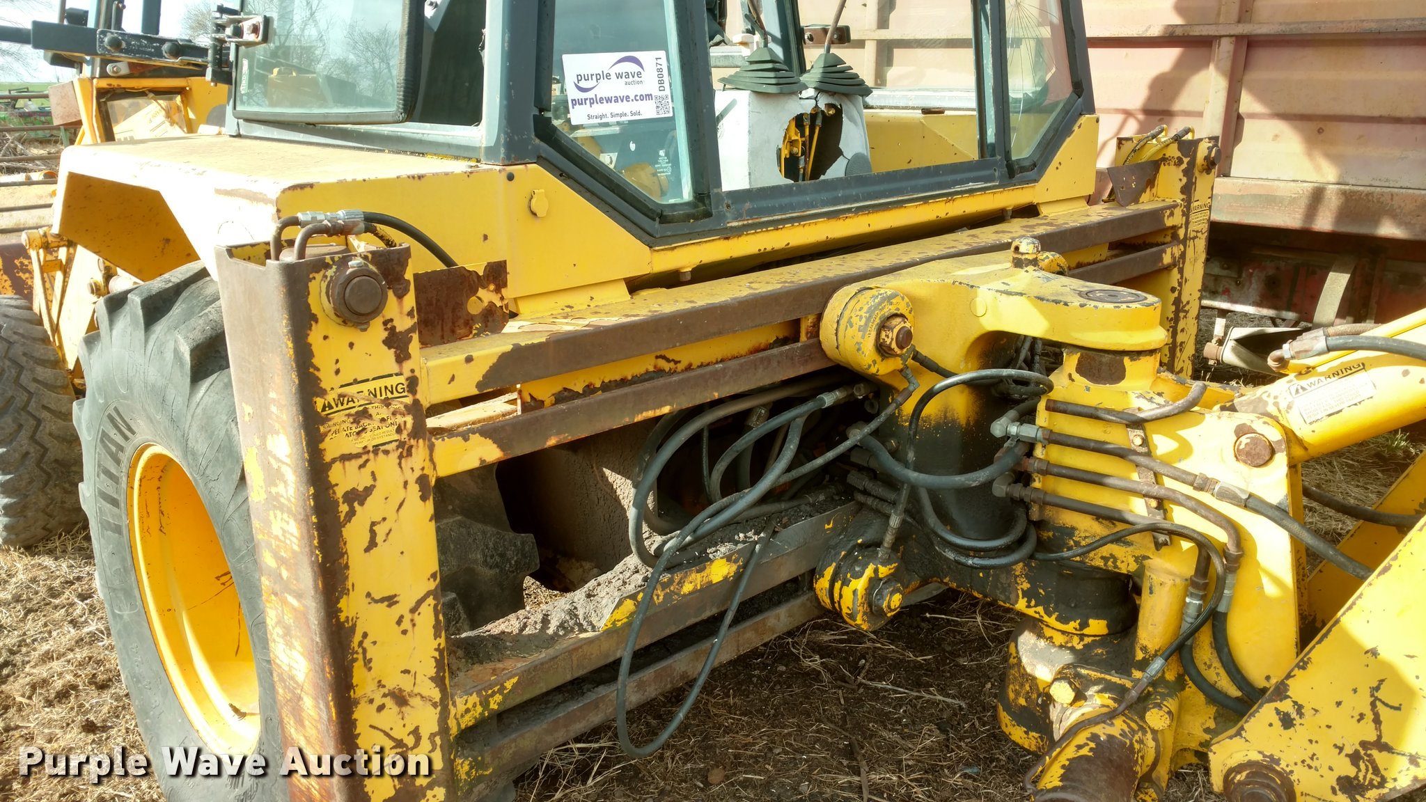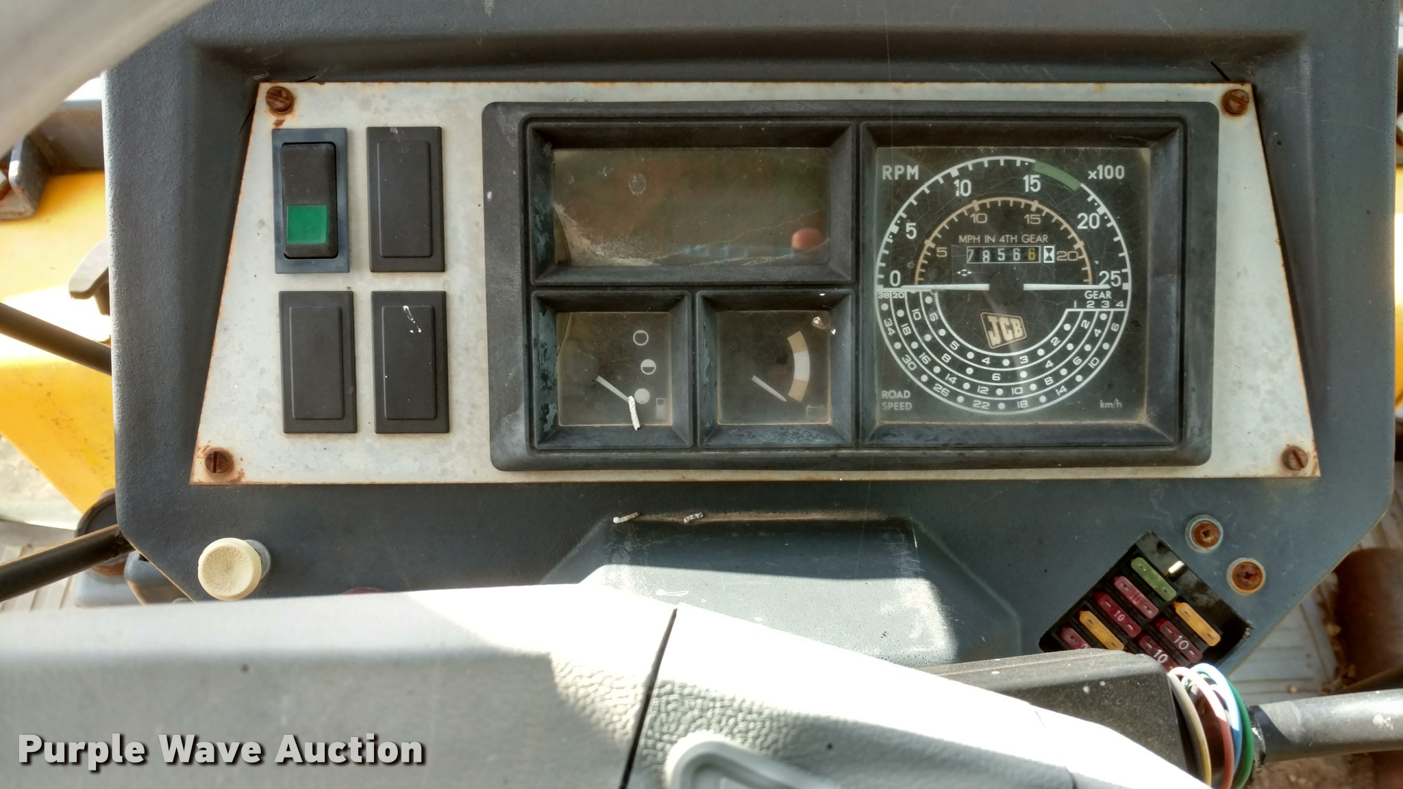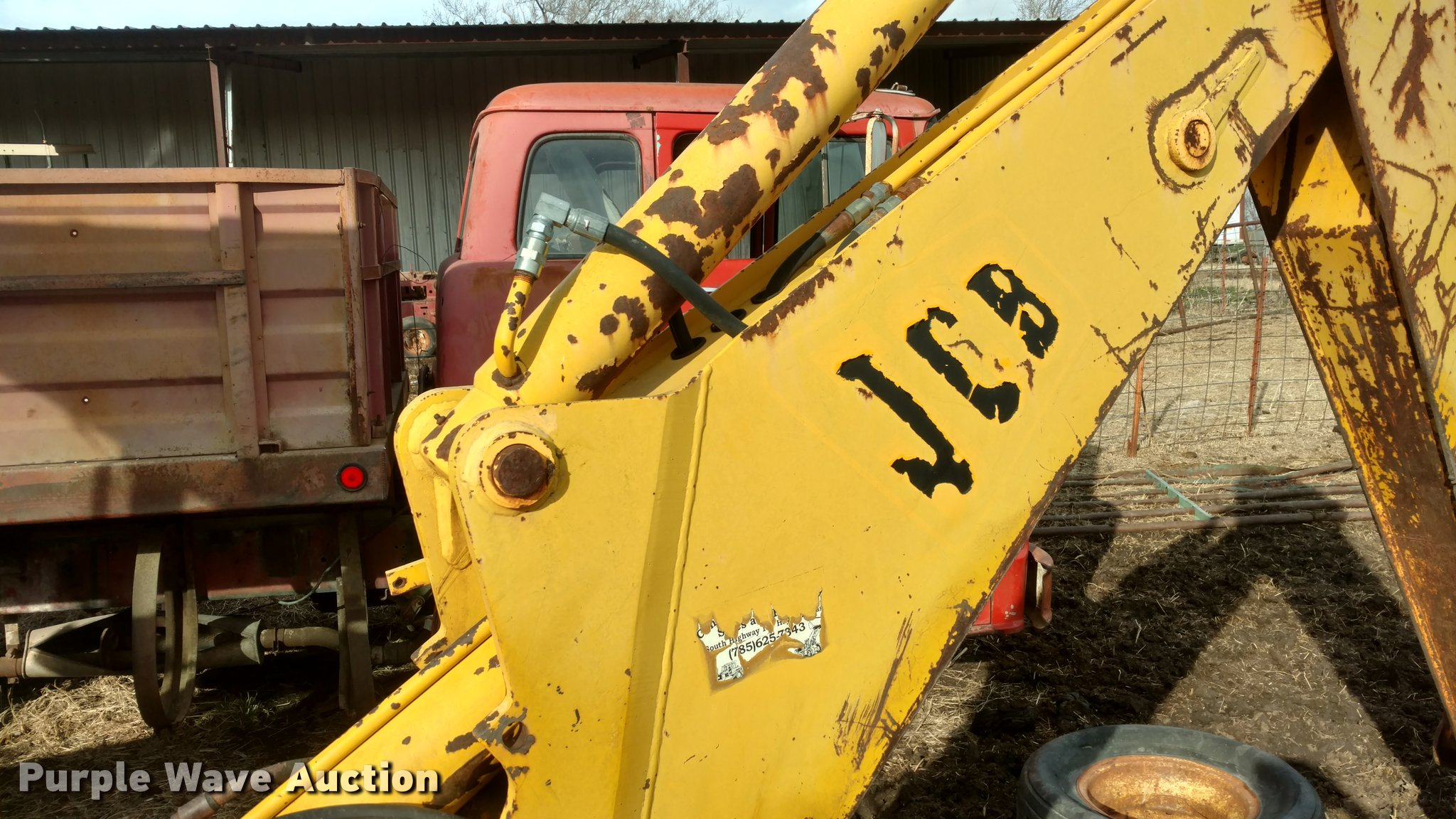 JCB 1400B backhoe. 7,856 hours on meter, Four cylinder turbo diesel engine, Shuttle shift transmission 4F gears, Four wheel drive, Enclosed cab Heat, Wobble stick backhoe controls, 96"W loader bucket, 24"W backhoe bucket Teeth, 14-7.5 front tires, 18.4-24 rear tires, Unit has sat for one year, Serial L-0012140M. Sumner Township. Mayfield, KS 67103