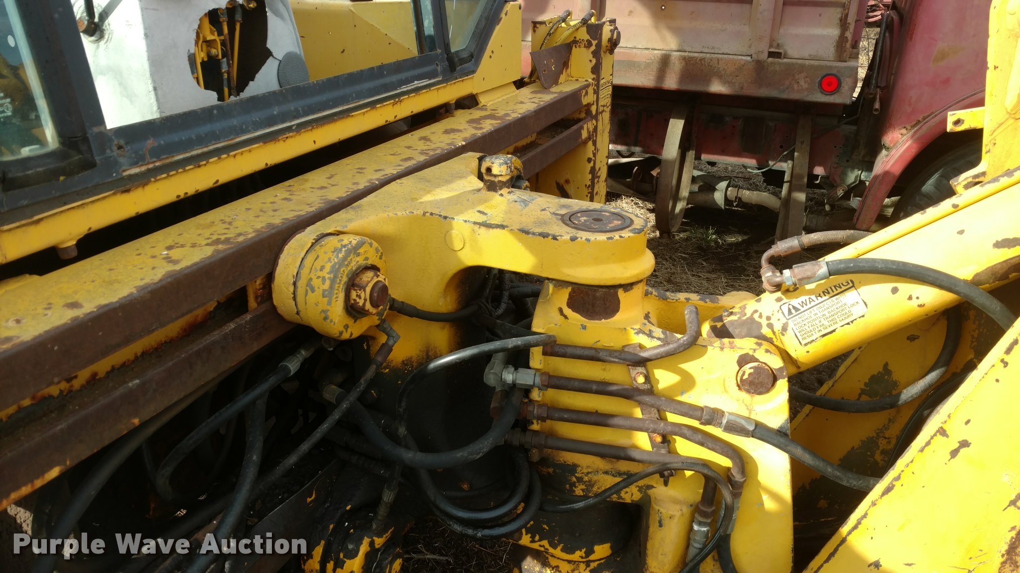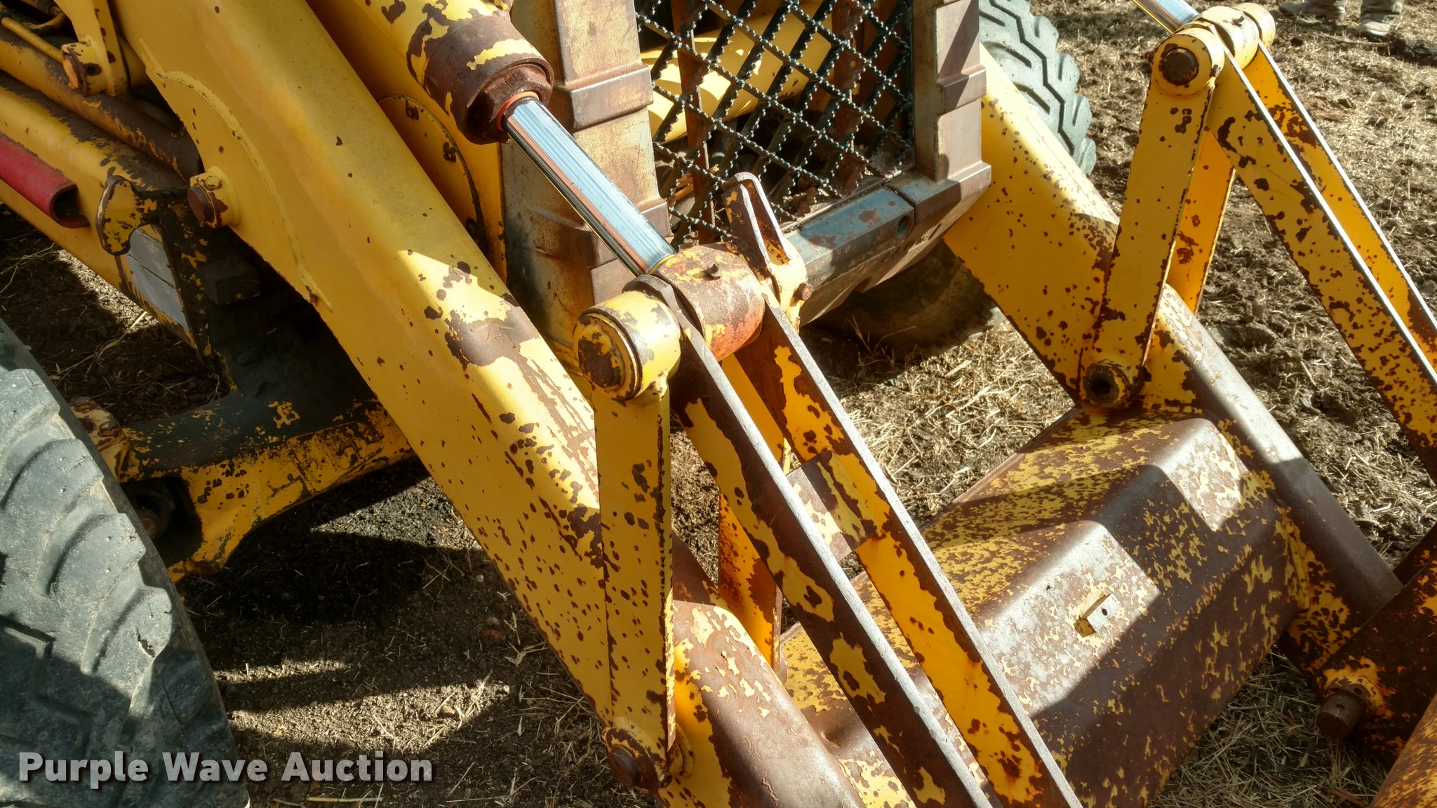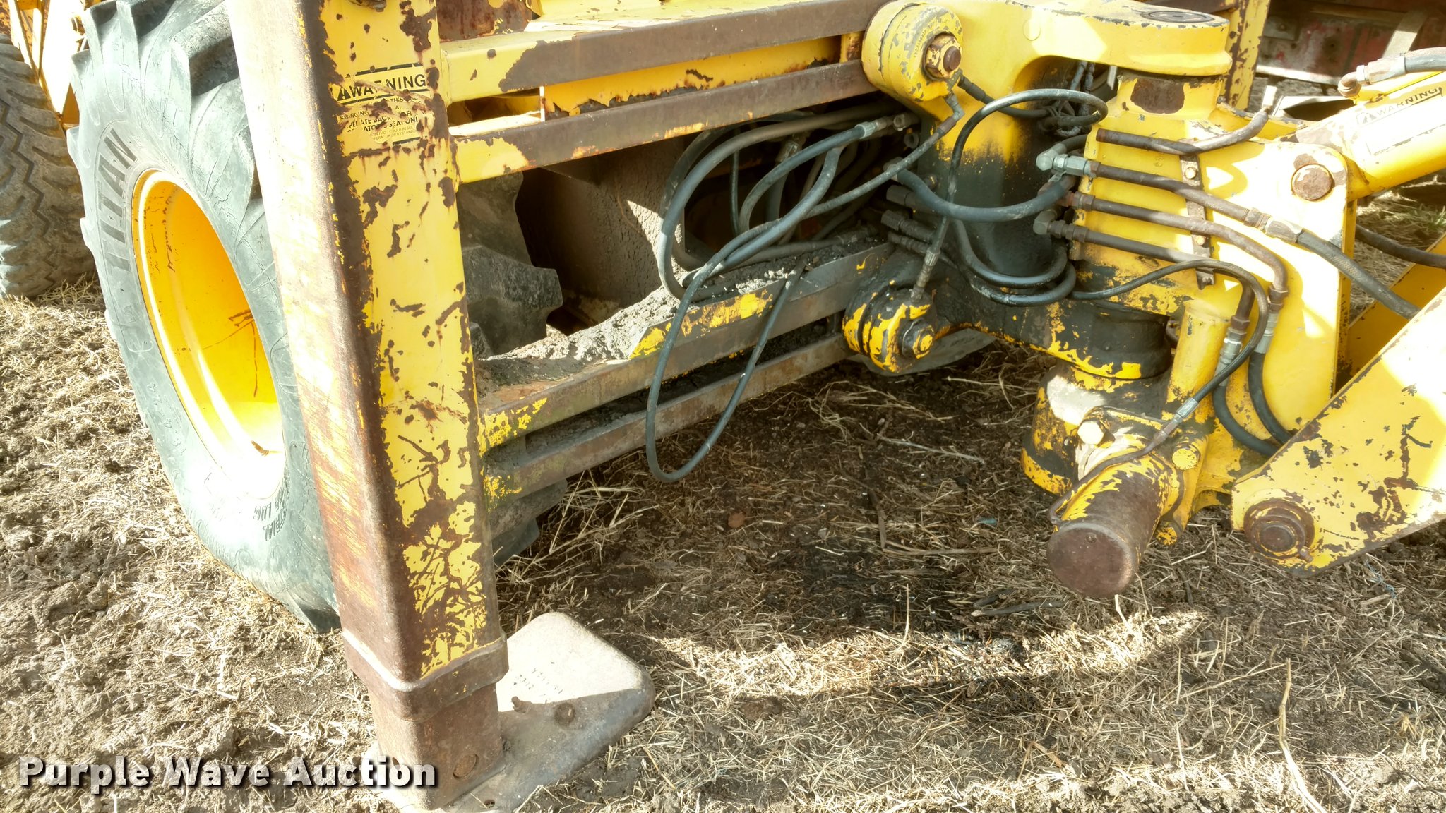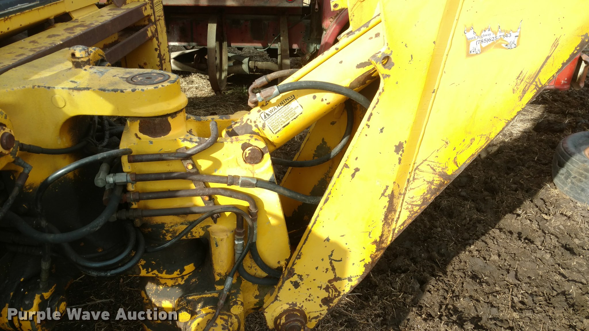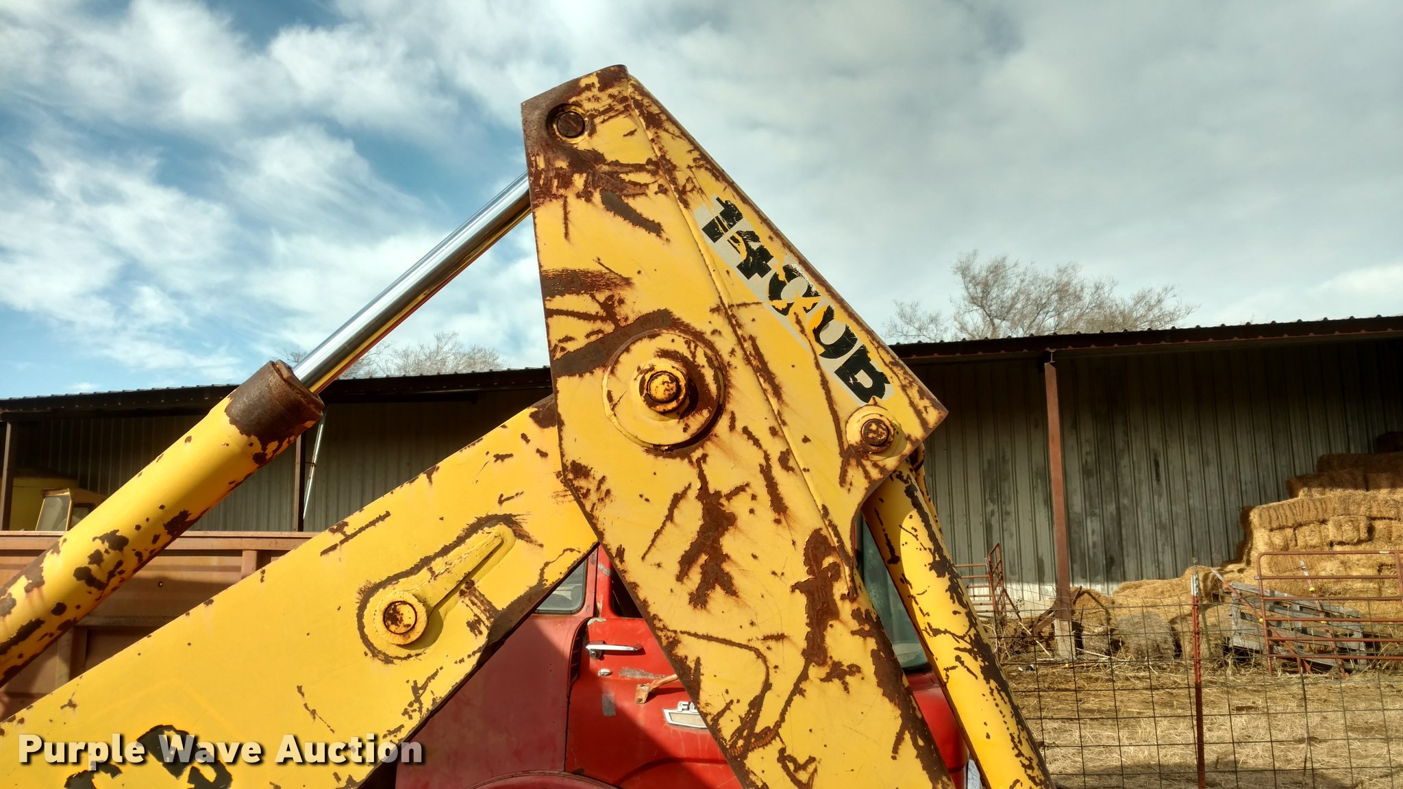JCB 1400B backhoe. 7,856 hours on meter, Four cylinder turbo diesel engine, Shuttle shift transmission 4F gears, Four wheel drive, Enclosed cab Heat, Wobble stick backhoe controls, 96"W loader bucket, 24"W backhoe bucket Teeth, 14-7.5 front tires, 18.4-24 rear tires, Unit has sat for one year, Serial L-0012140M. Sumner Township. Mayfield, KS 67103