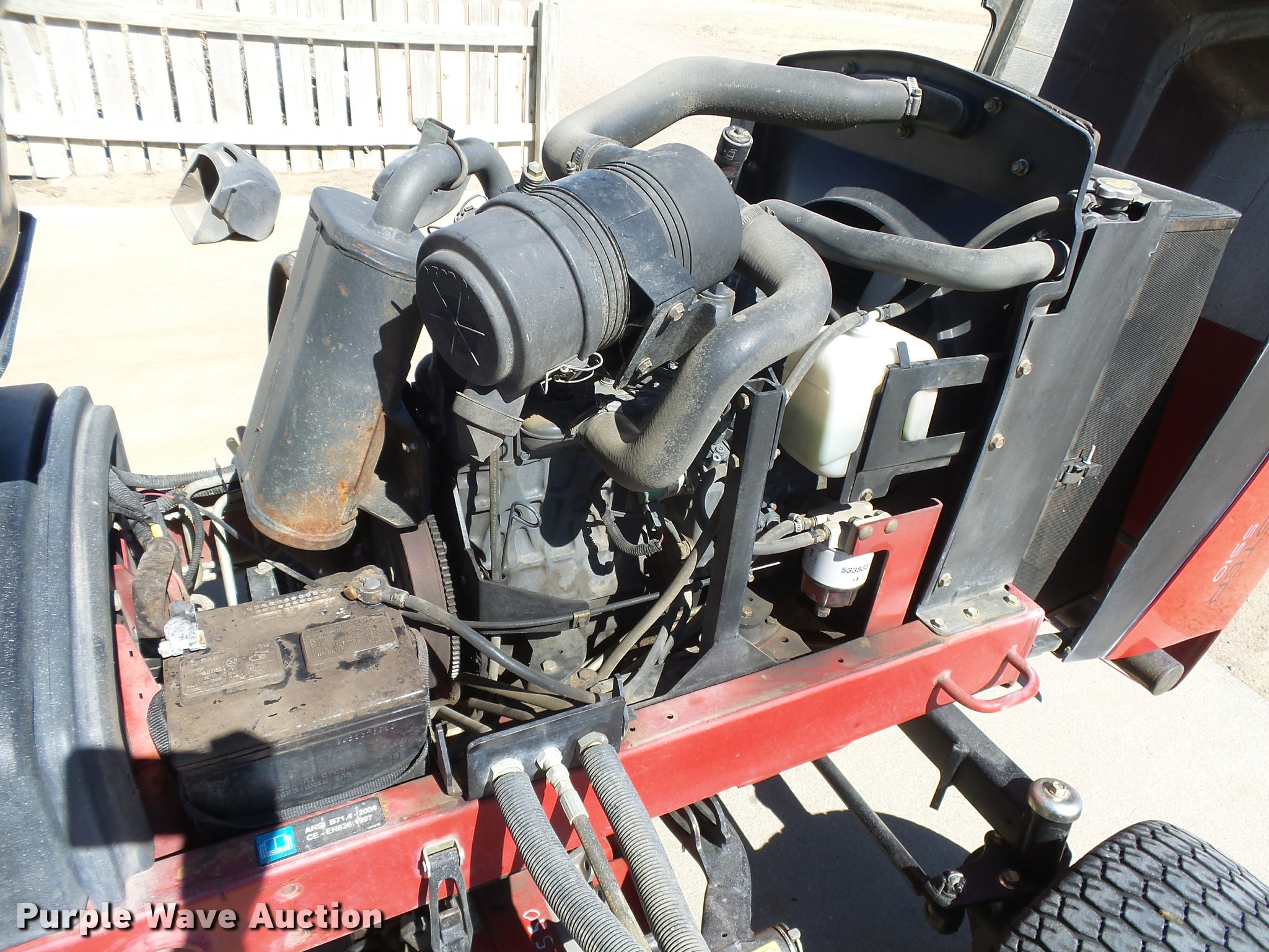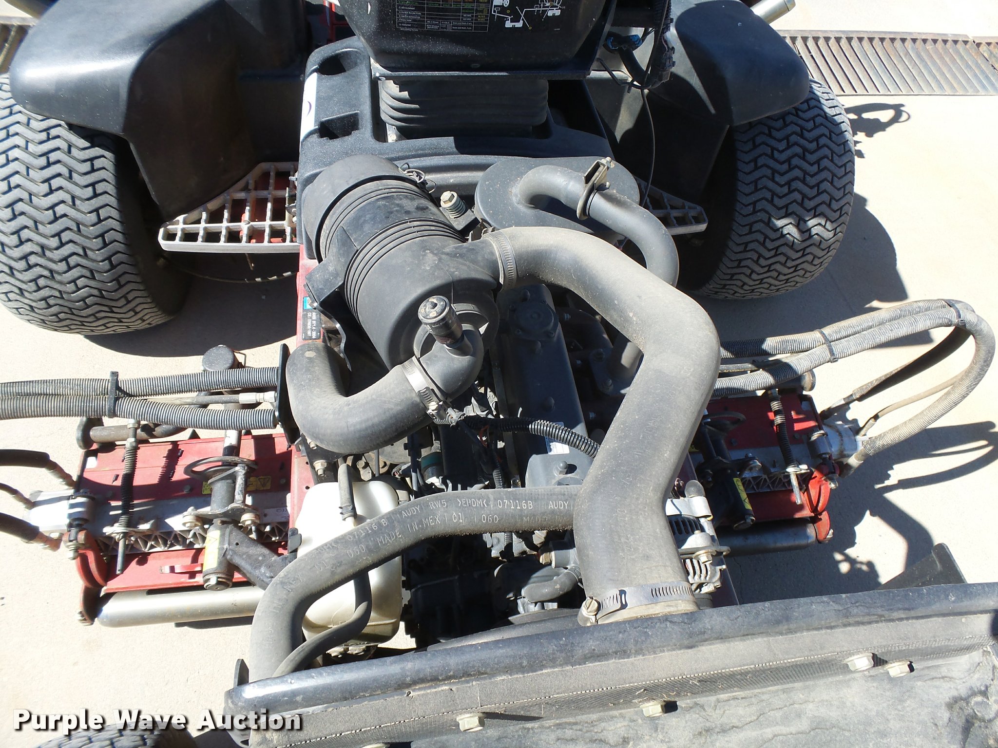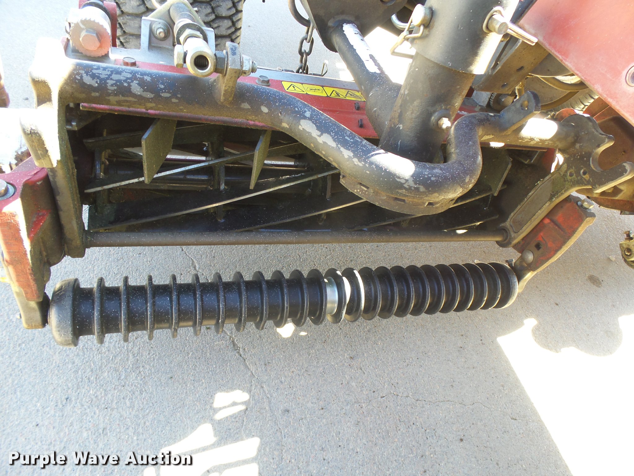 Purple Wave is selling a used Commercial Turf Mower in Kansas. This item is a Toro Reelmaster 5510 lawn mower with the following: 3,100 hours on meter, 70" cut, Kubota V1505-ES01 1.5L four cylinder diesel engine, Serial 7KBXL01.5BCD, Hydrostatic transmission, Hydraulic lift, Front and rear cutting unit, 26.5x14.00-12 front tires, 20x12.00-10 rear tires, Serial EN836.1997