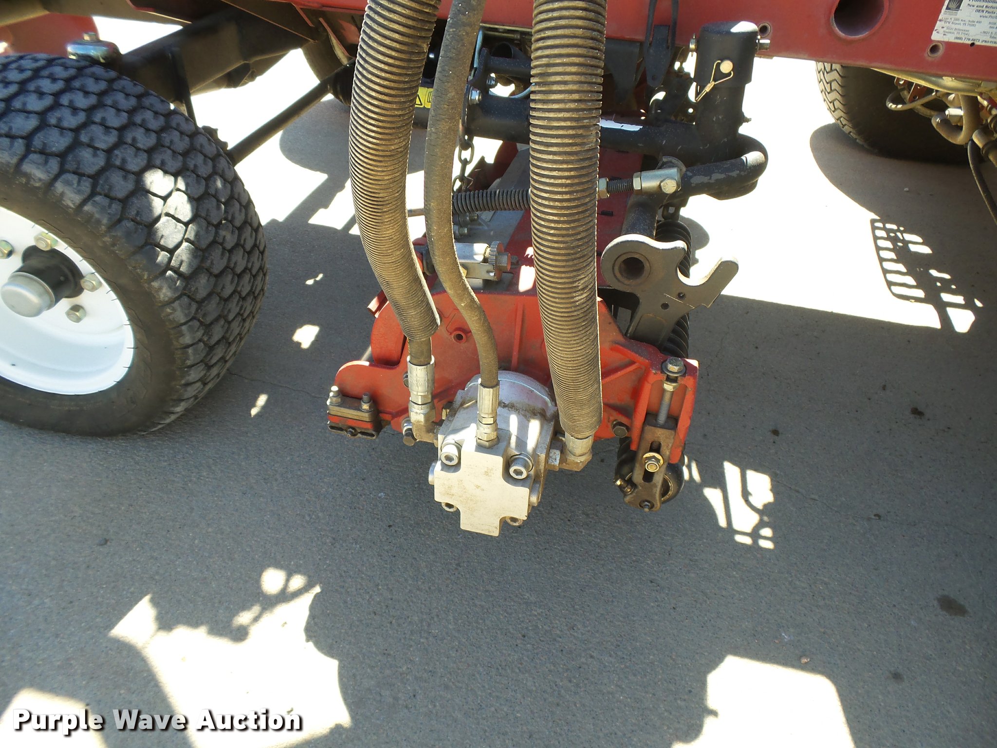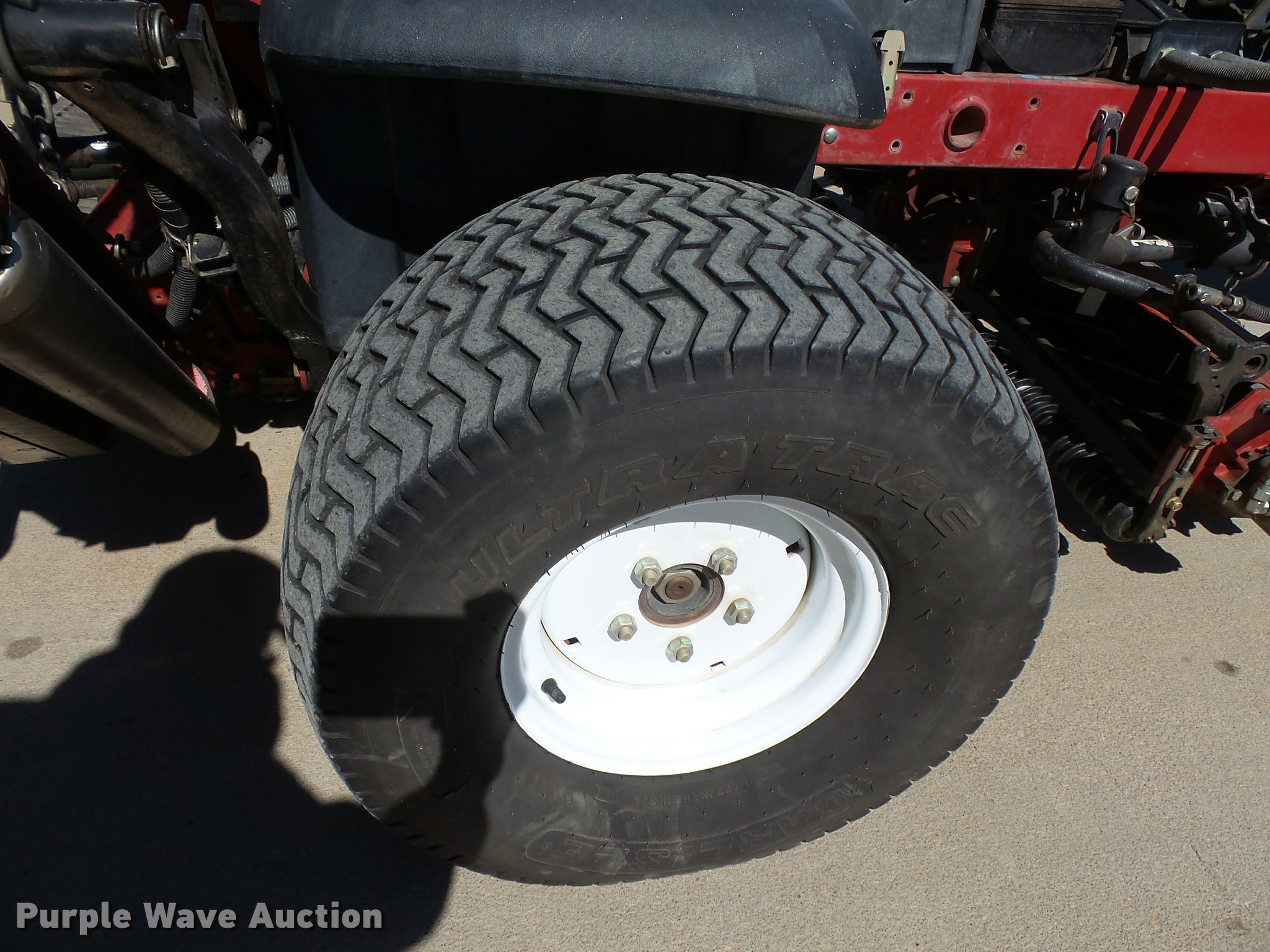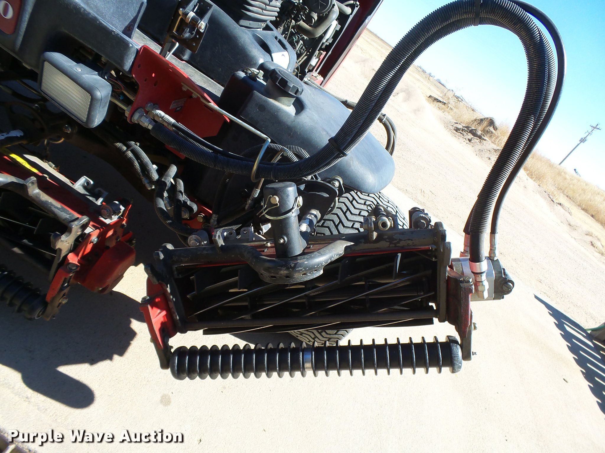 Purple Wave is selling a used Commercial Turf Mower in Kansas. This item is a Toro Reelmaster 5510 lawn mower with the following: 3,100 hours on meter, 70" cut, Kubota V1505-ES01 1.5L four cylinder diesel engine, Serial 7KBXL01.5BCD, Hydrostatic transmission, Hydraulic lift, Front and rear cutting unit, 26.5x14.00-12 front tires, 20x12.00-10 rear tires, Serial EN836.1997