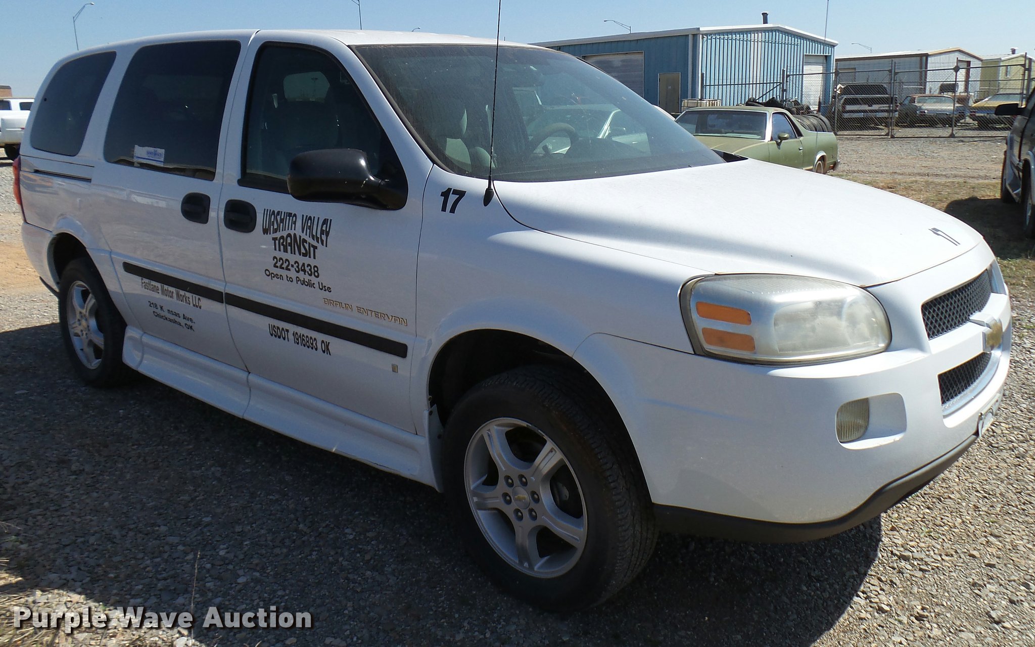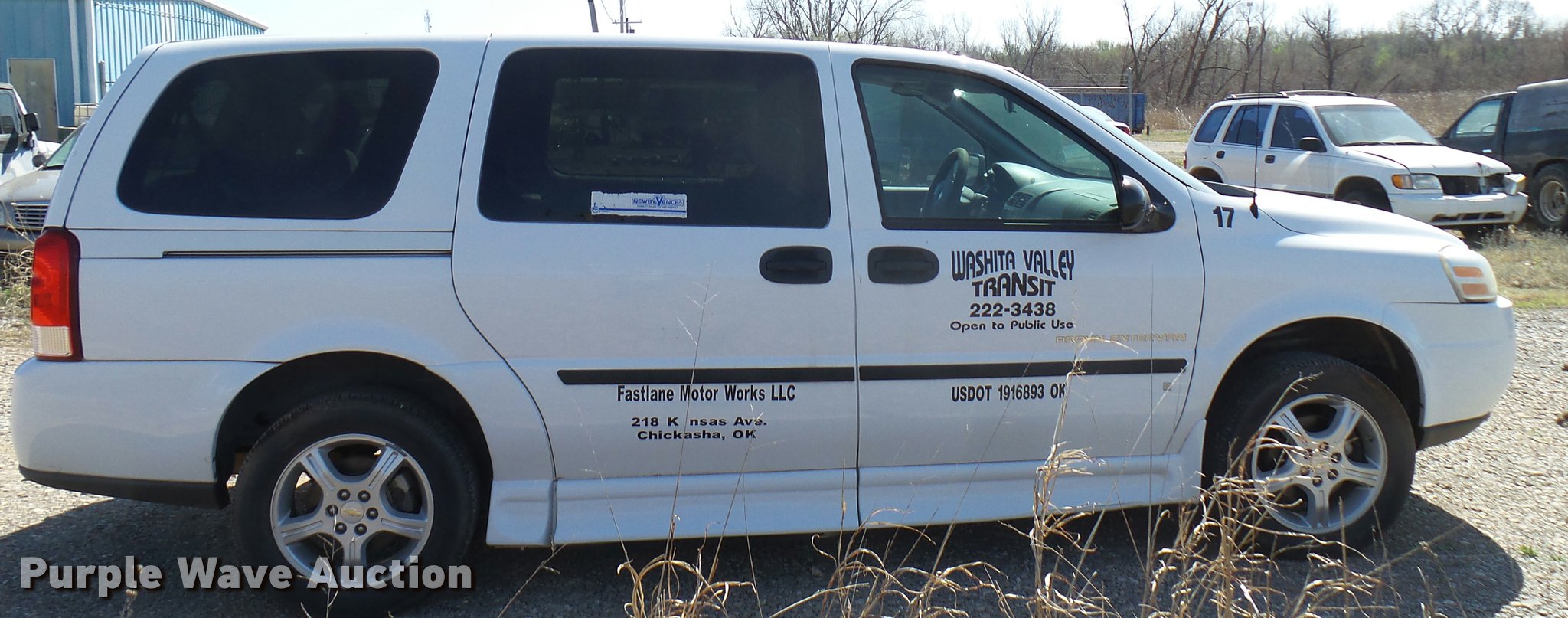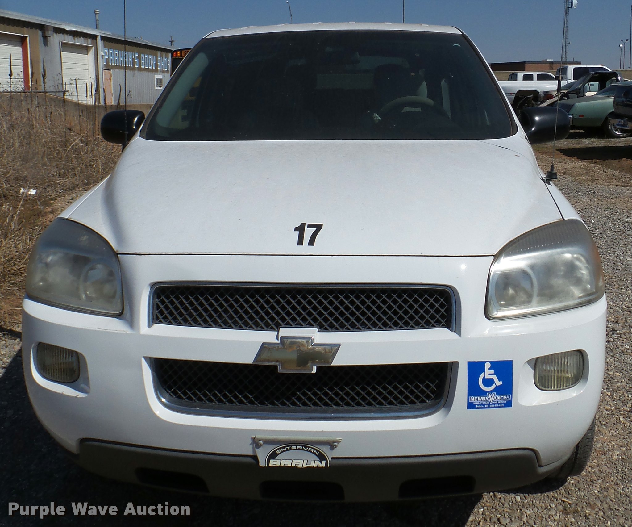 Purple Wave is selling a used Passenger Vehicle in Oklahoma. This item is a 2008 Chevrolet Uplander Cargo van with the following: 82,740 miles on odometer, 3.9L V6 OHV 12V FFV gas engine, Automatic transmission, AC and heat, Tilt, Cruise, AM/FM/CD, Power windows, locks, and mirrors, Cloth interior, Manual wheelchair ramp, Floor tie down notches, Braun body, 225/60R17 tires, Engine ticks, Mechanical issues, Unit# 17