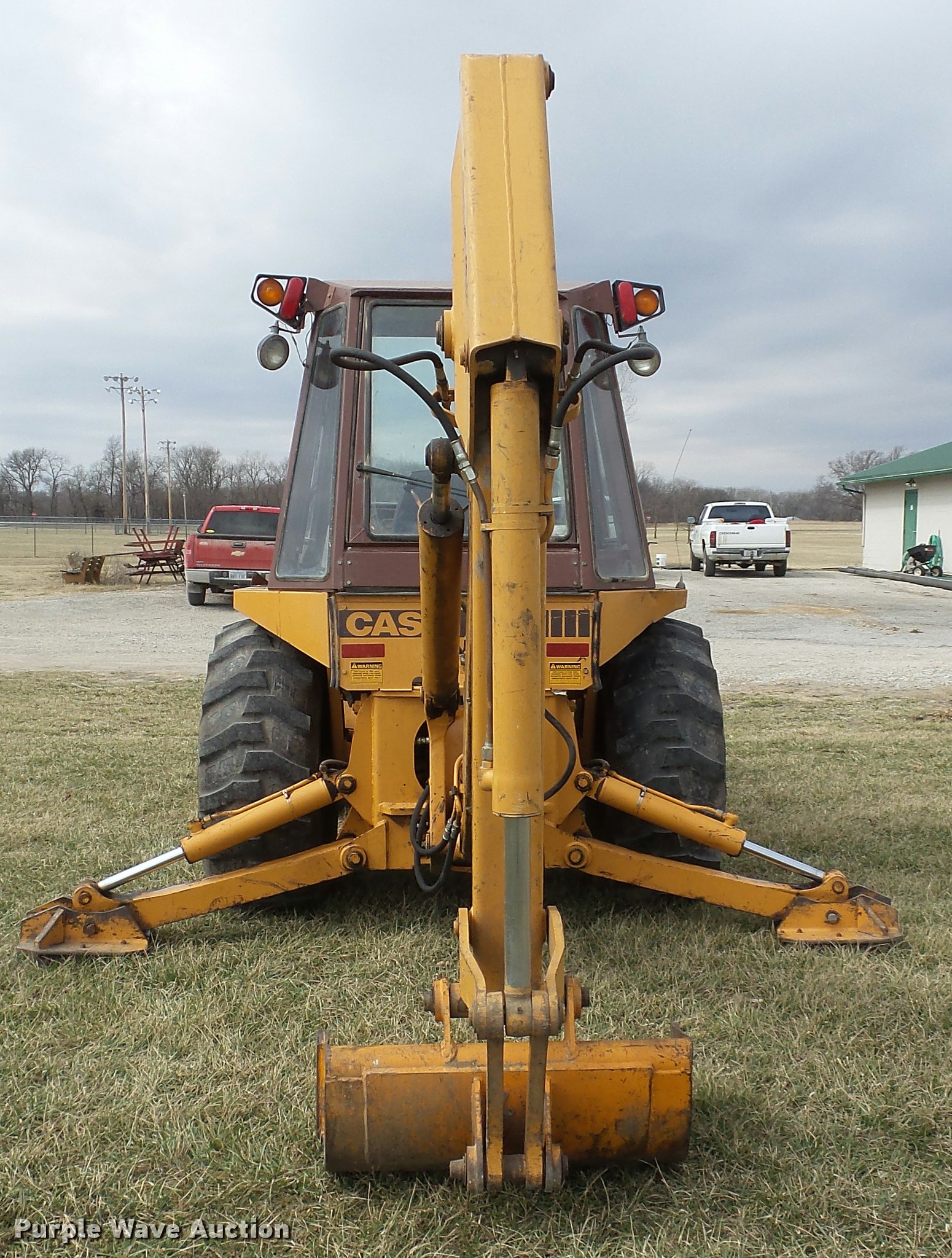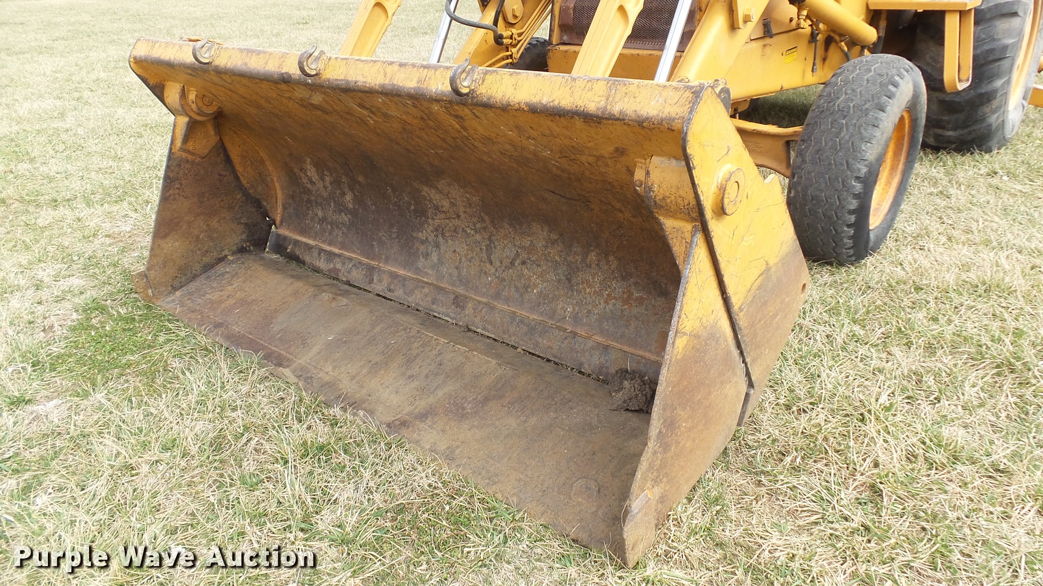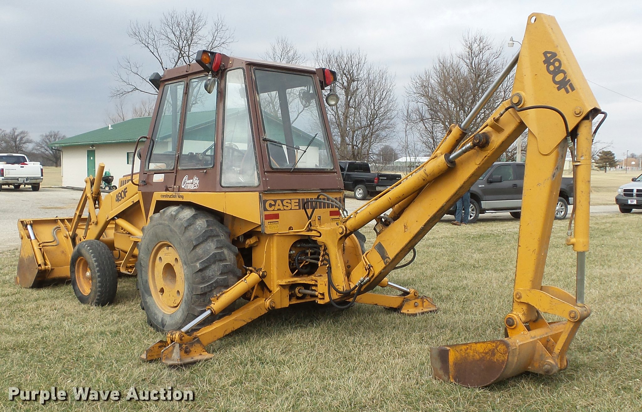 Purple Wave is selling a used Tractor Loader Backhoe in Kansas. This item is a 1990 Case 480F Construction King backhoe with the following: 4,982 hours on meter, Case diesel engine, 4F-1R gears, Enclosed cab, Wipers, Four stick backhoe controls, Front and rear work lights, Block heater, Case MD four-in-one loader bucket, 80"W, Weld-on cutting edge, Serial JJG0080949, 12'L reach, Cemetary Style backhoe bucket, 32"W, Weld-on cutting edge, (6) teeth, 16"W backhoe bucket, 16"W, (4) weld-on teeth, Rear stabilizers, 11L-16 front tires, 17.5L-24 rear tires, Serial JJG0004540
