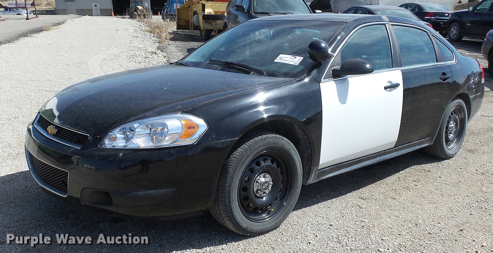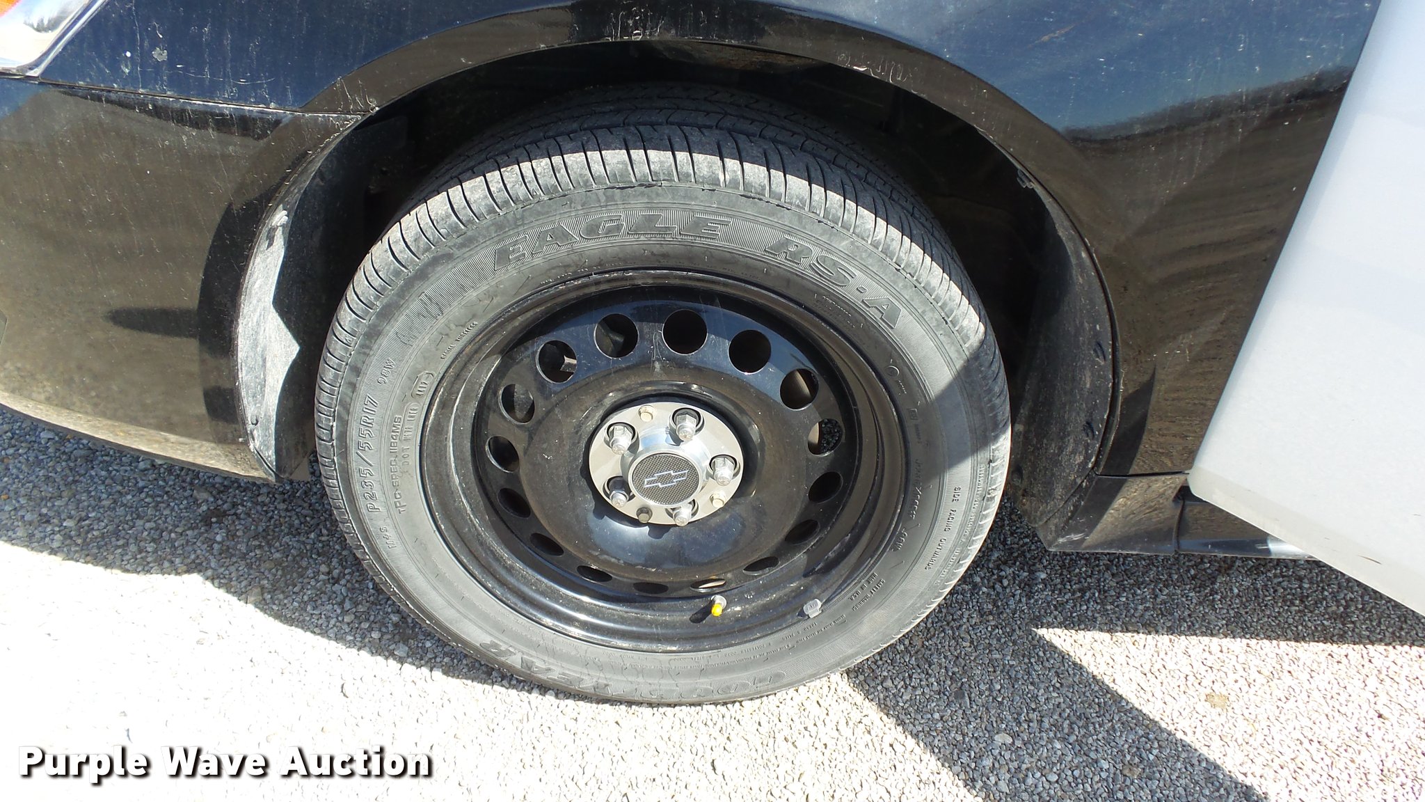 Purple Wave is selling a used Passenger Vehicle in Kansas. This item is a 2013 Chevrolet Impala Police Cruiser with the following: 97,780 miles on odometer, 3.6L V6 DOHC 16V FFV gas engine, Automatic transmission, AC and heat, Tilt, Cruise, AM/FM/CD, Power windows, locks, mirrors, and seat, Cloth front interior, Vinyl rear interior, Spotlight, P235/55R17 tires, Cracked windshield, Dead battery, Center console missing, Rear door locks missing, Holes in roof from equipment, Maintenance records available, Unit# 10