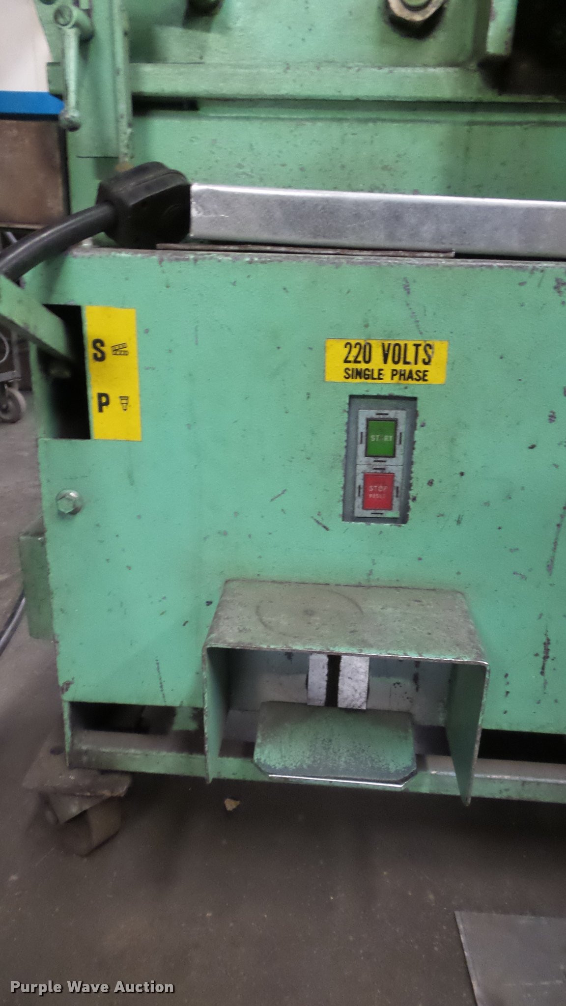 Purple Wave is selling a used Tools in Kansas. This item is a Scotchman 4014C sheet metal hydraulic press with the following: 2 HP motor, 220V, 15 amp, Single phase, 14.5"W sheet metal, Roller stand, 1,400 hydraulic pressure, Additional taps included, Serial 1735U285