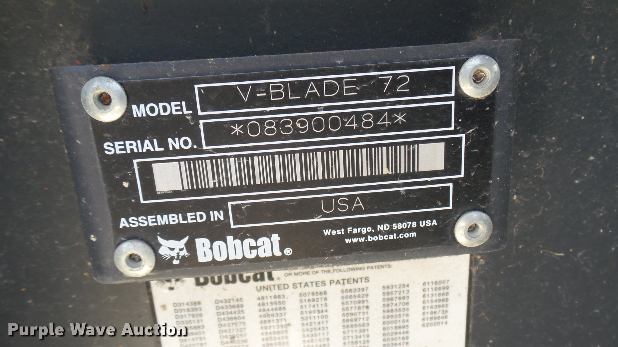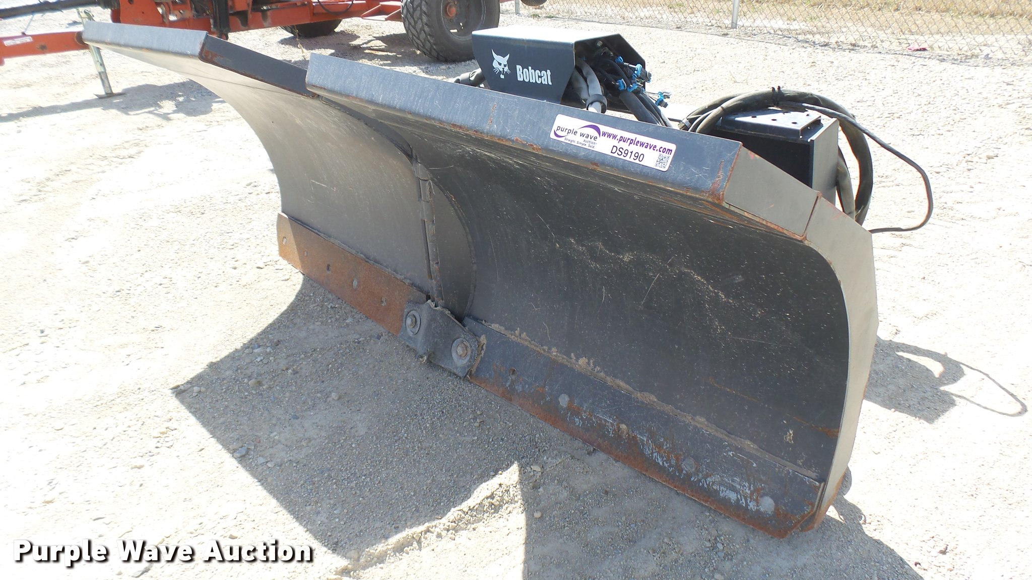 Purple Wave is selling a used Skid Steer Attach. in Kansas. This item is a Bobcat 72 V-blade snow plow with the following: 72"W, Hydraulics, Serial 083900484