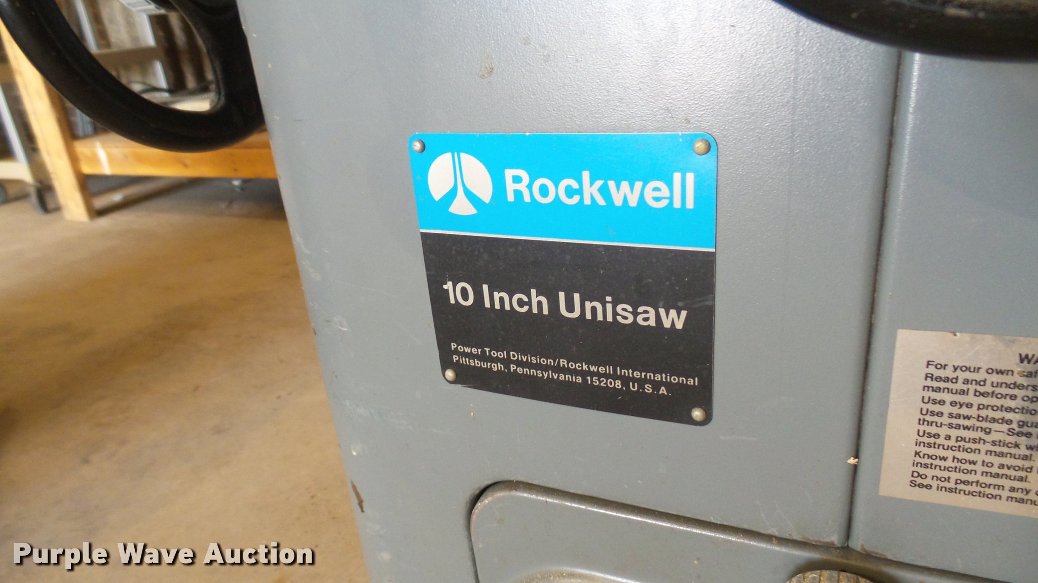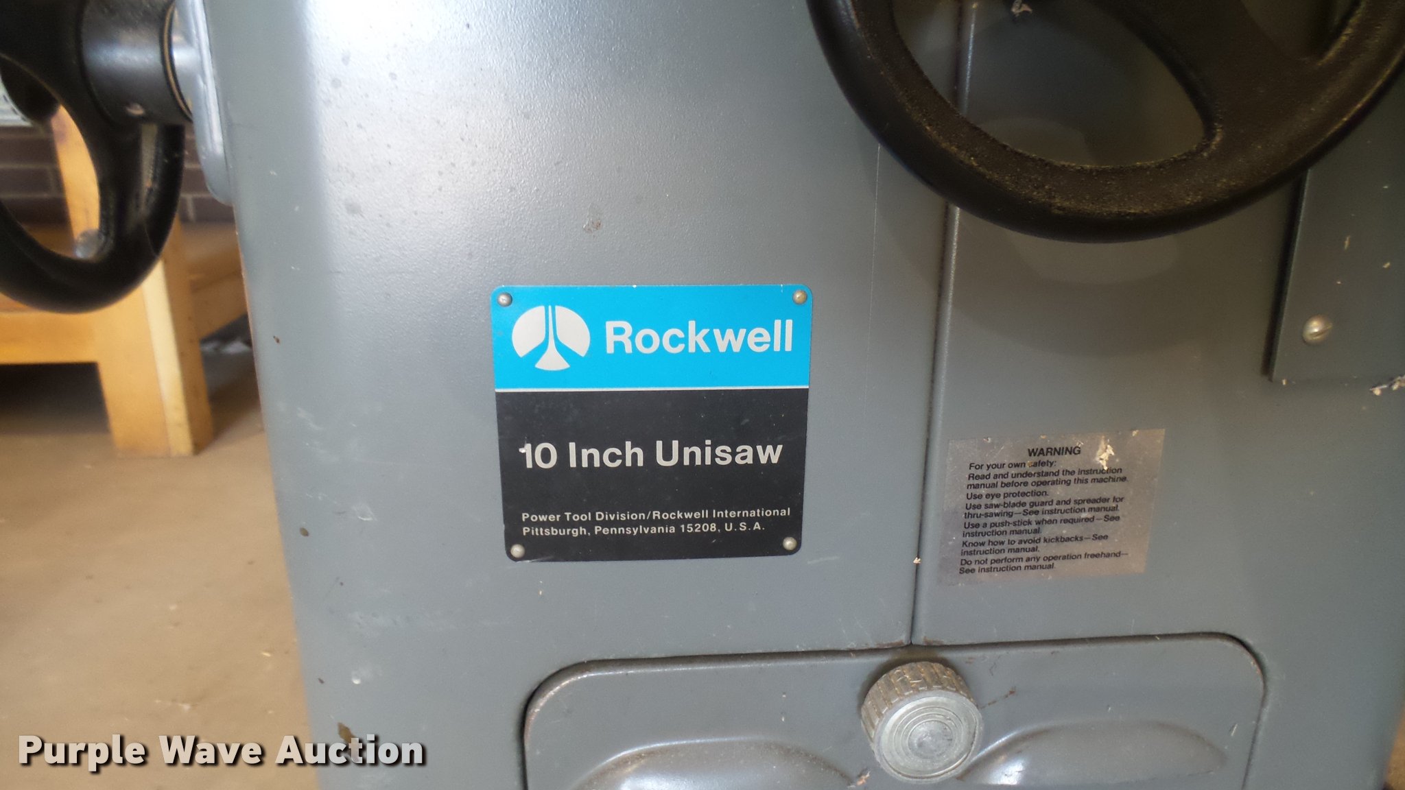 Purple Wave is selling a used Tools in Kansas. This item is a Rockwell/Delta table saw with the following: Model 34-466, 10", Three phase