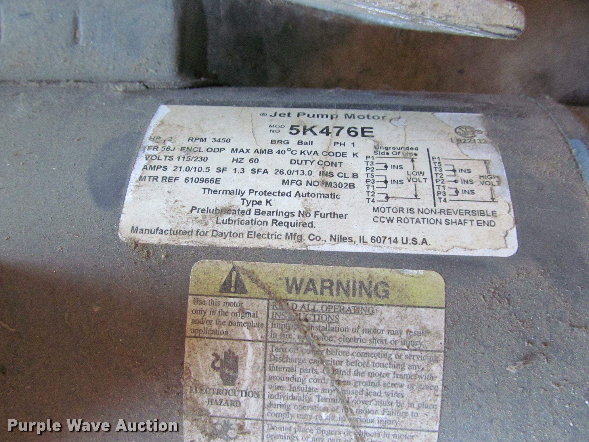 Purple Wave is selling a used Electric Motor in Kansas. This item is a Electric motors with the following: Approx. 10 electric motors, (2) Jet pump motors, Model 5K476E, Briggs & Stratton gas engine, Model 125202, 5 HP, Type 001501, Serial 960227YA
