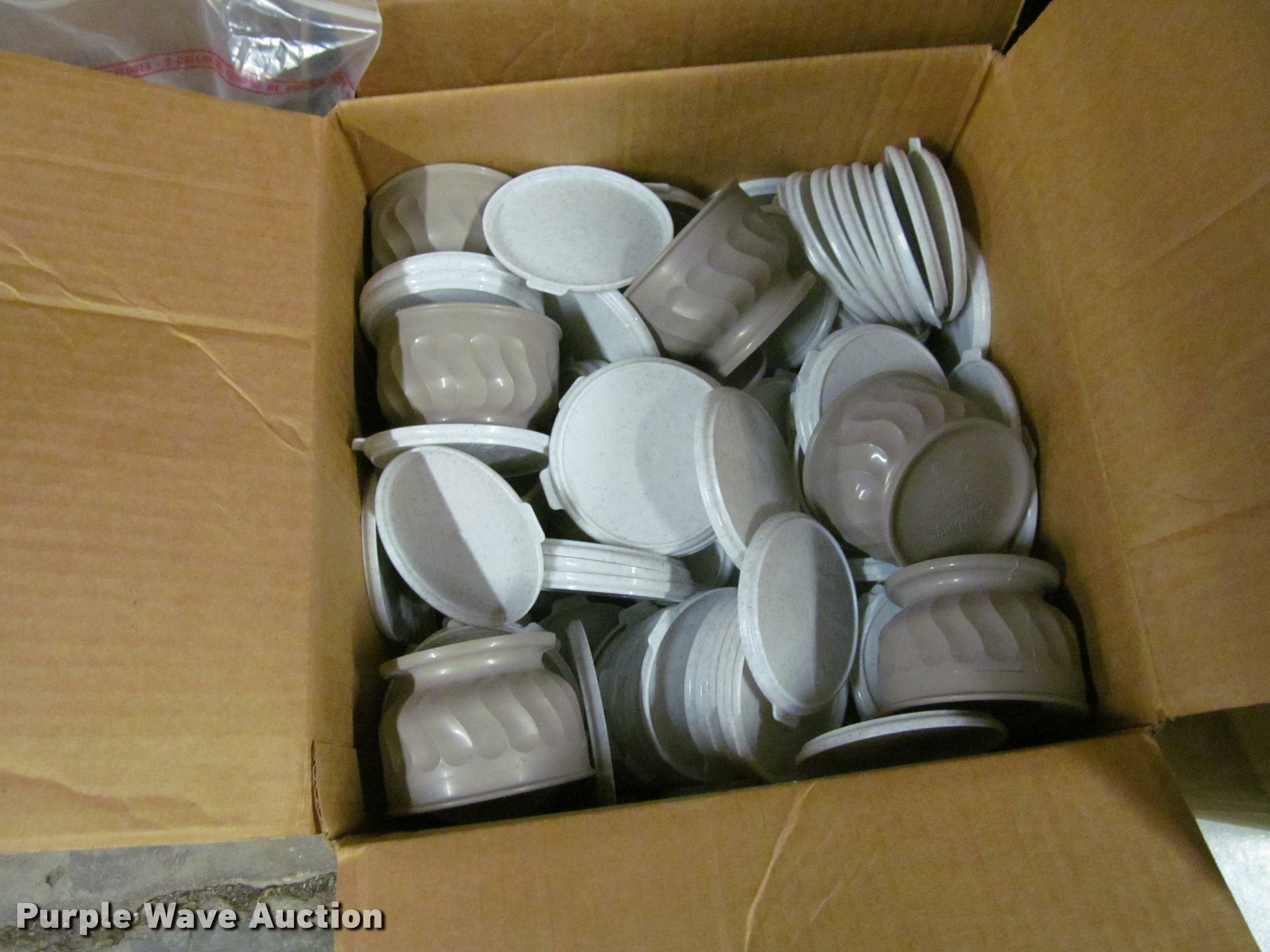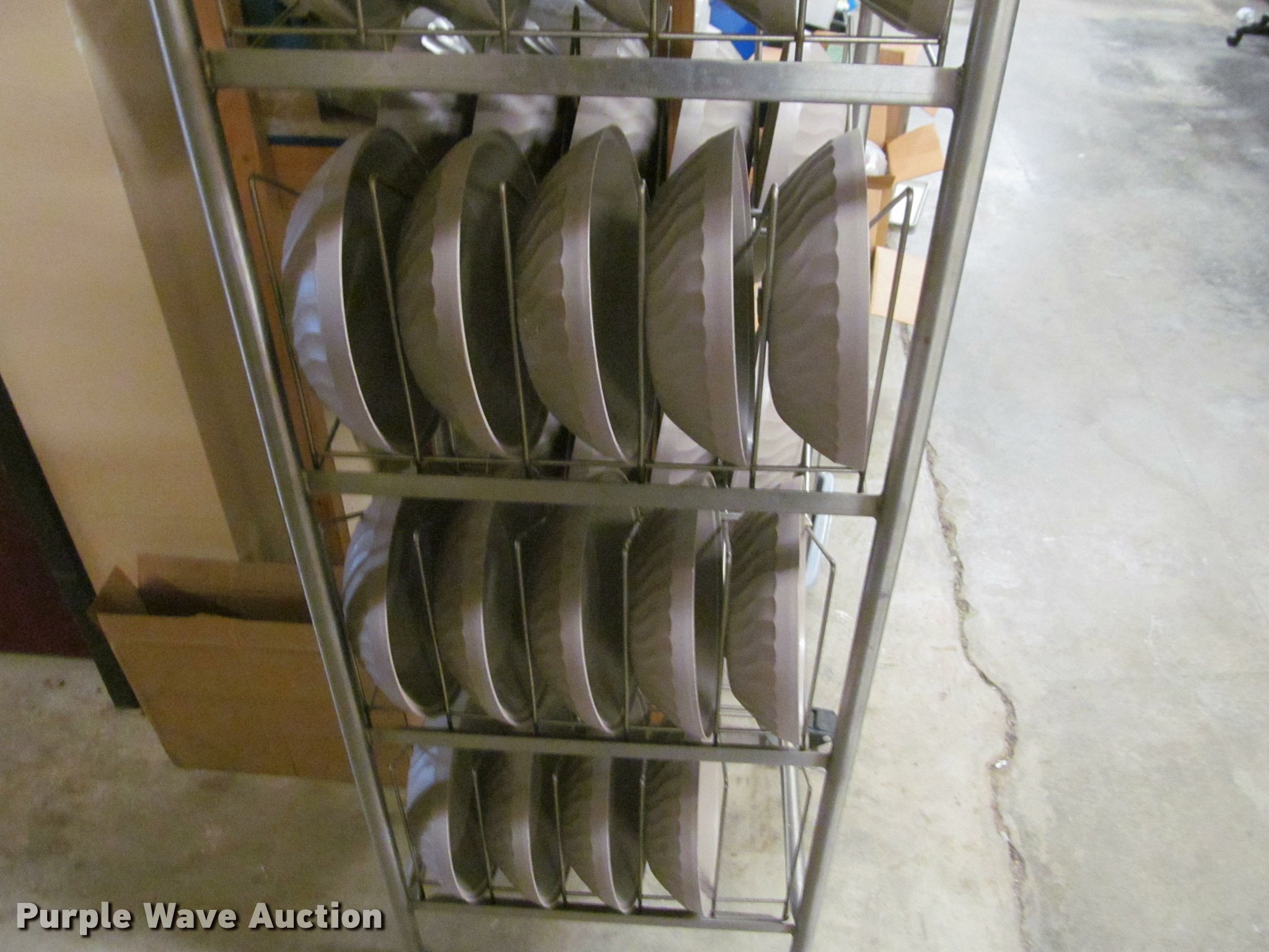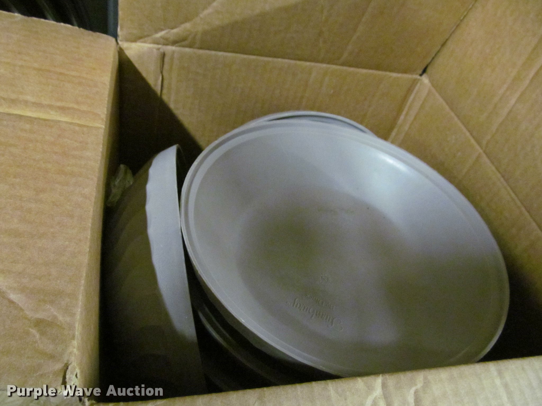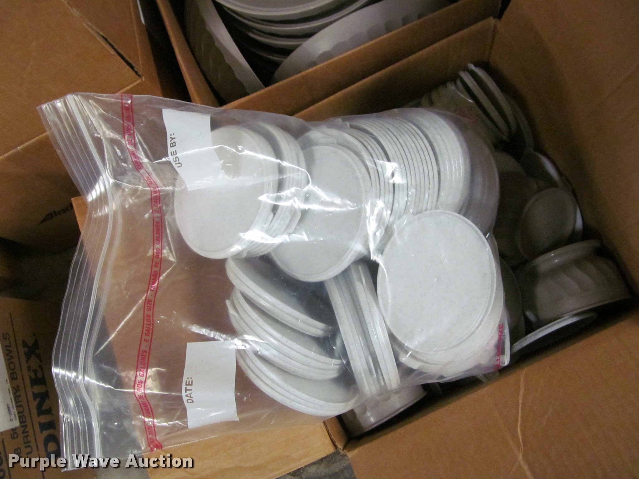 Purple Wave is selling a used Restaurant Equip. in Kansas. This item is a Restaurant equipment with the following: Plates, Bowls, Cups, Lids, Trays, (3) toasters, Cup dispenser, Bowl rack, Rolling, Pitchers, Fryer, Glass vases, Hobart FD3/150 garbage disposals, Wood storage rack, White vinyl roll not included
