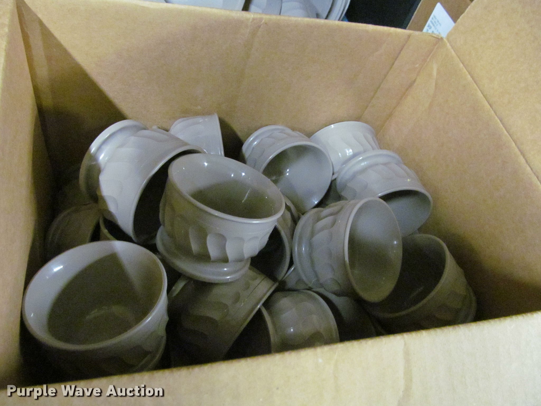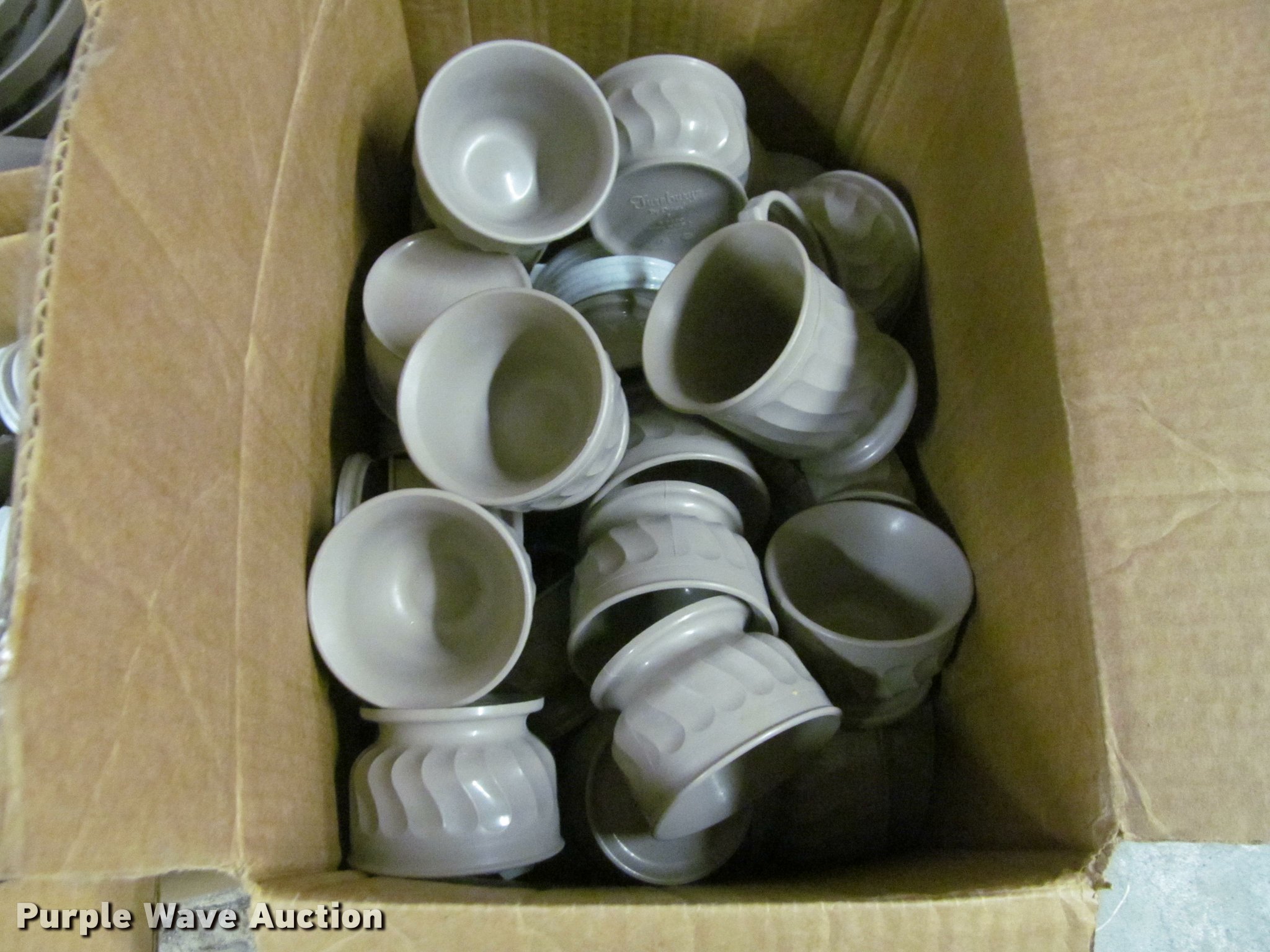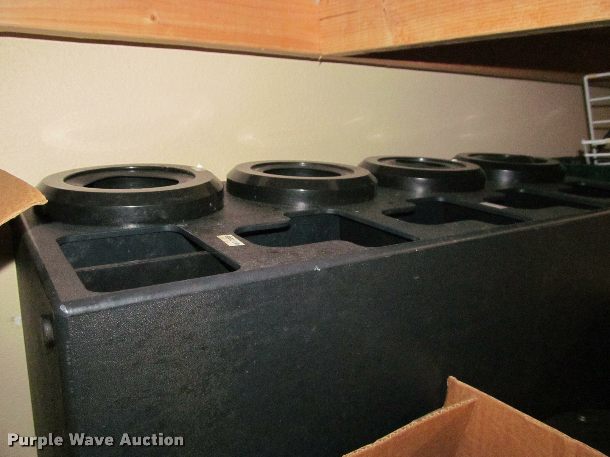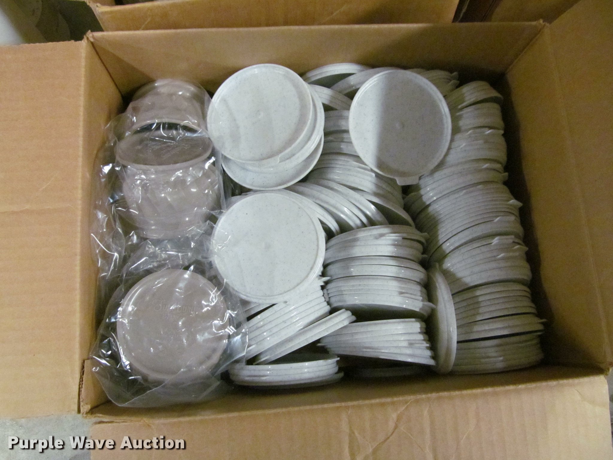 Purple Wave is selling a used Restaurant Equip. in Kansas. This item is a Restaurant equipment with the following: Plates, Bowls, Cups, Lids, Trays, (3) toasters, Cup dispenser, Bowl rack, Rolling, Pitchers, Fryer, Glass vases, Hobart FD3/150 garbage disposals, Wood storage rack, White vinyl roll not included