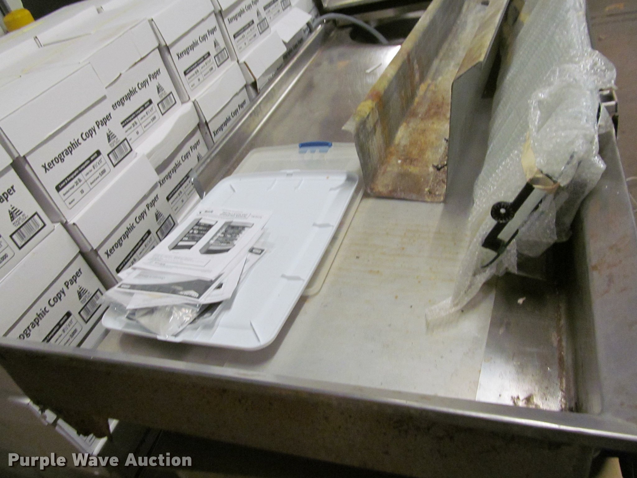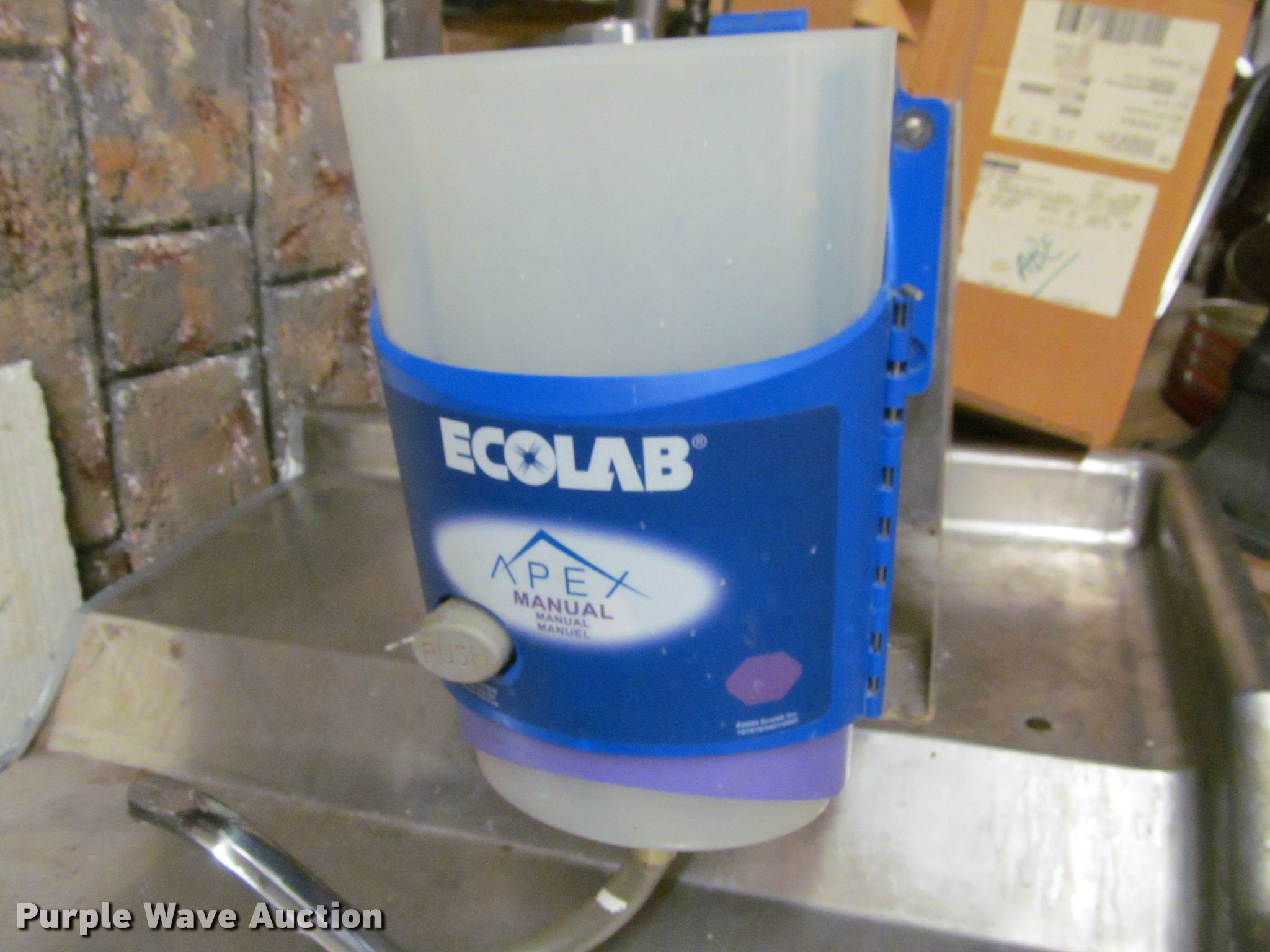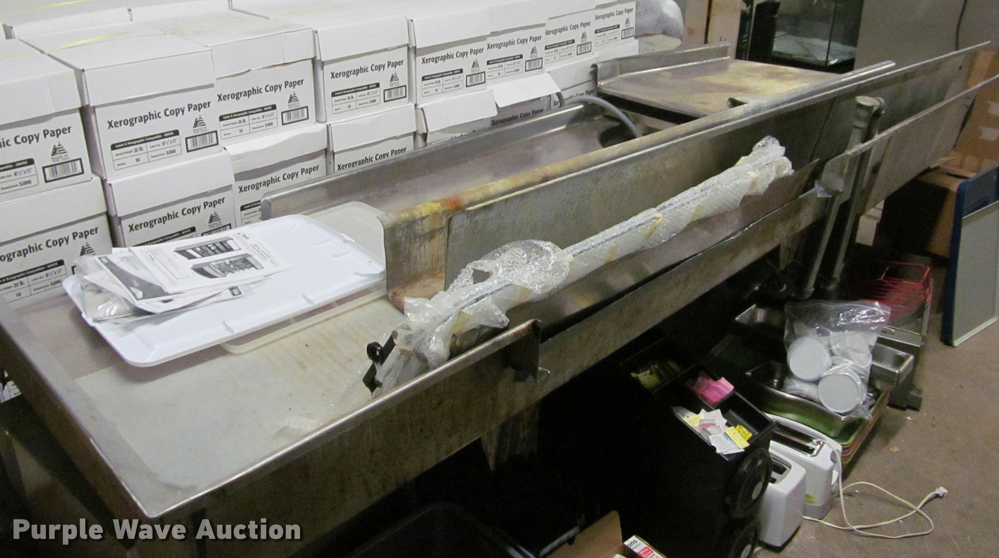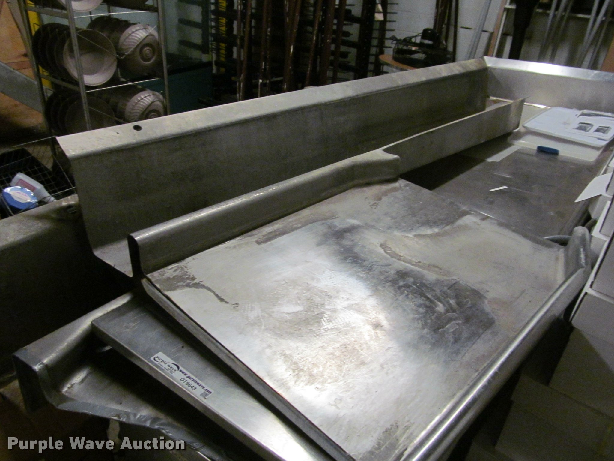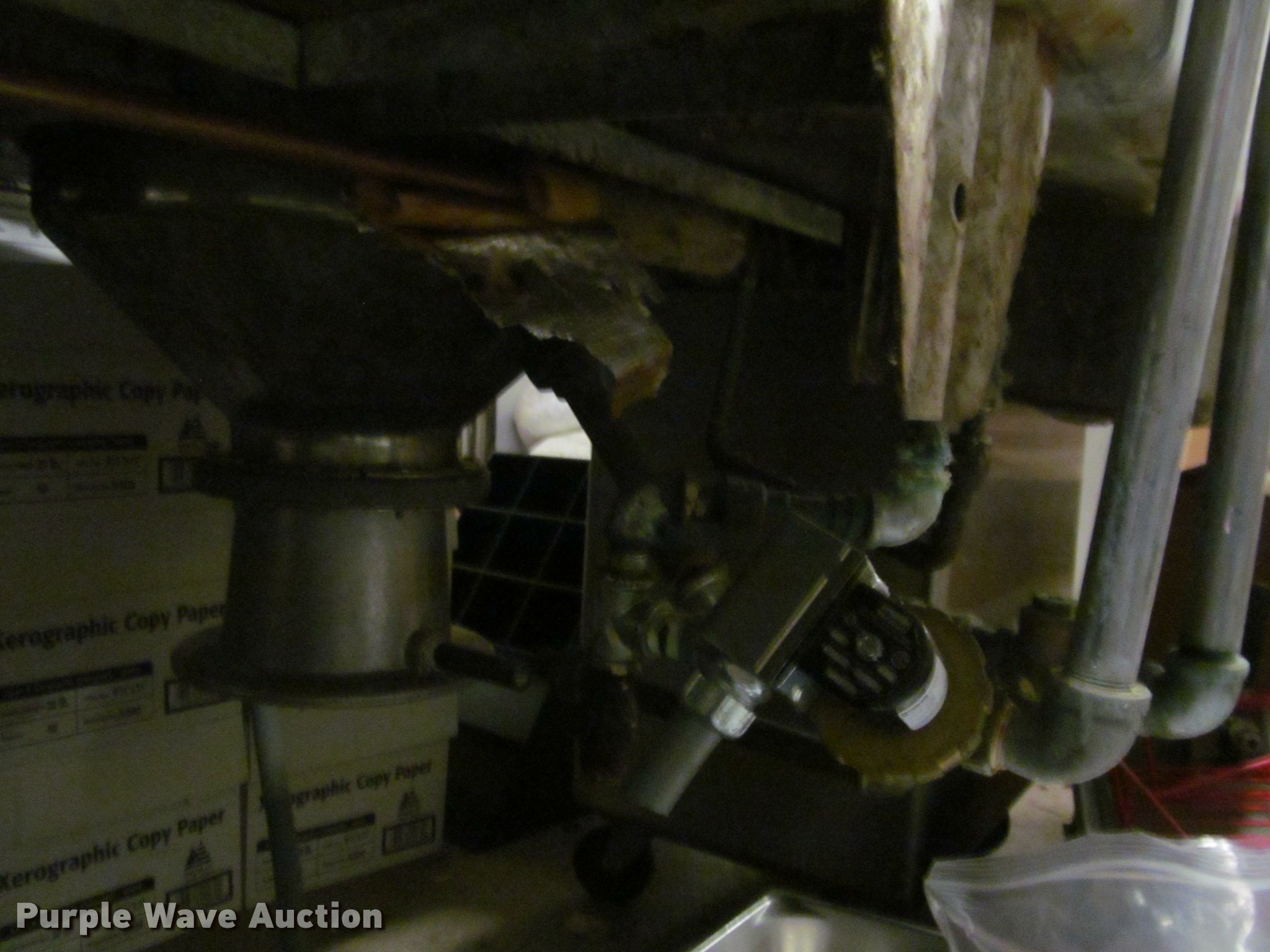 Purple Wave is selling a used Building Materials in Kansas. This item is a Stainless steel sink with the following: 89"L x 36"W, 126"L x 39"W, Assorted plumbing, No legs, Handwash station, 47"L x 34"W, Ecolab soap dispenser