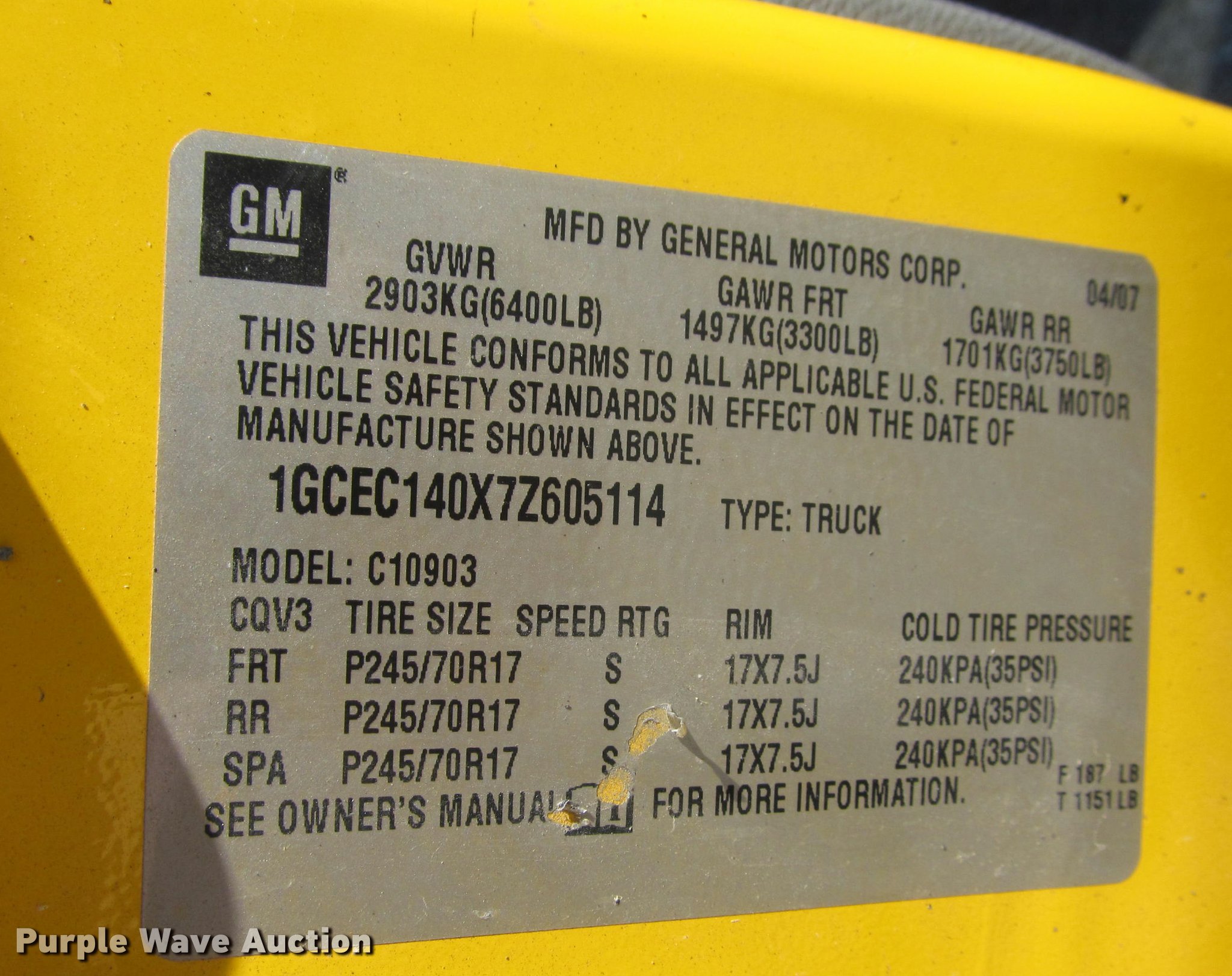 Purple Wave is selling a used 1/2 Ton Pickup or Van in Missouri. This item is a 2007 Chevrolet Silverado 1500 pickup truck with the following: 177,038 miles on odometer, 5.3L V8 OHV 16V FFV gas engine, Automatic transmission, AC and heat, Tilt, AM/FM, Manual windows and locks, Front tow hooks, Long bed, Receiver hitch, Trailer wiring, Firestone Transforce HT 245/70R17 tires, Check engine light on, Engine tick, possible lifter issues, MODOT ID B6217