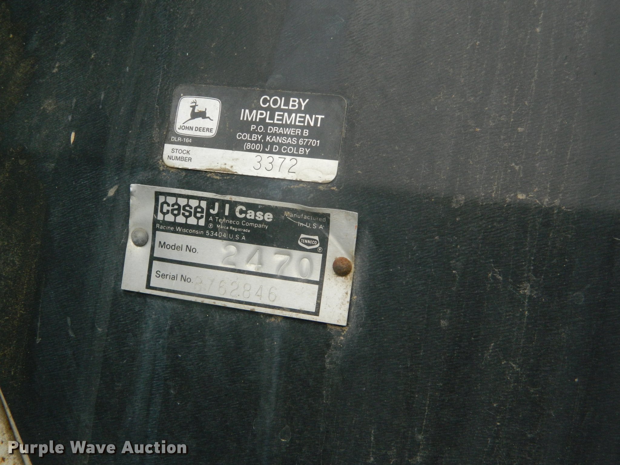 Purple Wave is selling a used Tractor in Kansas. This item is a 1974 Case 2470 4WD tractor with the following: 9,302 hours on meter, Case 8.3L six cylinder turbo diesel engine, 150 HP, Powershift transmission, 12F-2R gears, AC and heat, Tilt steering wheel, AM/FM, Suspension seat, Three point, Top link, (2) rear hydraulic remote sets, 18.4-34 dual tires, Unknown operating condition of AC, Belt missing, Wrench set not included, Serial 8762846
