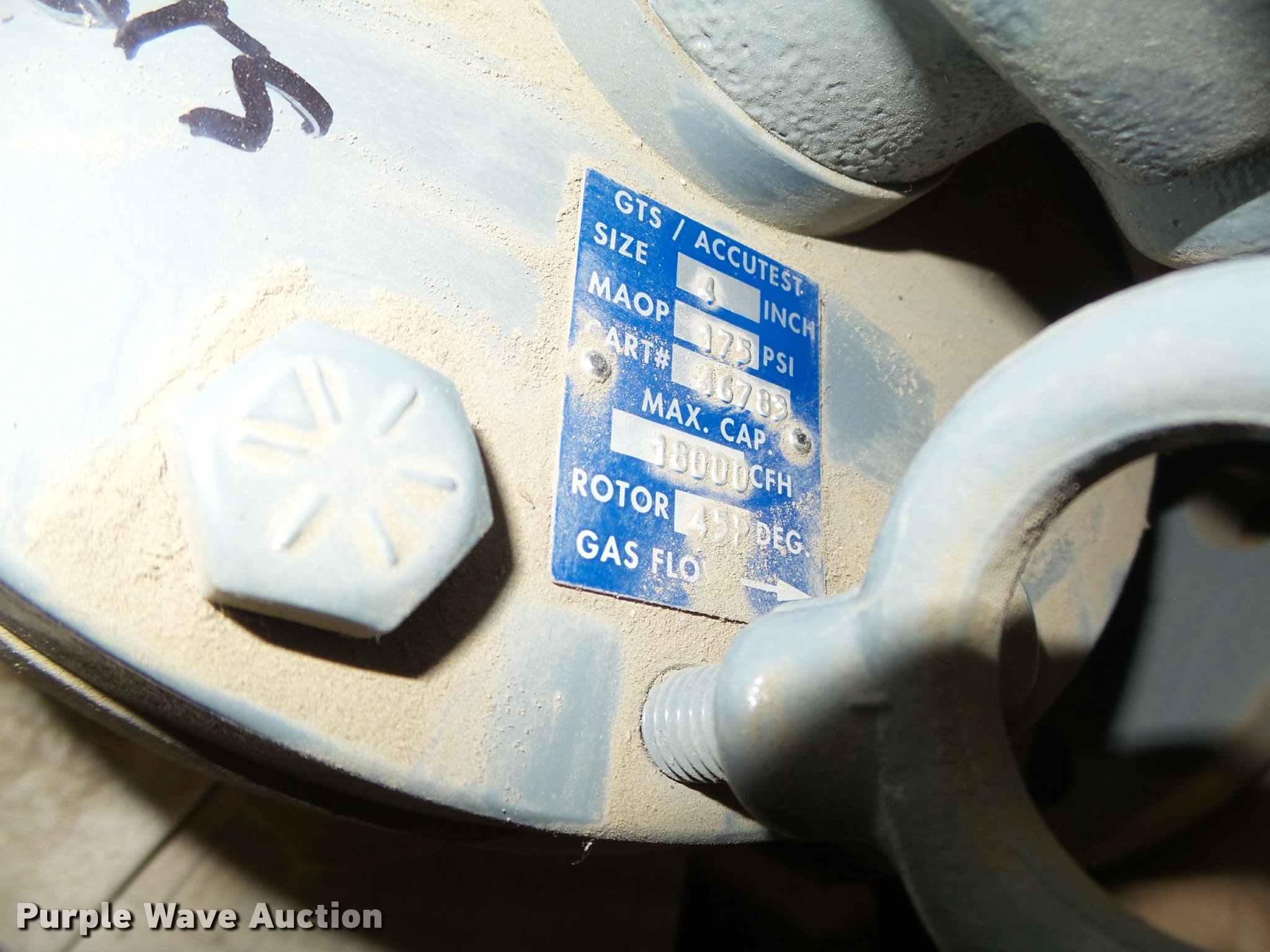 Purple Wave is selling a used Building Materials in Nebraska. This item is a American Meter GTS rotary gas meter with the following: 4", 175 psi maop, 18,000 cfh max capacity, Unused, Serial 09K798944