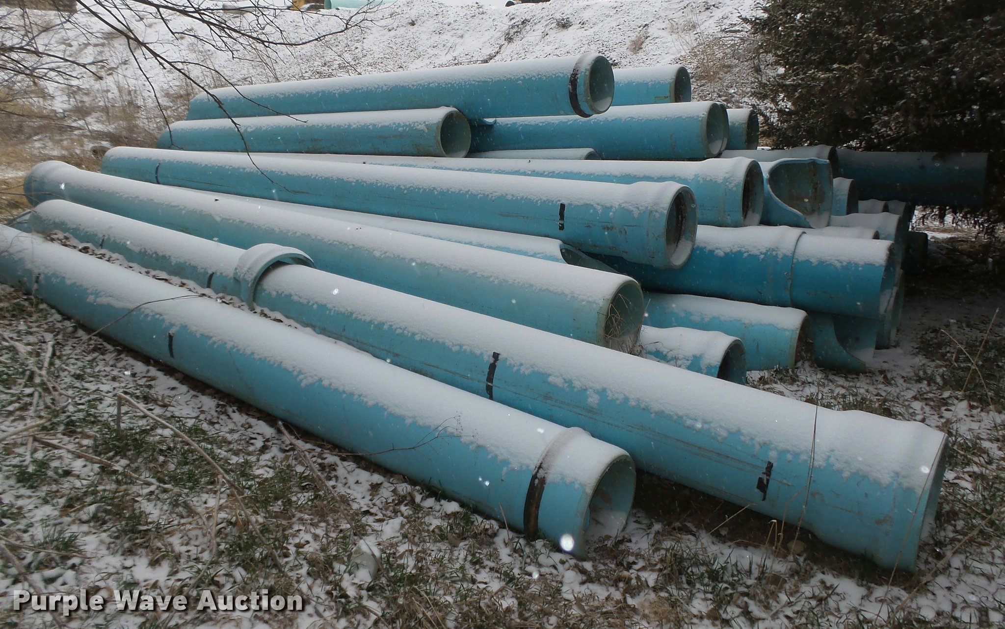 Purple Wave is selling a used Pipe in Nebraska. This item is a Approximately 60 PVC push pipe with the following: Model 4P72 PVC, 15" I.D., 20.5'L or less, For undergound water mains