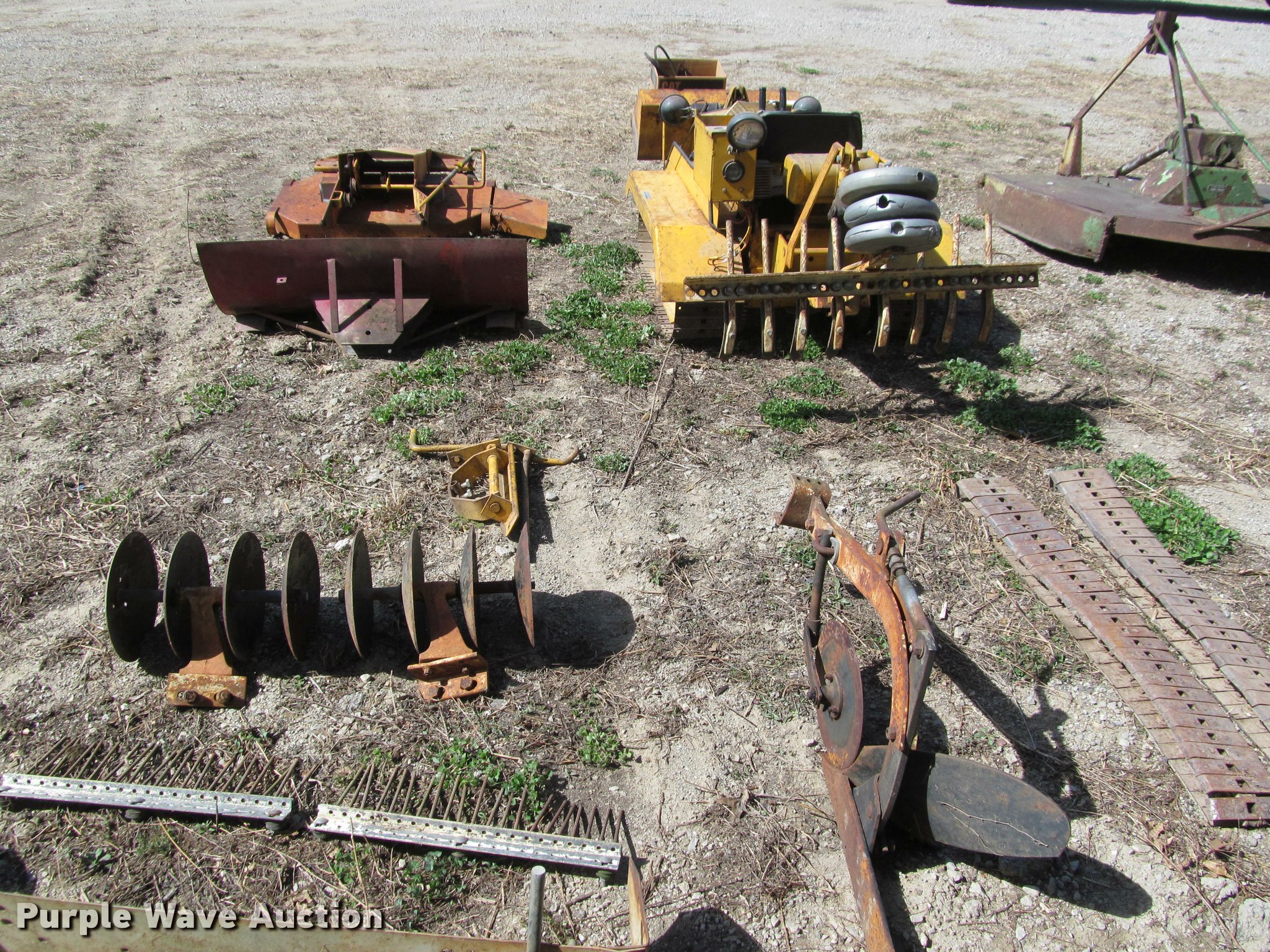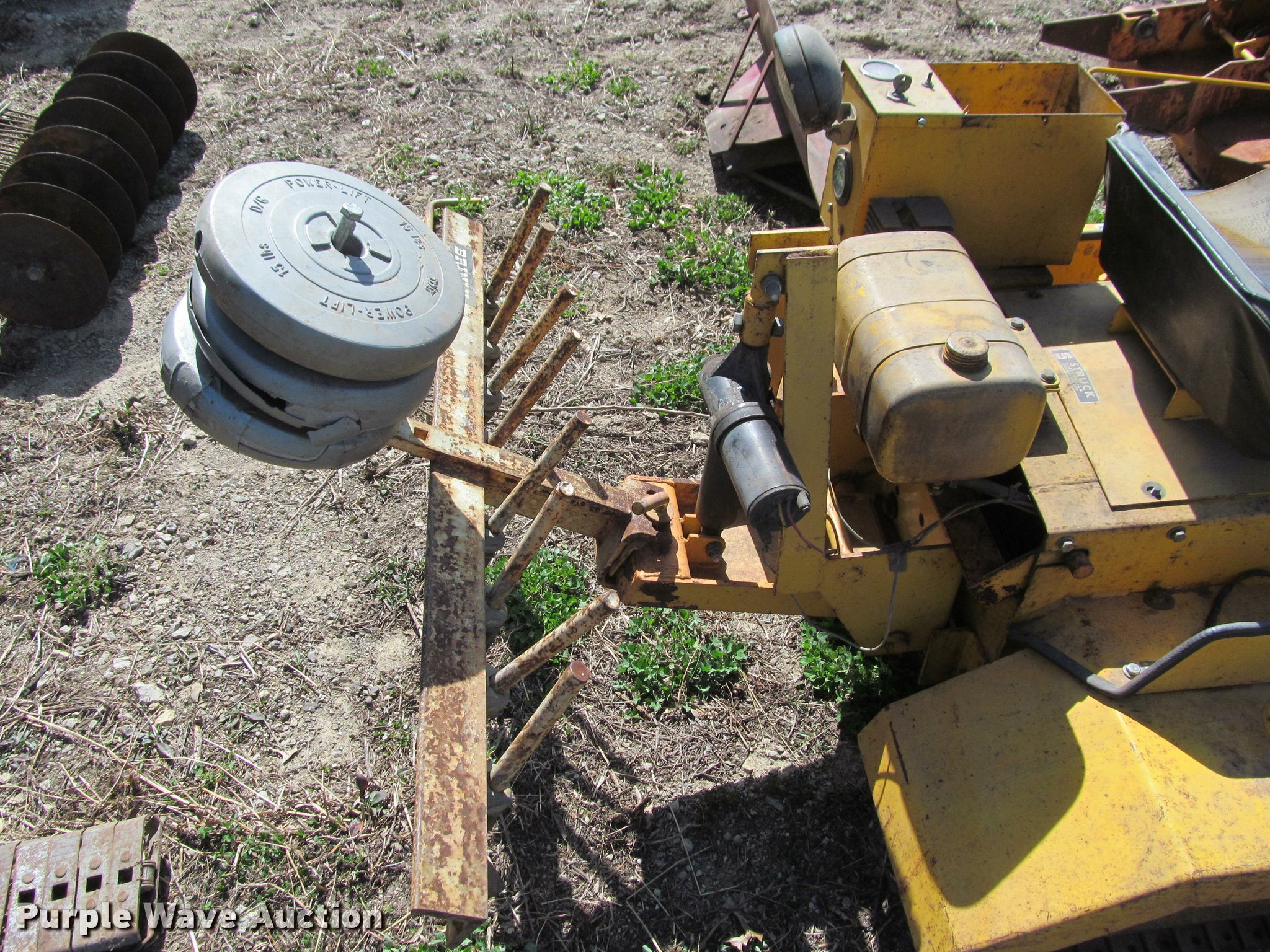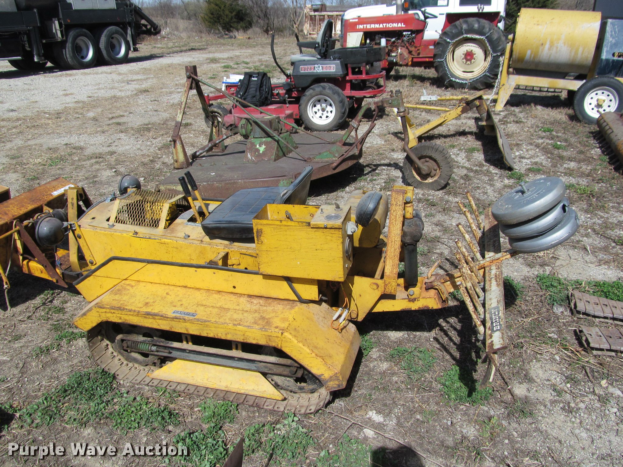 Purple Wave is selling a used Crawler Dozer in Kansas. This item is a Struck mini-dozer with the following: 350 hours on meter, 16 HP gas engine, No spark, Hand controls, Work lights, 30"W bucket, Electric height adjust, 41.5"W ripper, (8) shanks, Electric height adjust, 8"W tracks, Owners manual, Additional attachments, Mower, 92"W snow blade, Eight row disk, One row plow, 6"W turf tracks